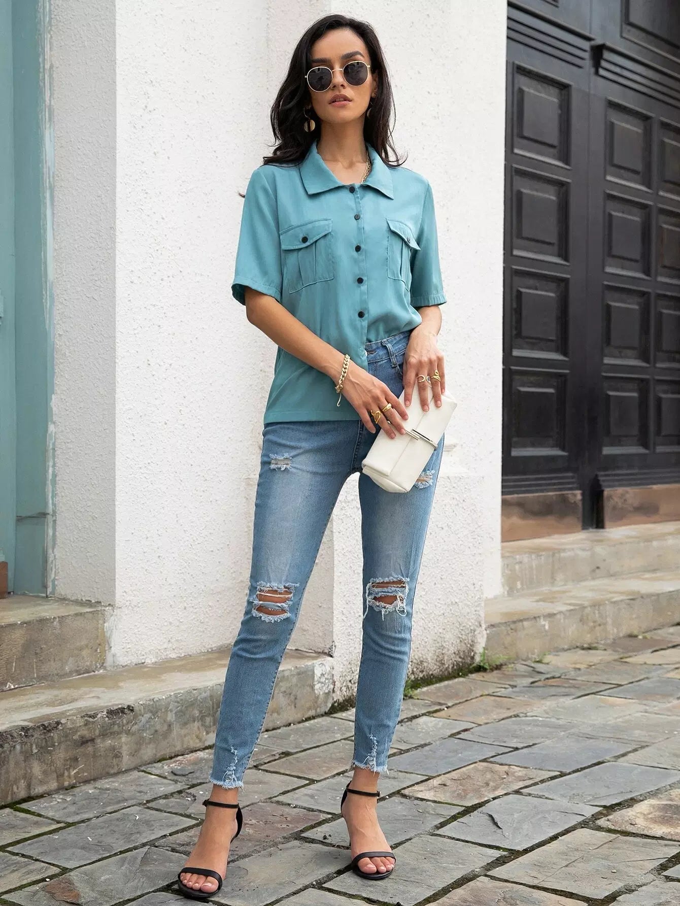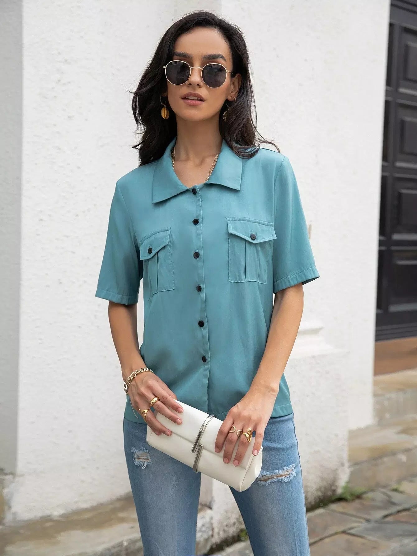 Women - Flap Pocket Button Front Shirt