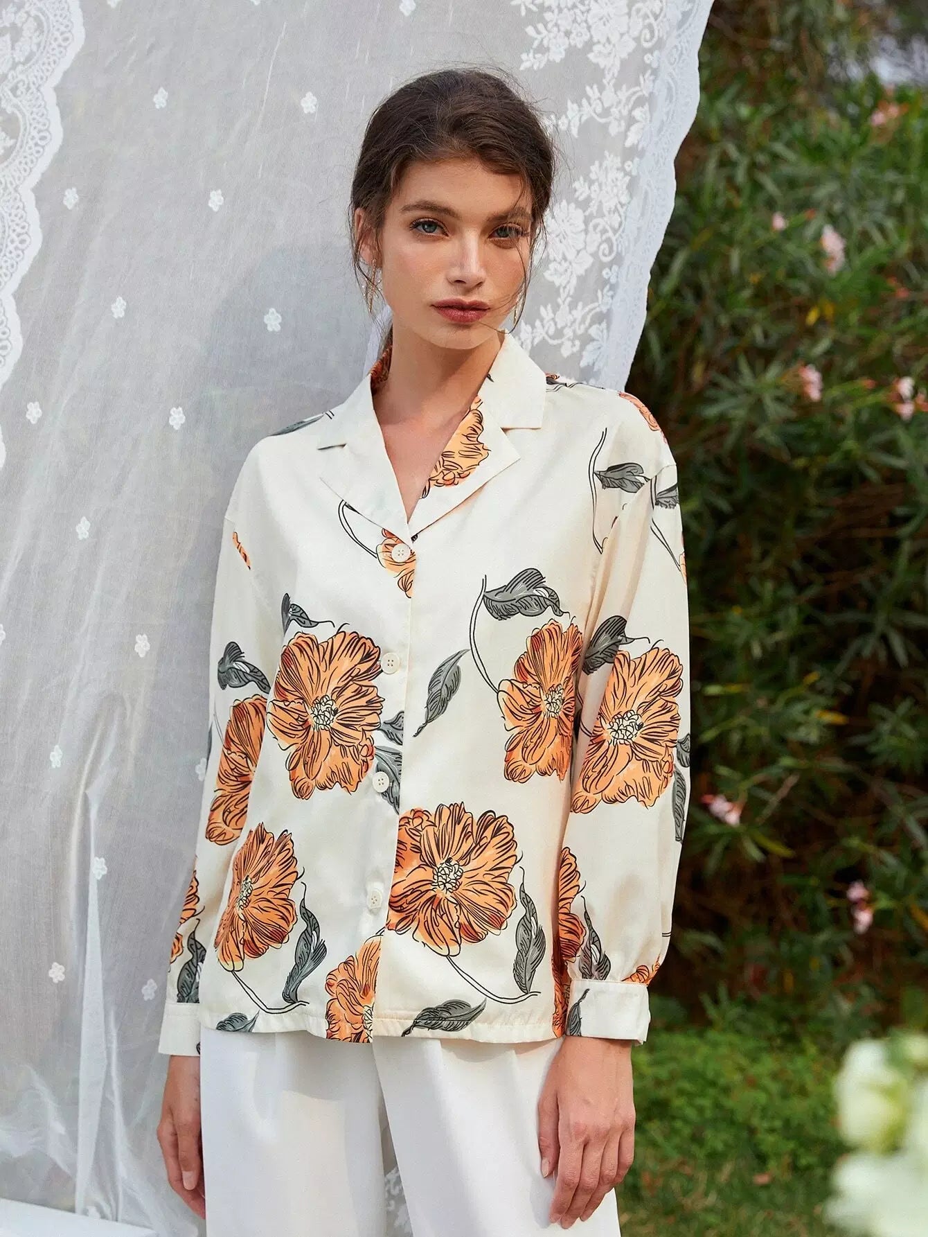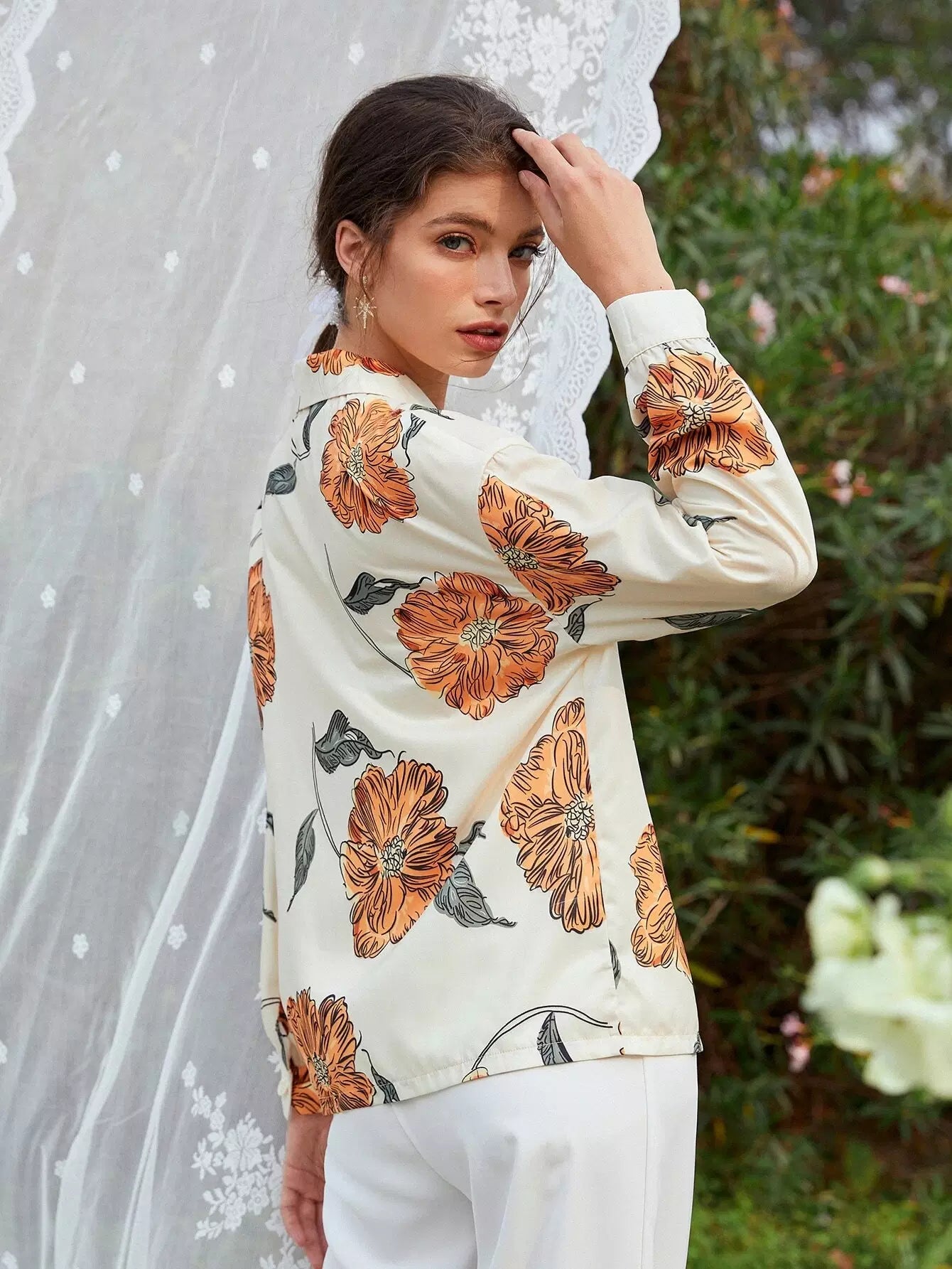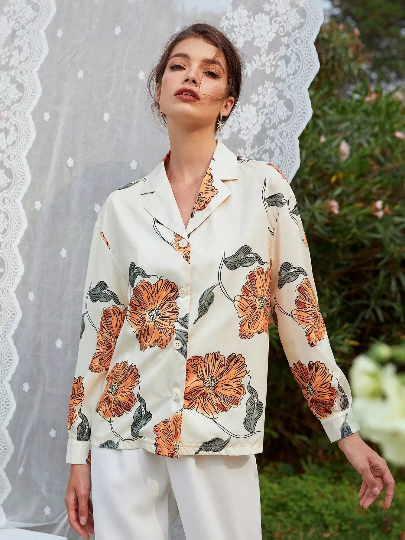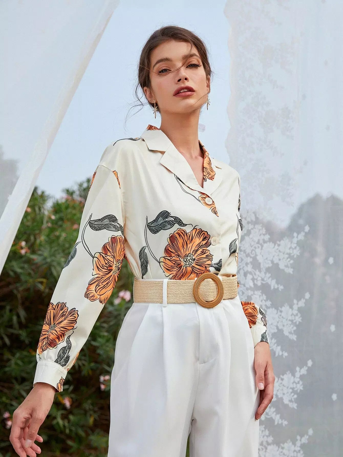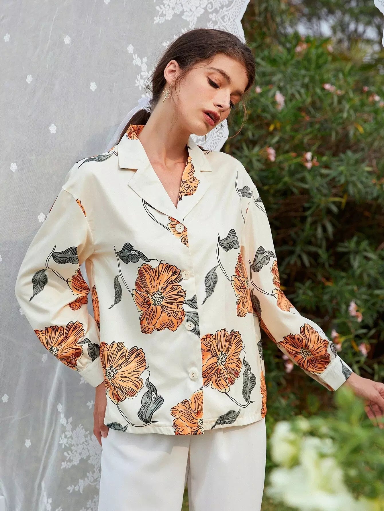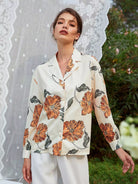 Floral Drop Shoulder Button Up Blouse