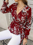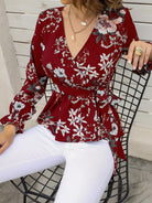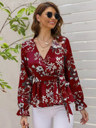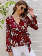 Floral Print Flounce Sleeve Wrap Blouse