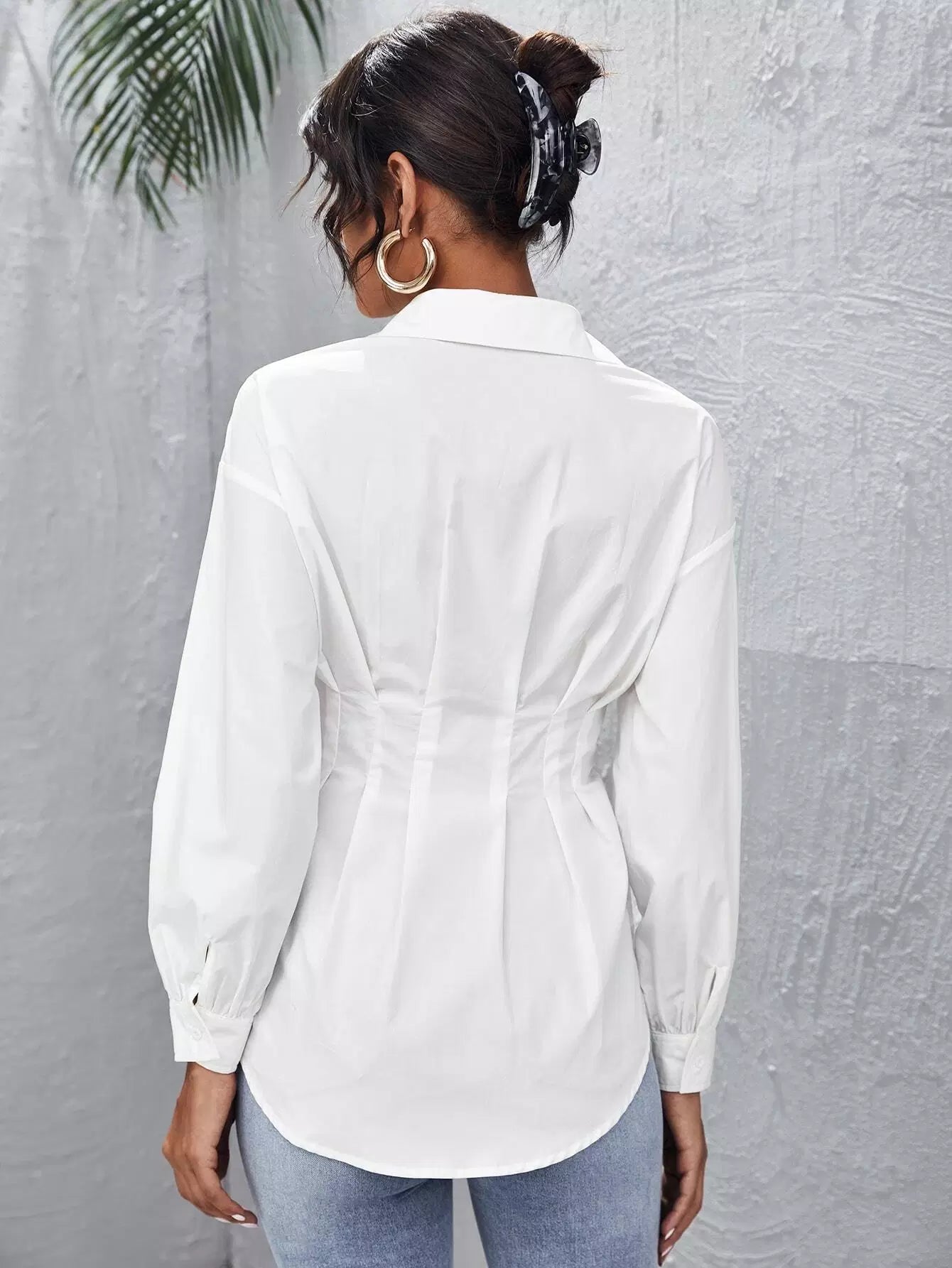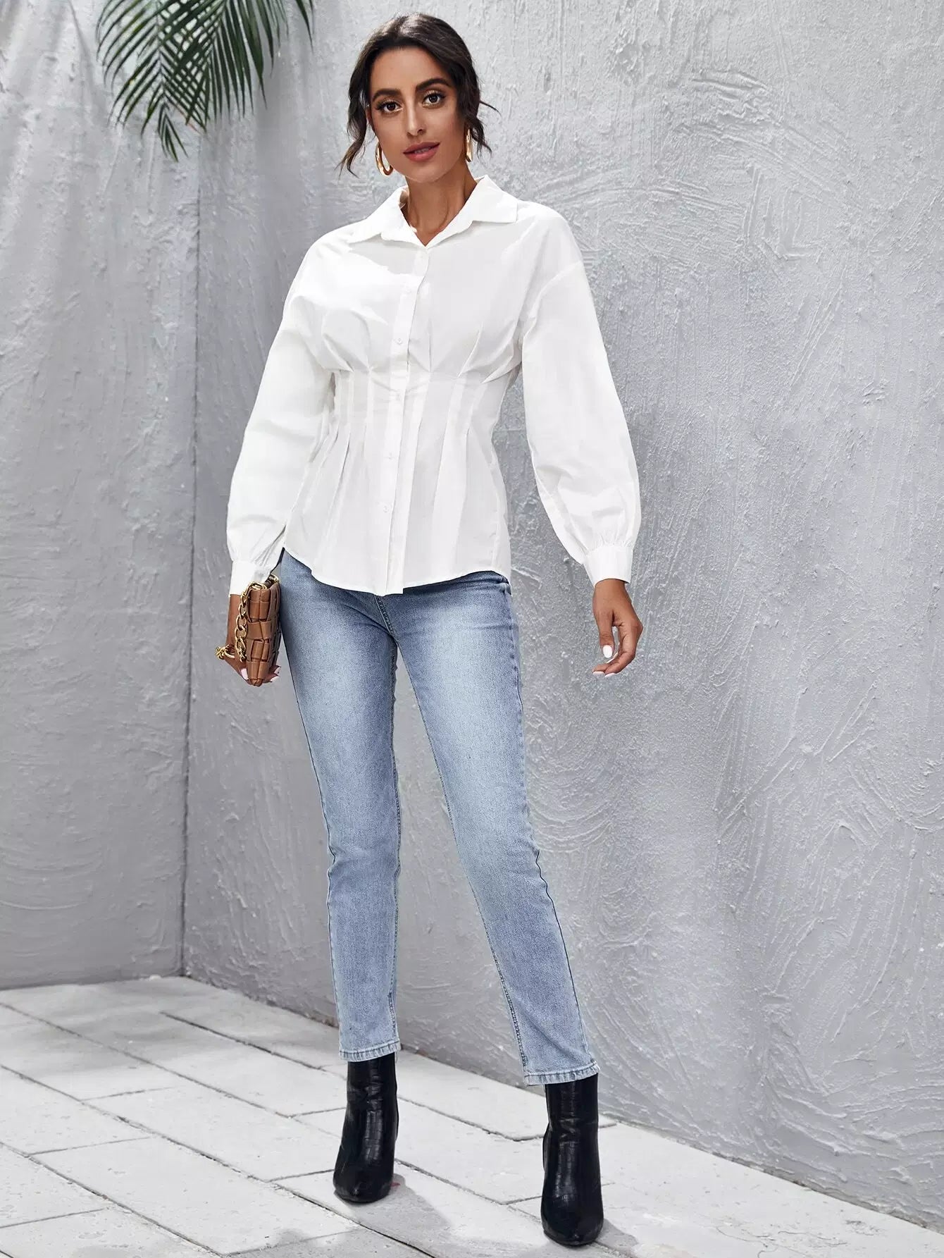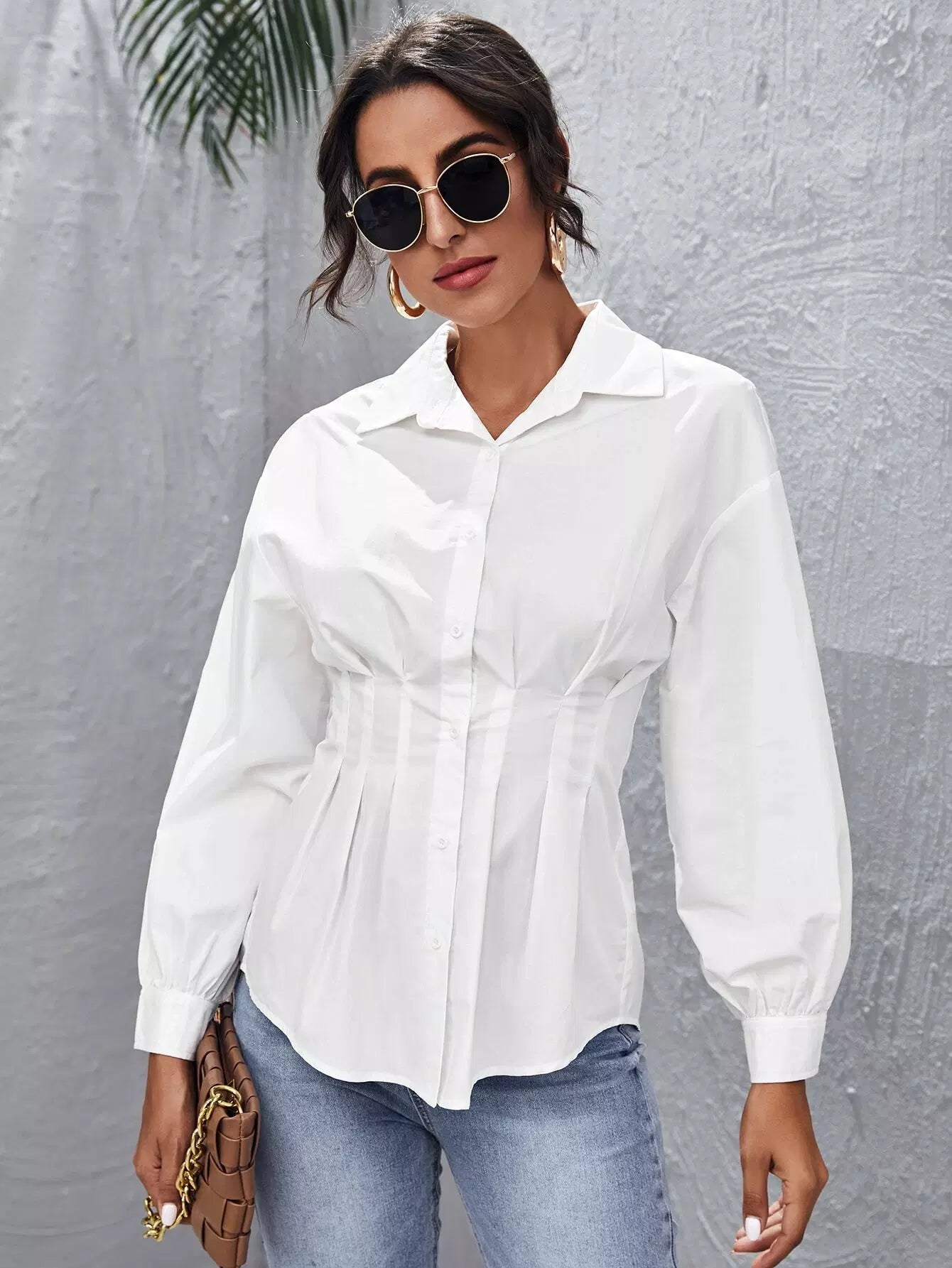 Fold Pleated Lantern Sleeve Shirt