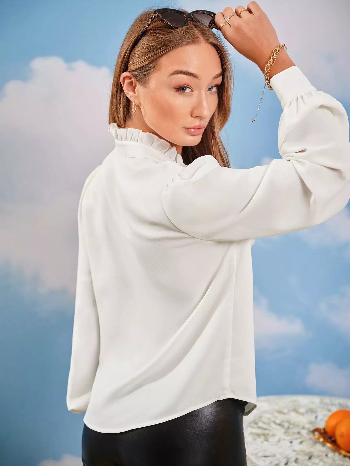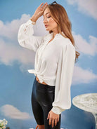 Women - Frill Trim Lantern Sleeve Blouse