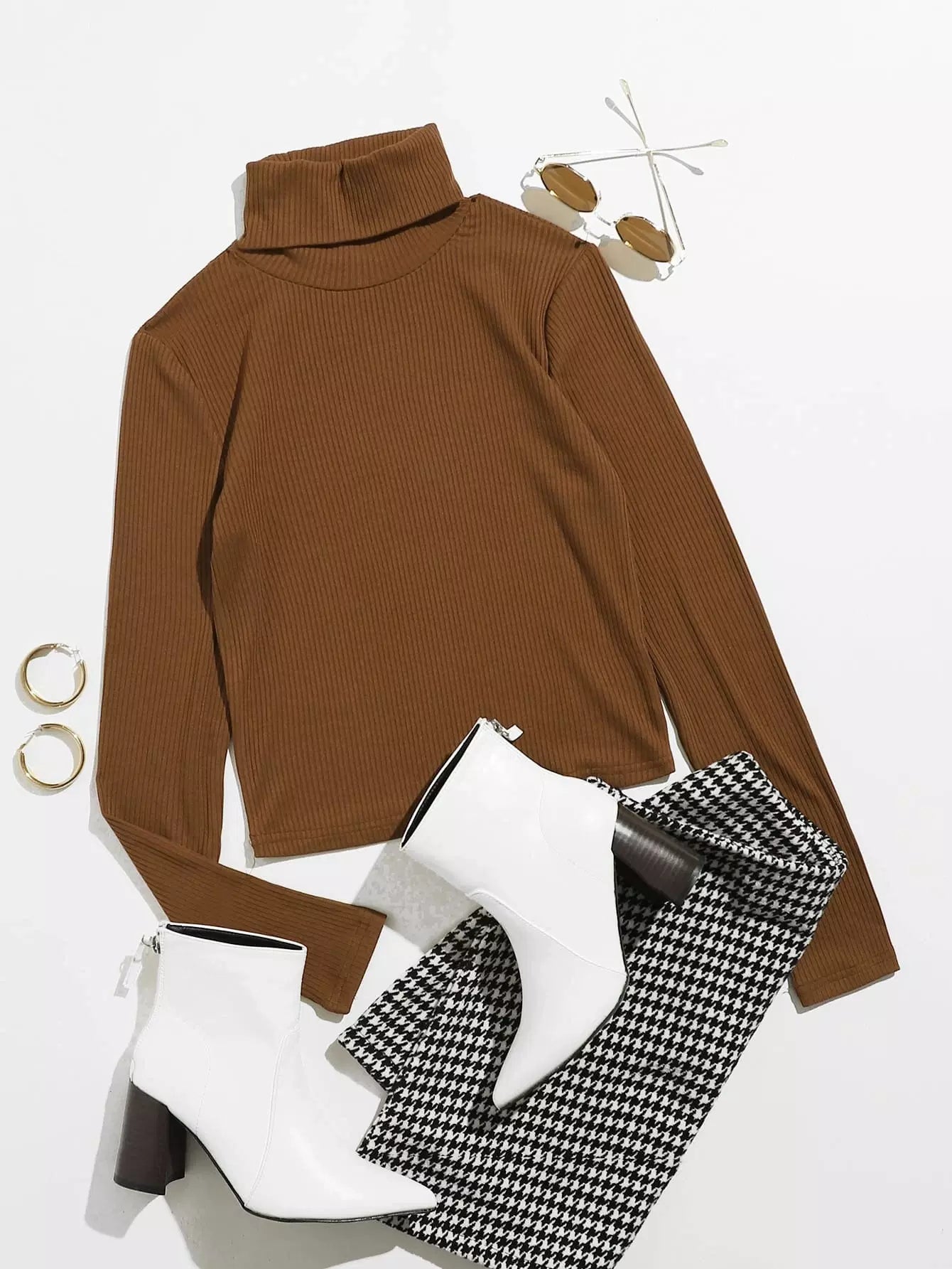 Funnel Neck Rib-knit Tee