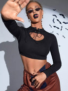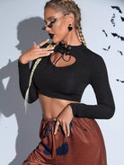 Women - Garment Eyelet Lace Up Cut Out Front Crop Tee