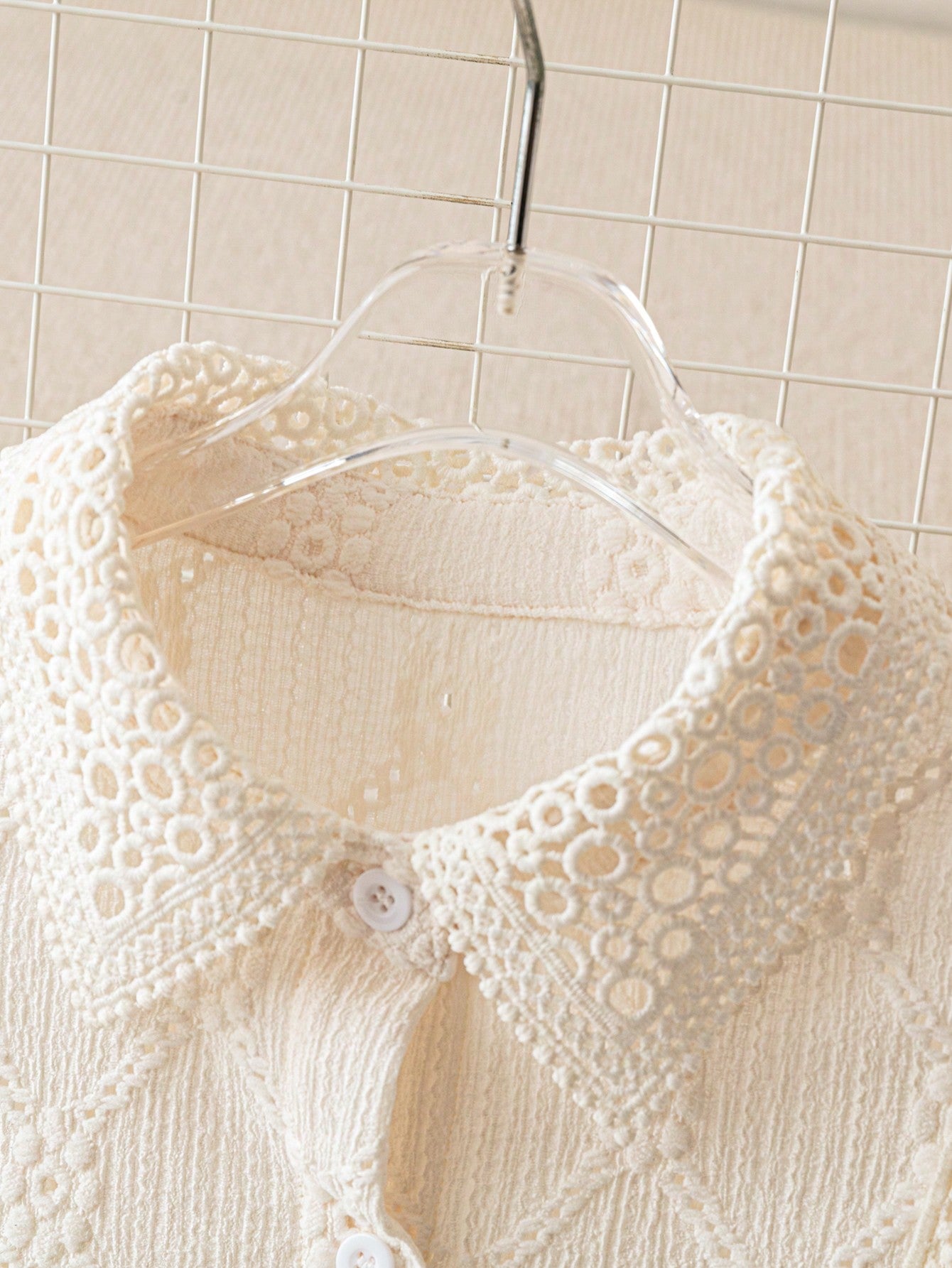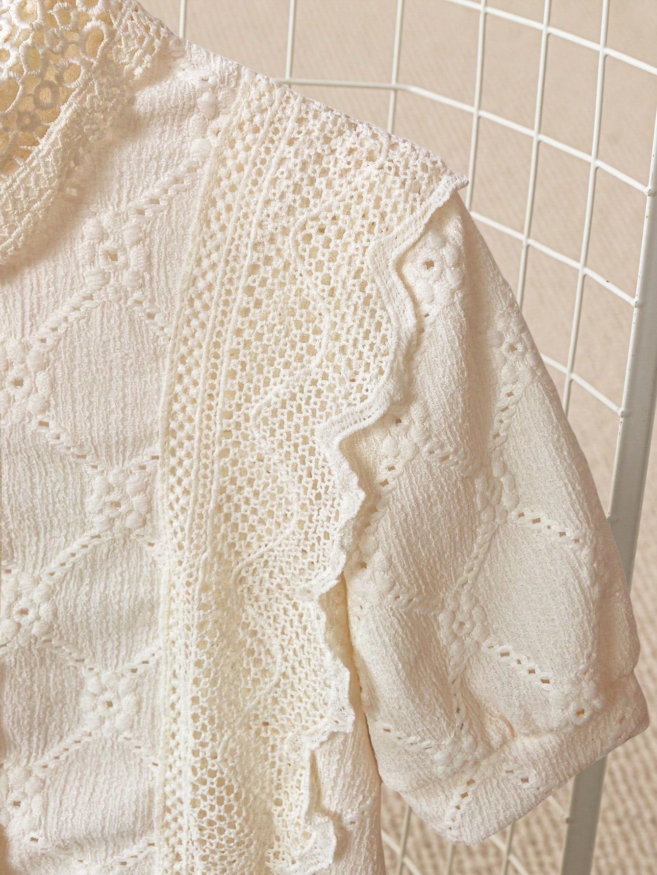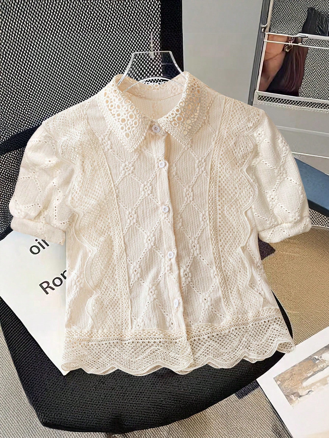 GlowEve Women's Minimalist Embroidery Puff Sleeve Blouse, Suitable For Commuting