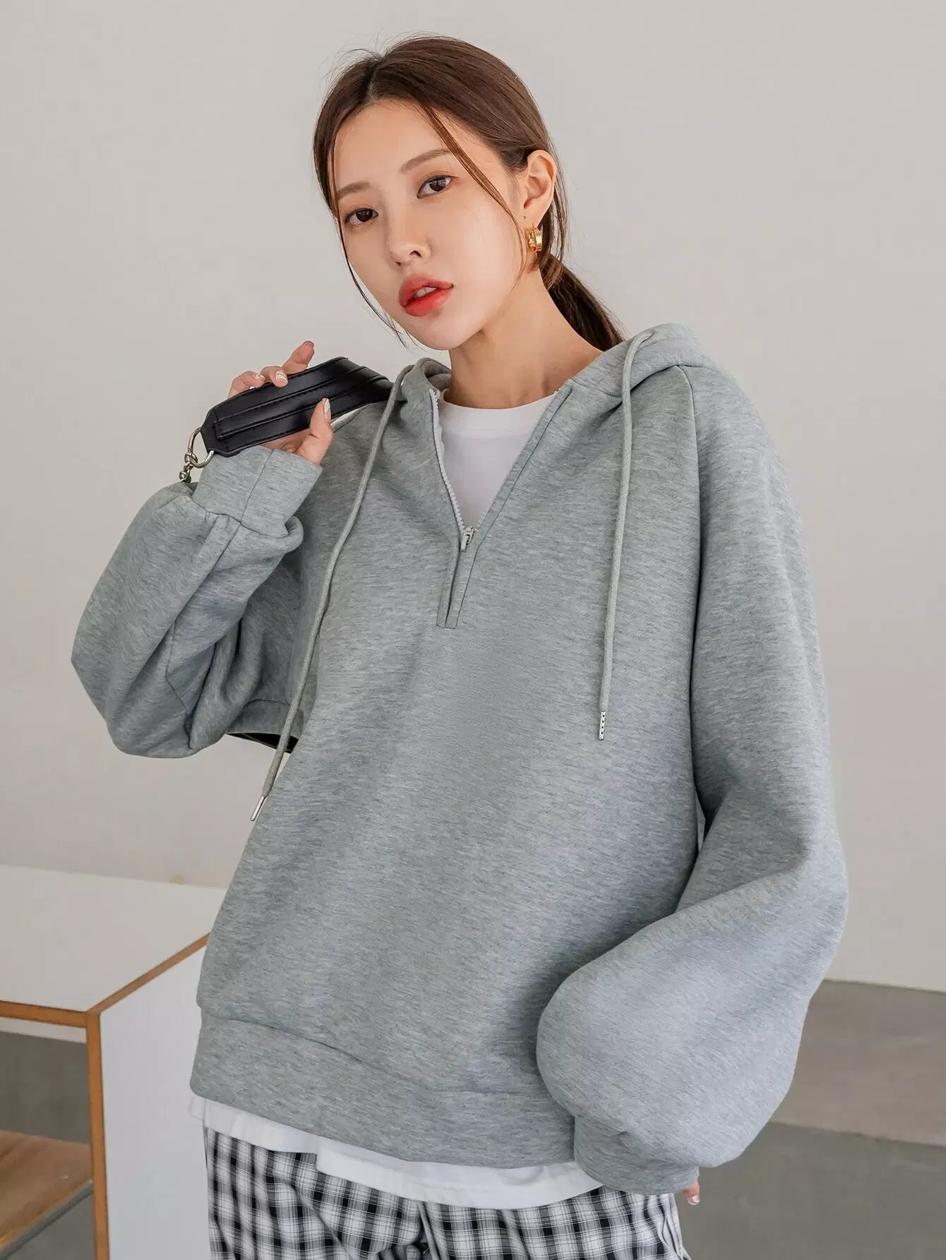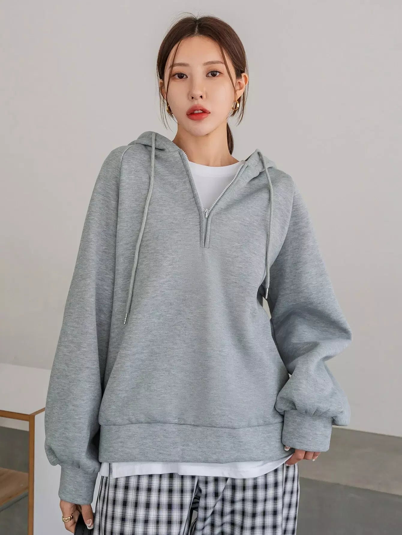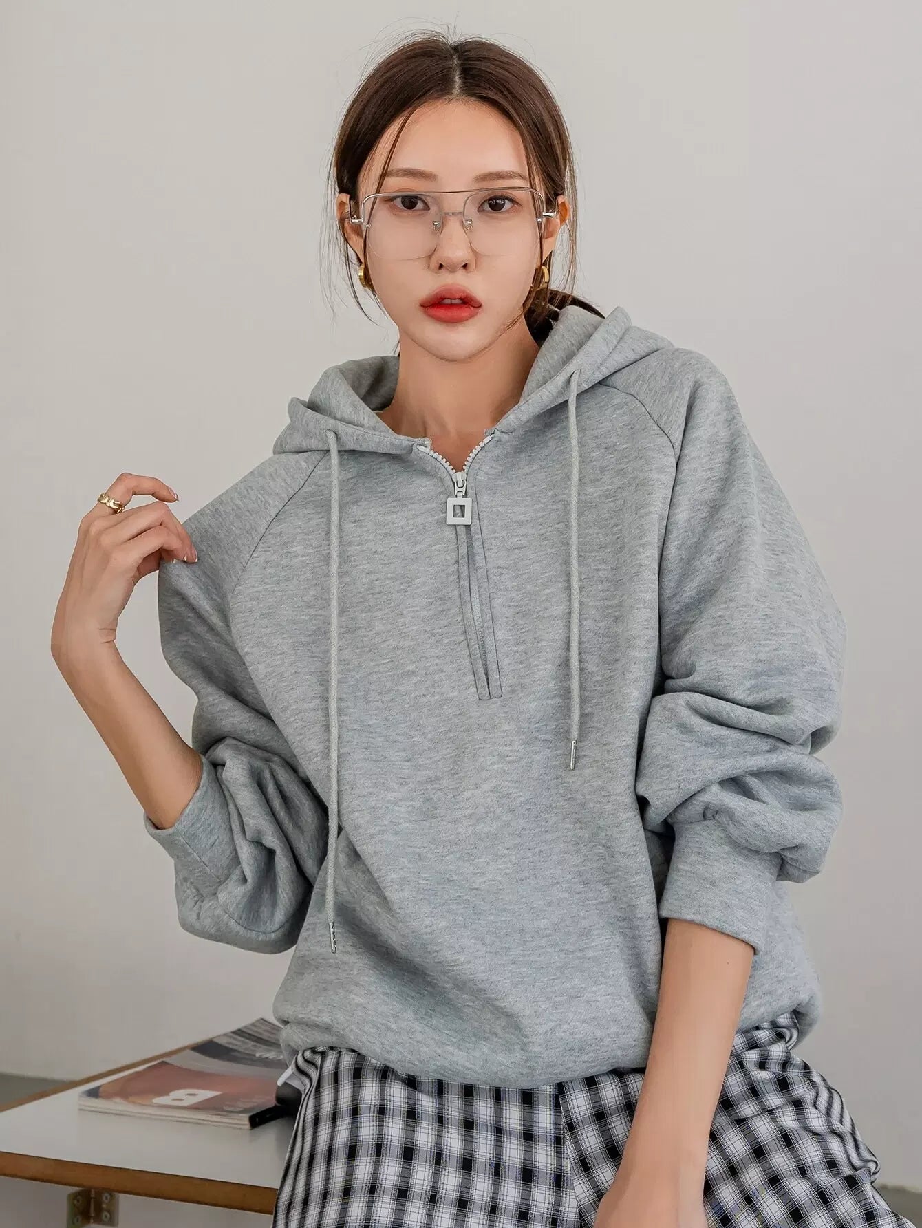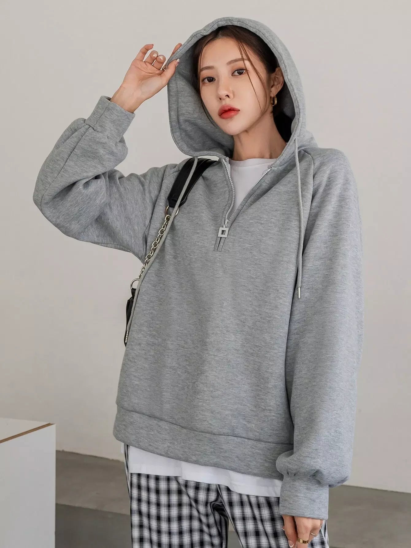 Half Zip Raglan Sleeve Drawstring Hoodie