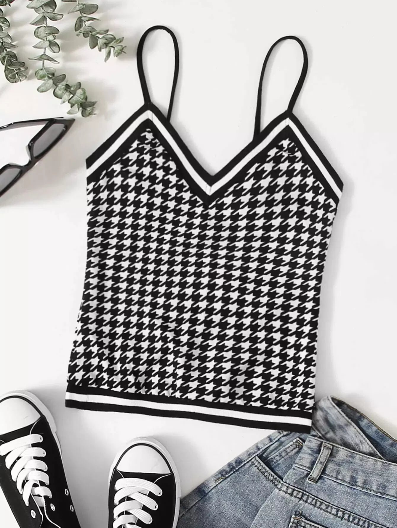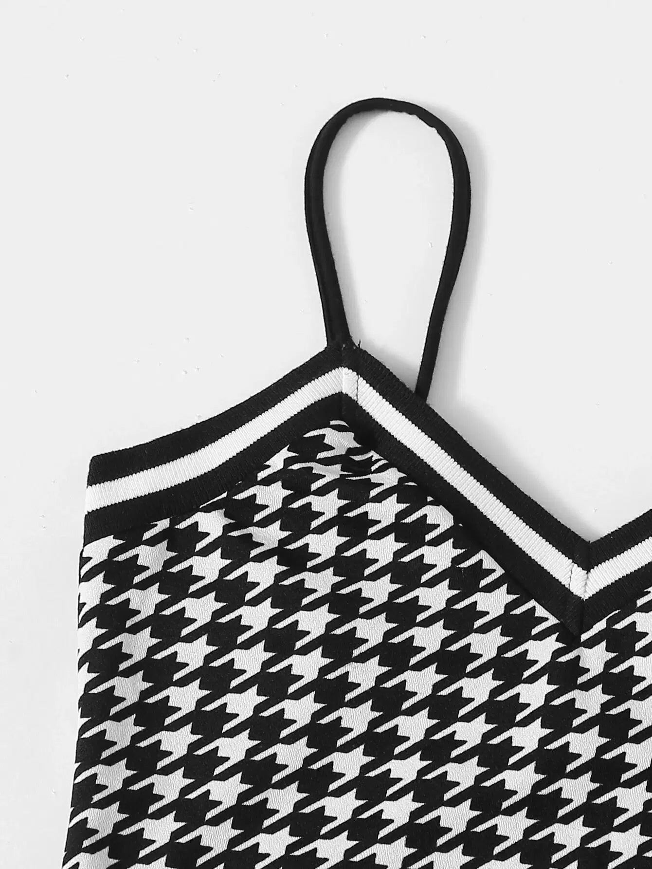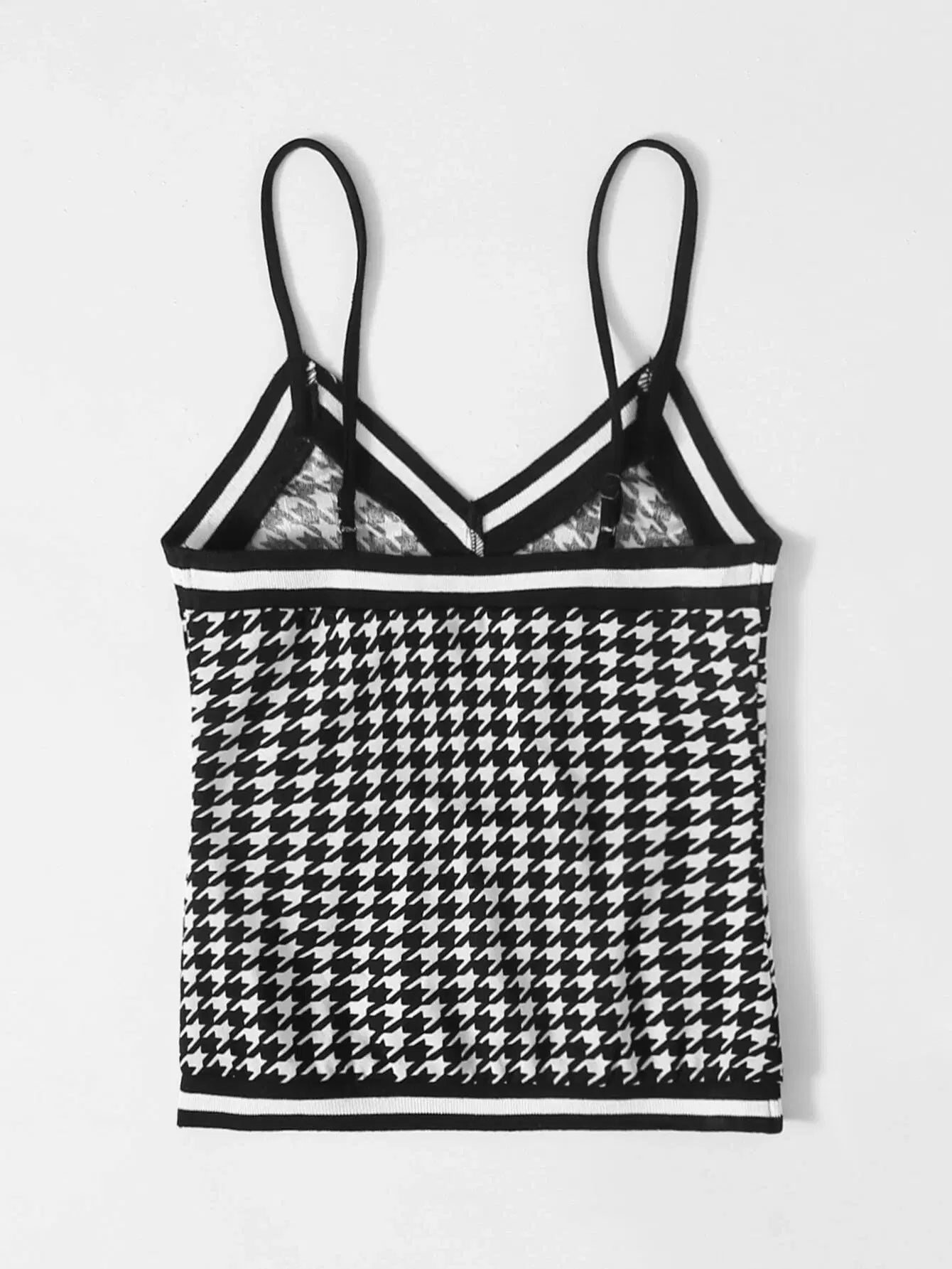 Houndstooth Pattern Striped Trim Cami Top