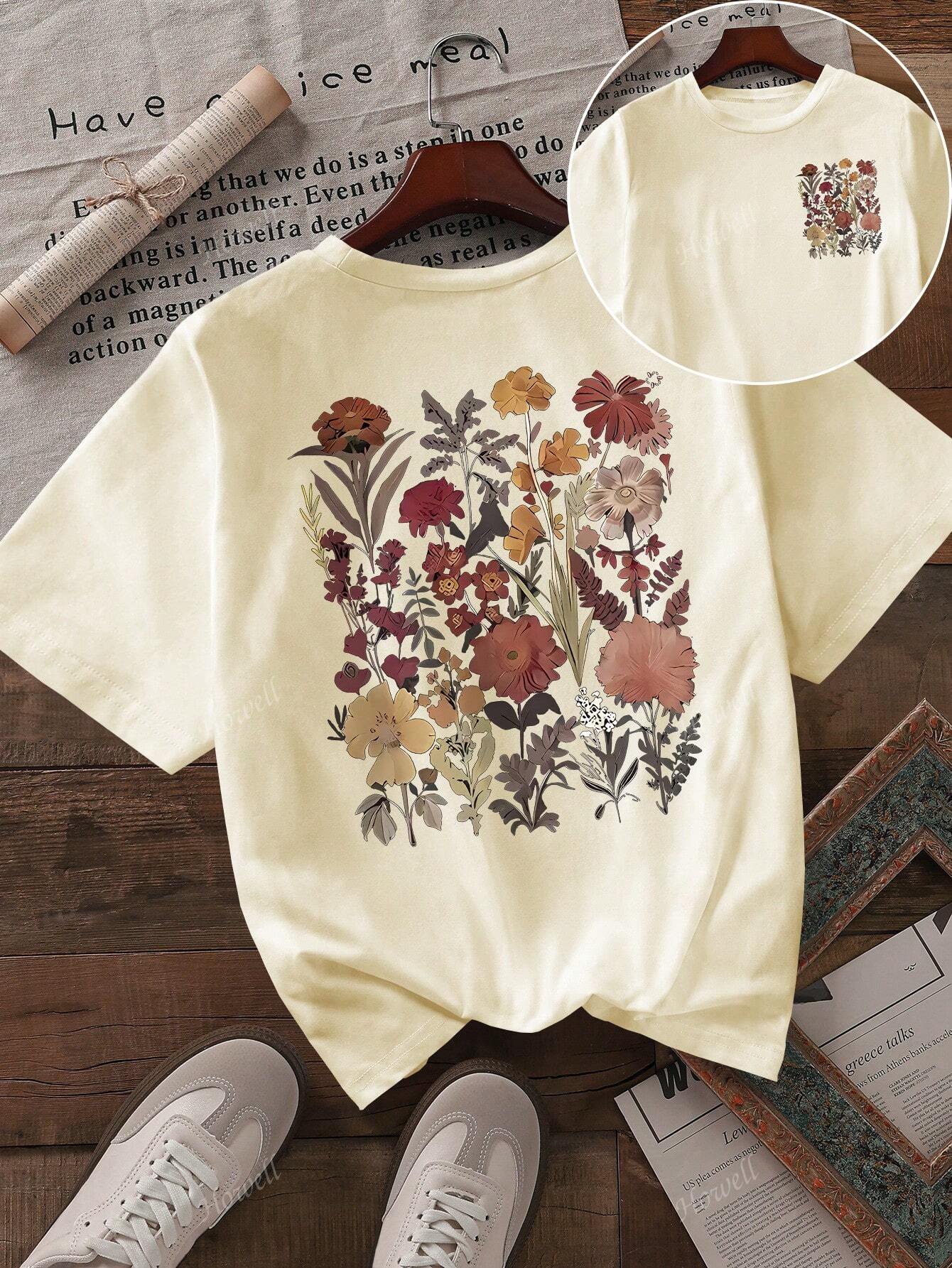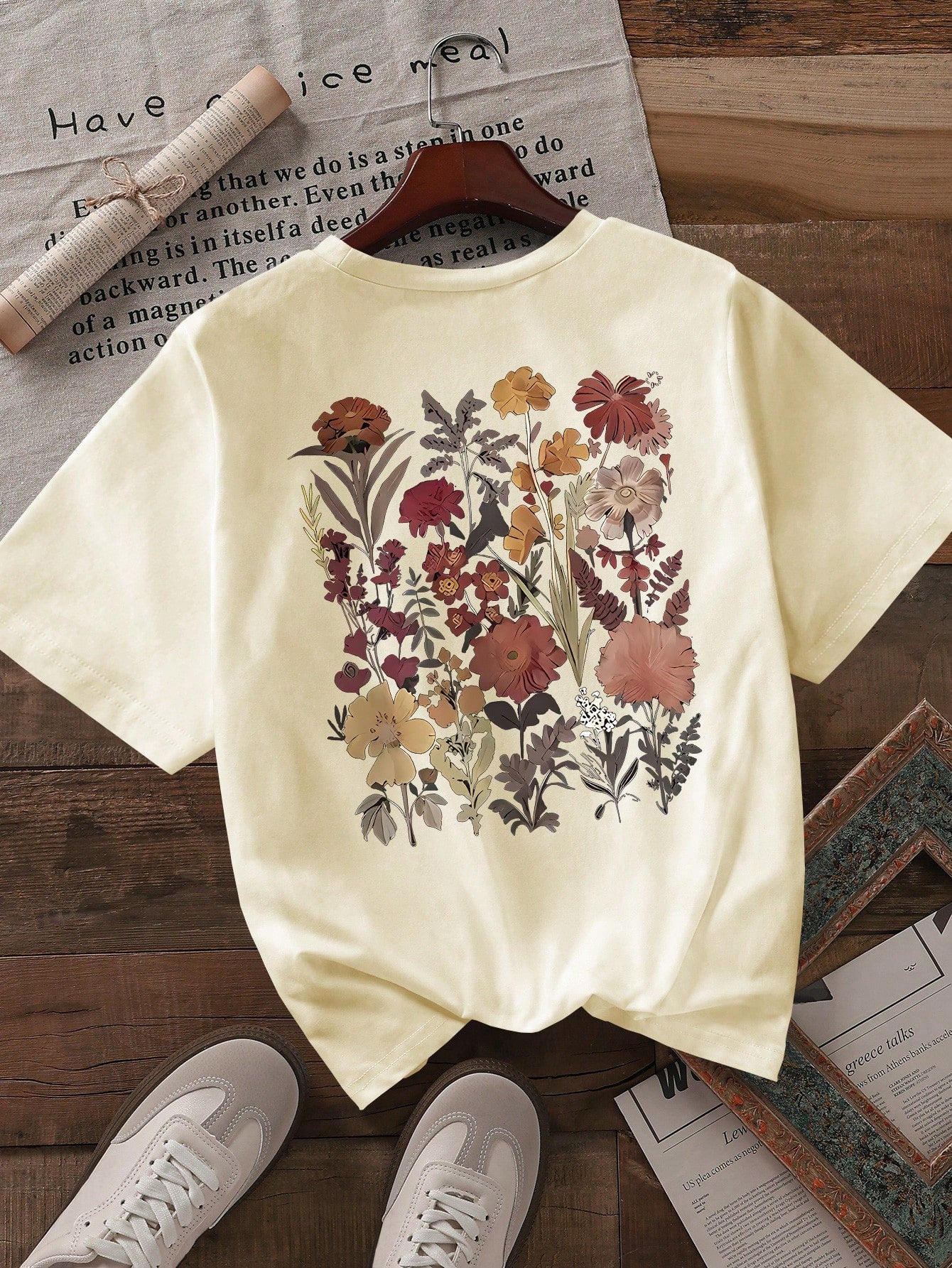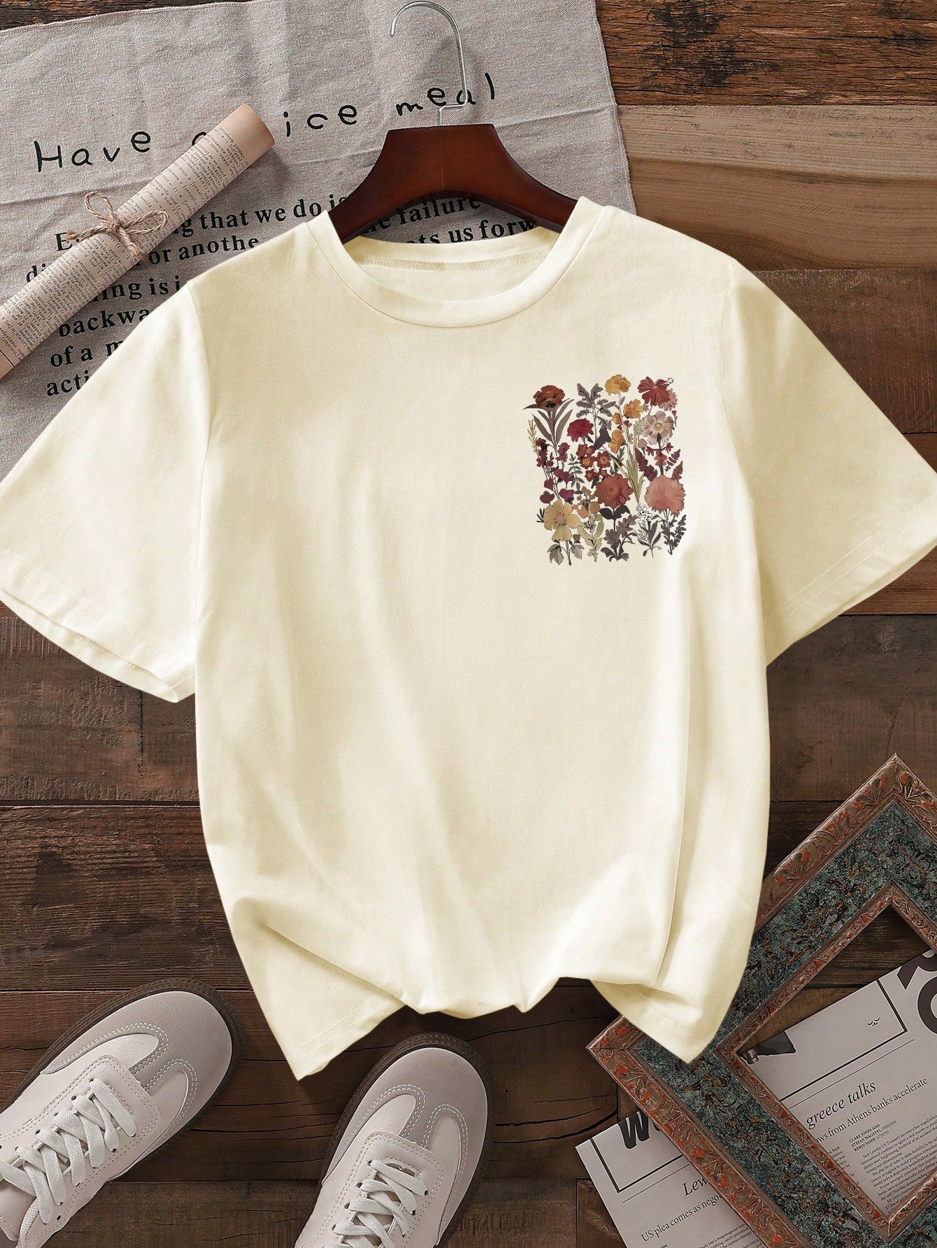 Howell All-Match Fashion Floral Print Short Sleeve T-Shirt Women's Casual Charming Flower Pattern Tee