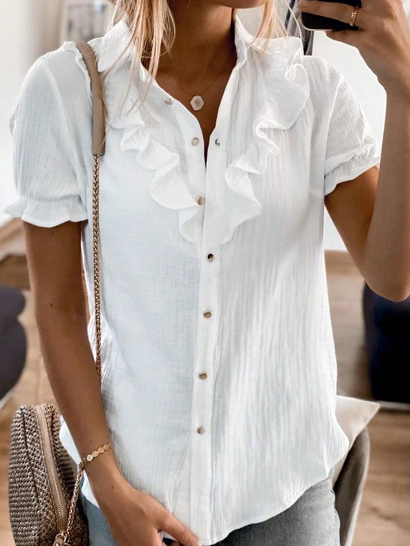 women INAWLY Casual Resort Ruffle Collar Short Sleeve Cardigan