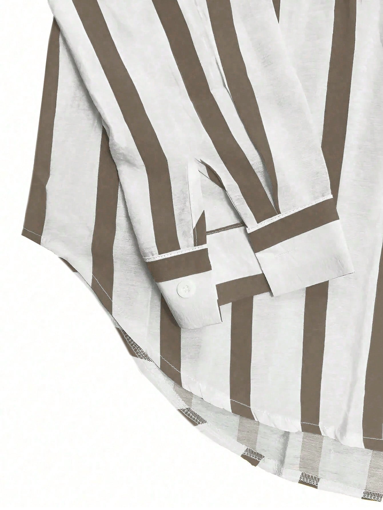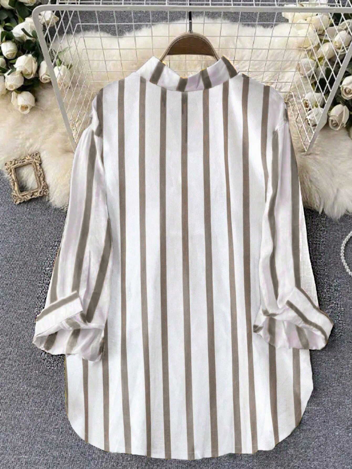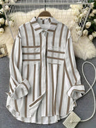INAWLY Women's Spring & Autumn Loose Striped Long Sleeve Pocket Casual Blouse Women Shirt