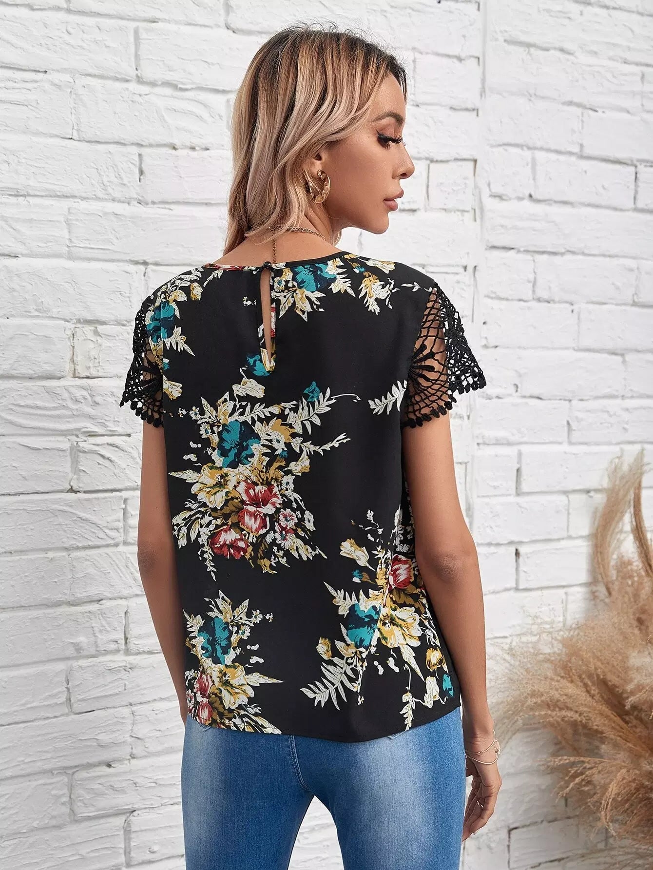 Keyhole Neck Floral Top