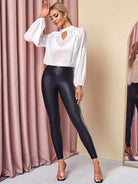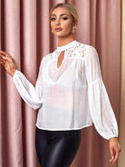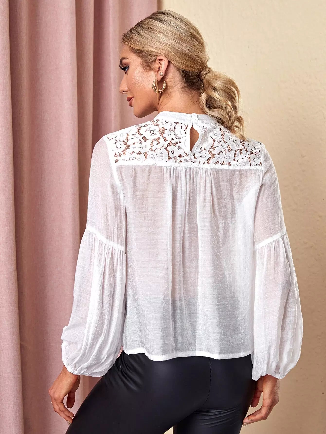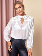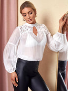 Keyhole Neck Lace Panel Drop Shoulder Blouse