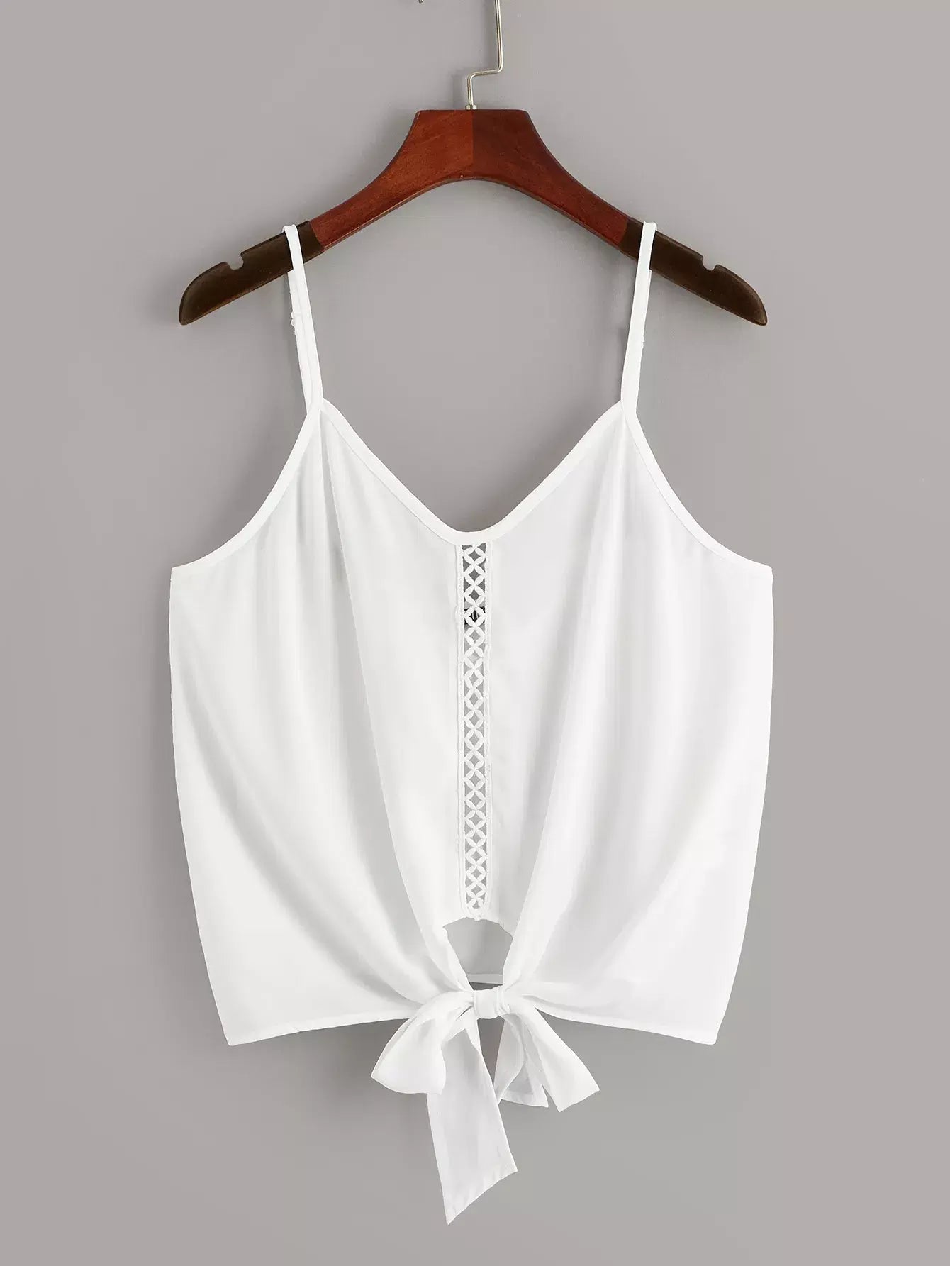 Lace Insert Knot Hem Cami Top