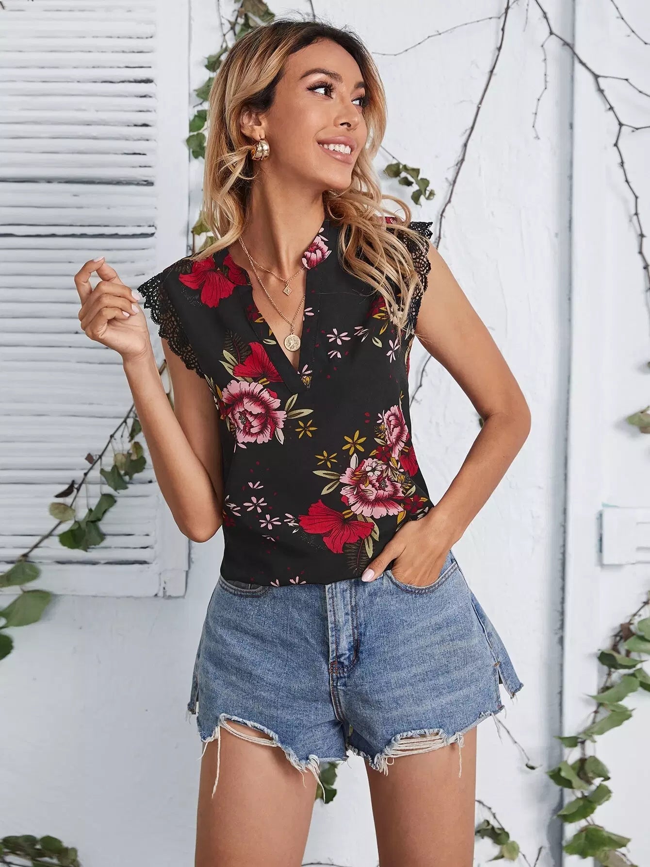 Lace Scallop Edge Floral Top