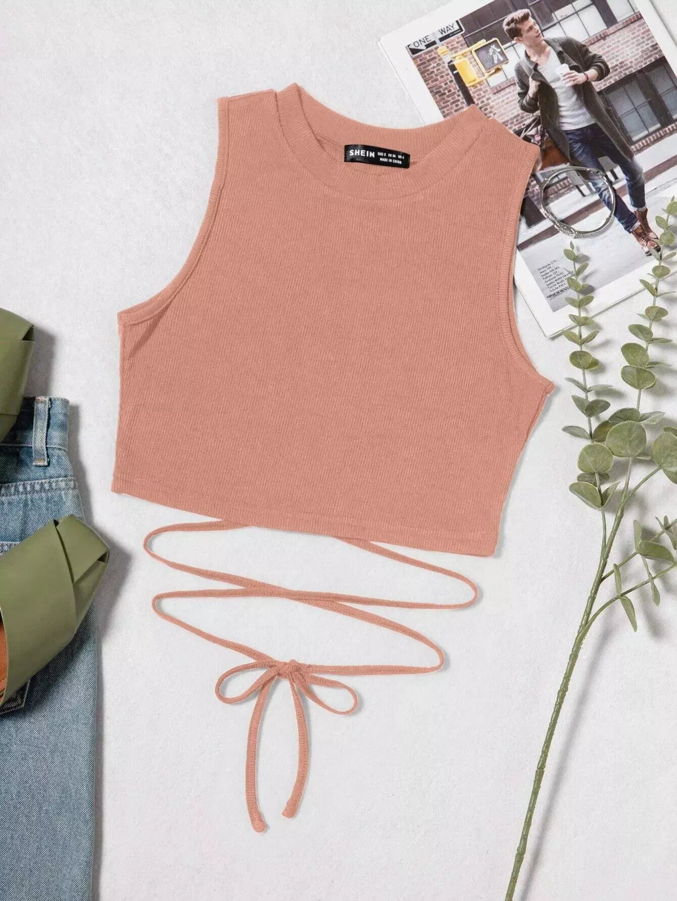 Lace Up Crew Neck Crop Tank Top