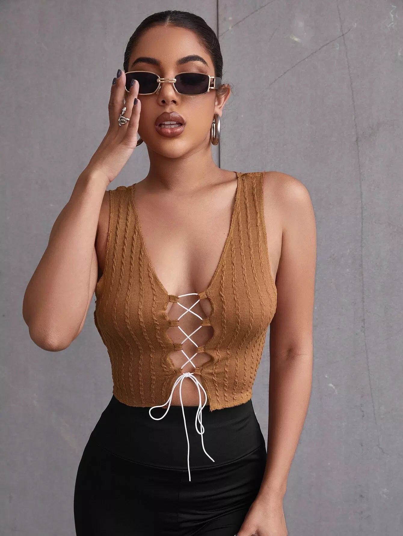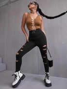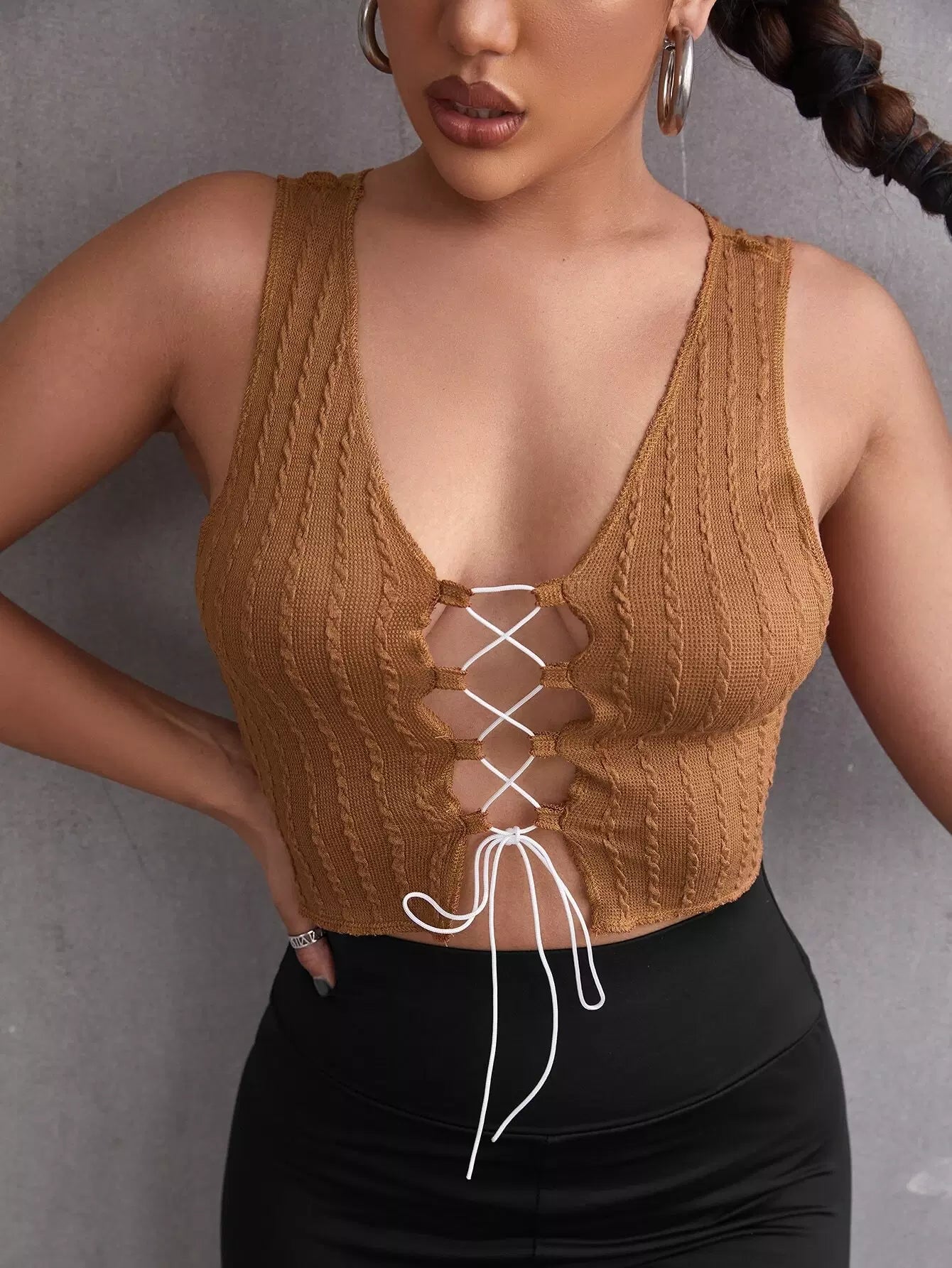 Lace-up Front Crop Tank Top