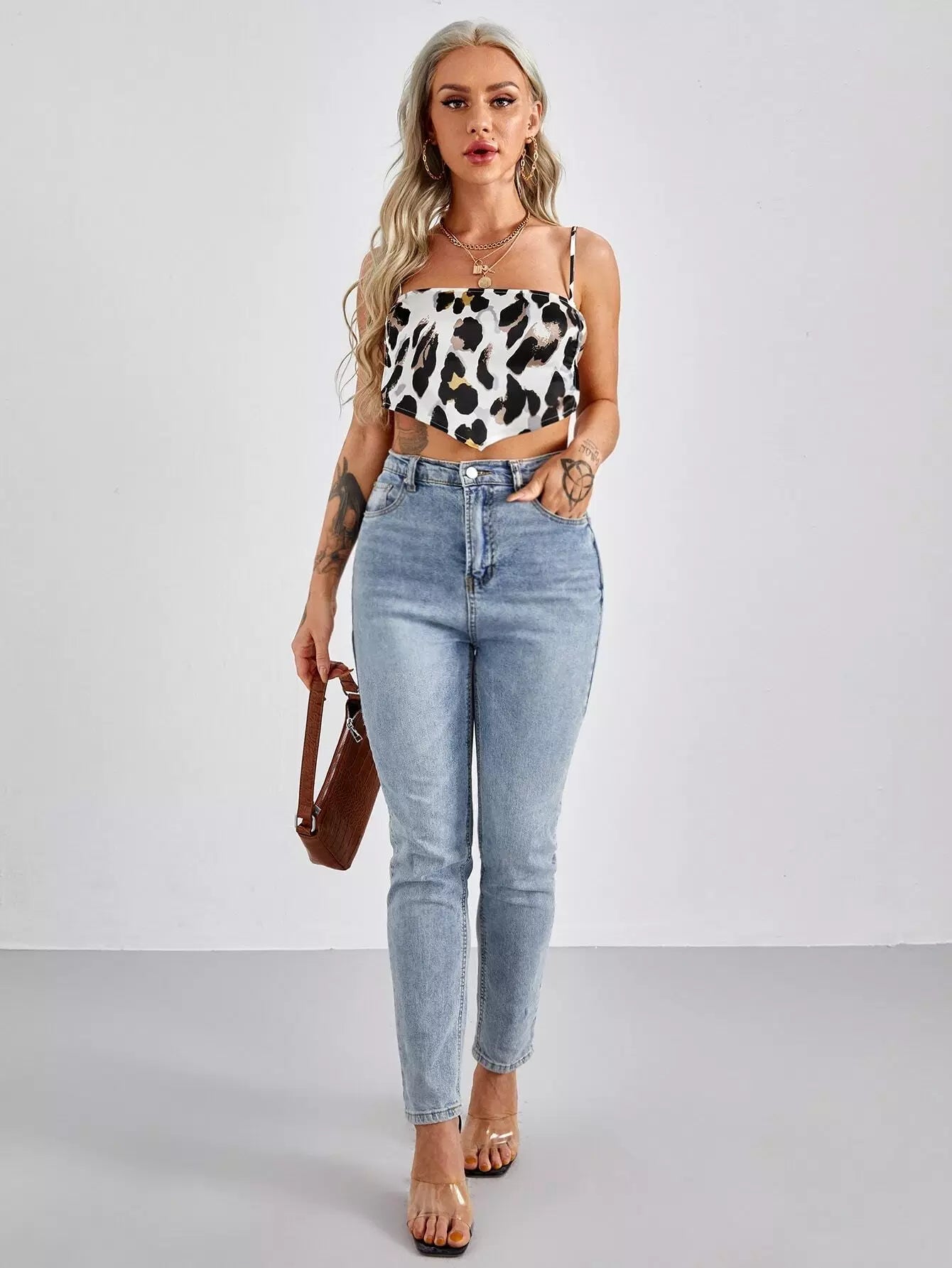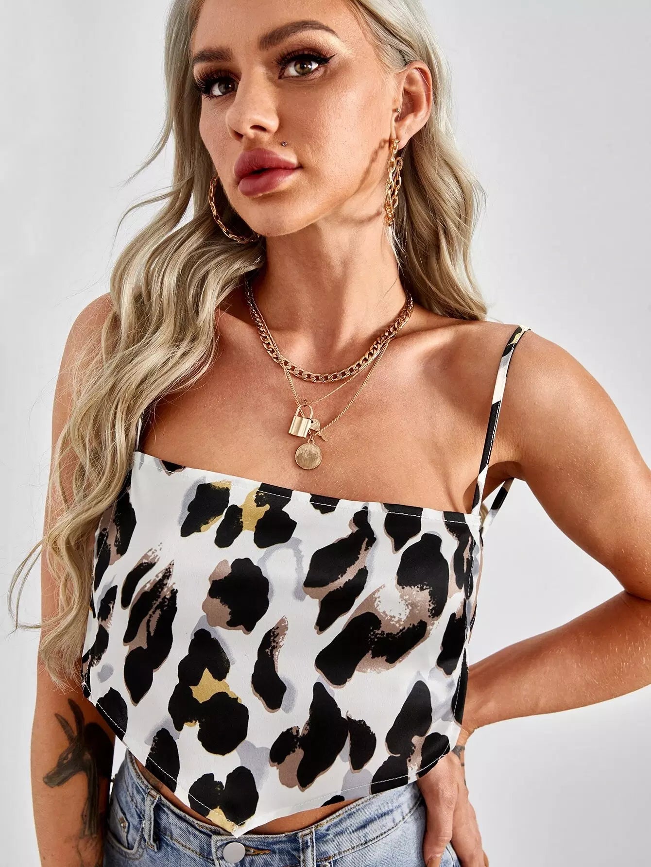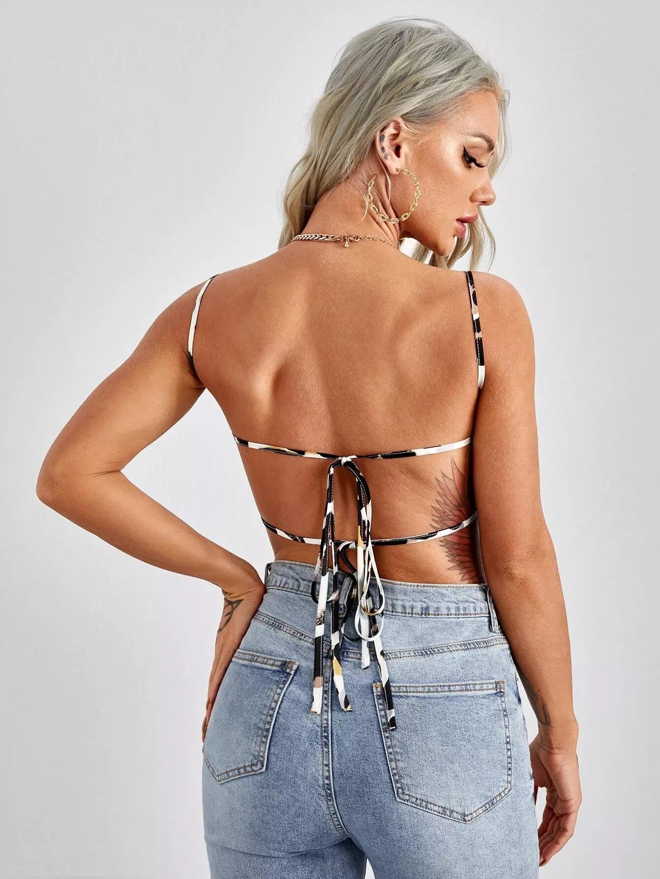 Lace-up Open Back Graphic Bandana Cami Top