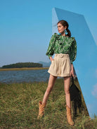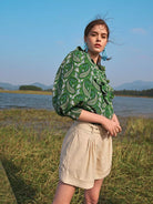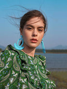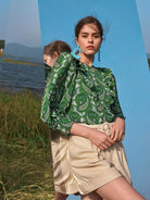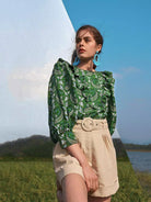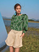 Lantern Sleeve Ruffle Detail Allover Paisley Print Top