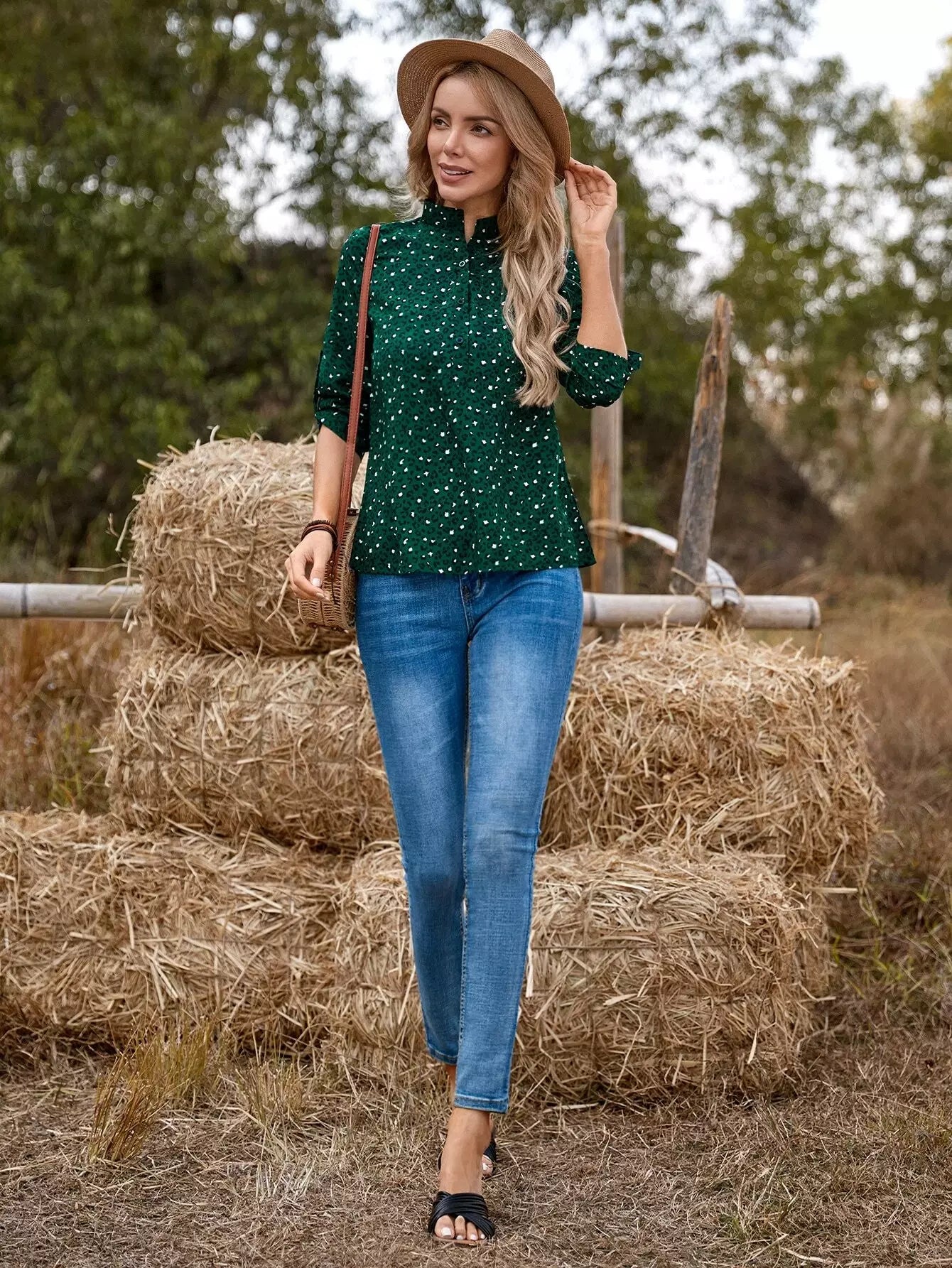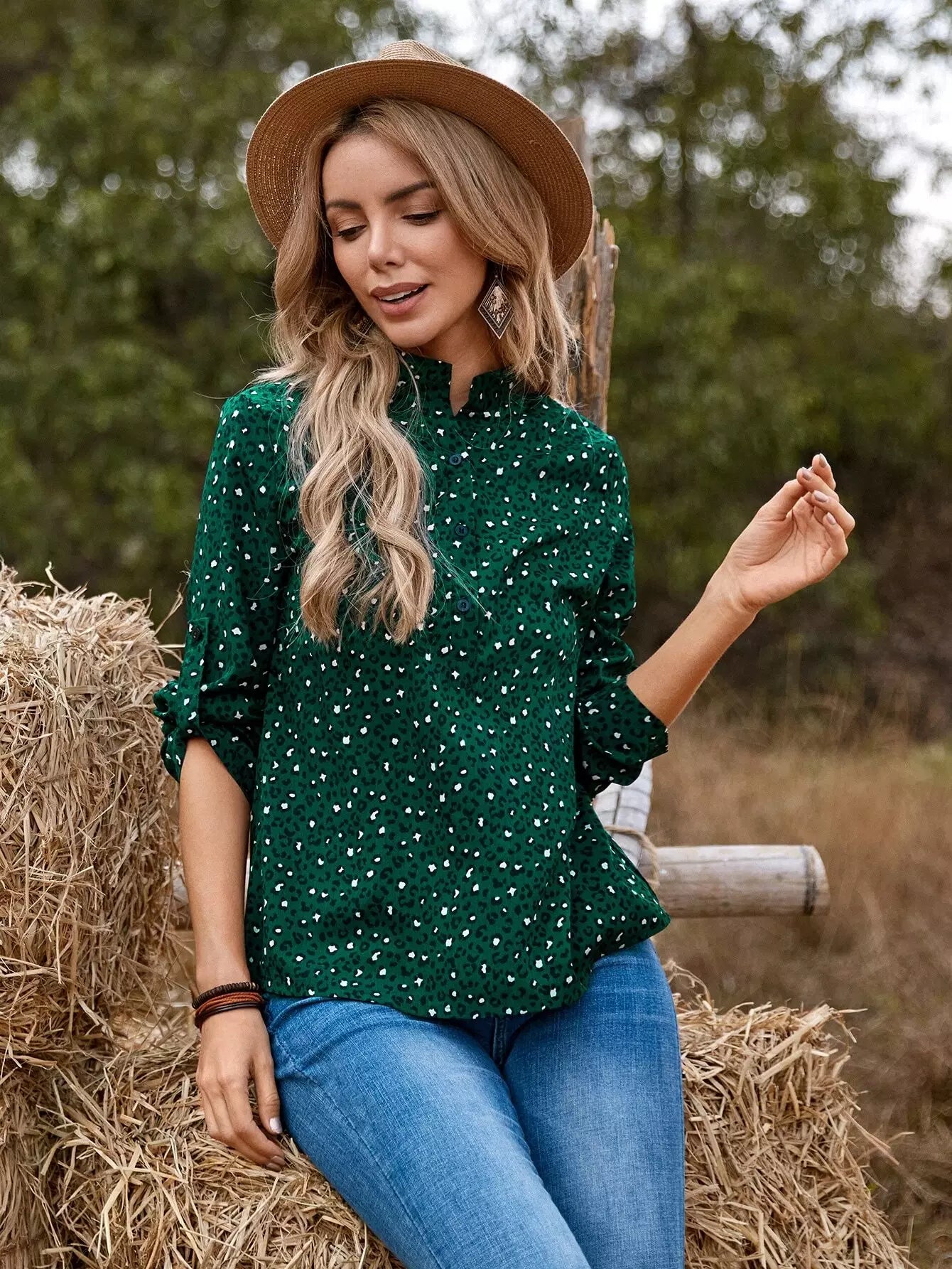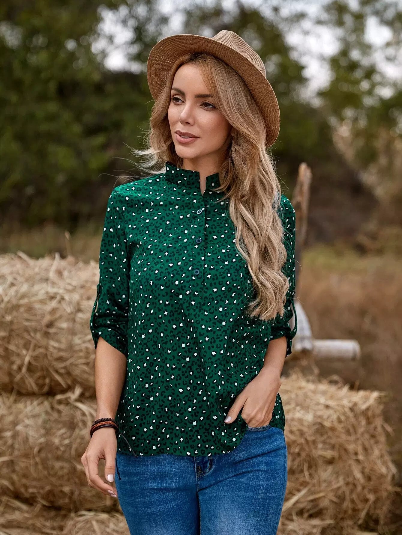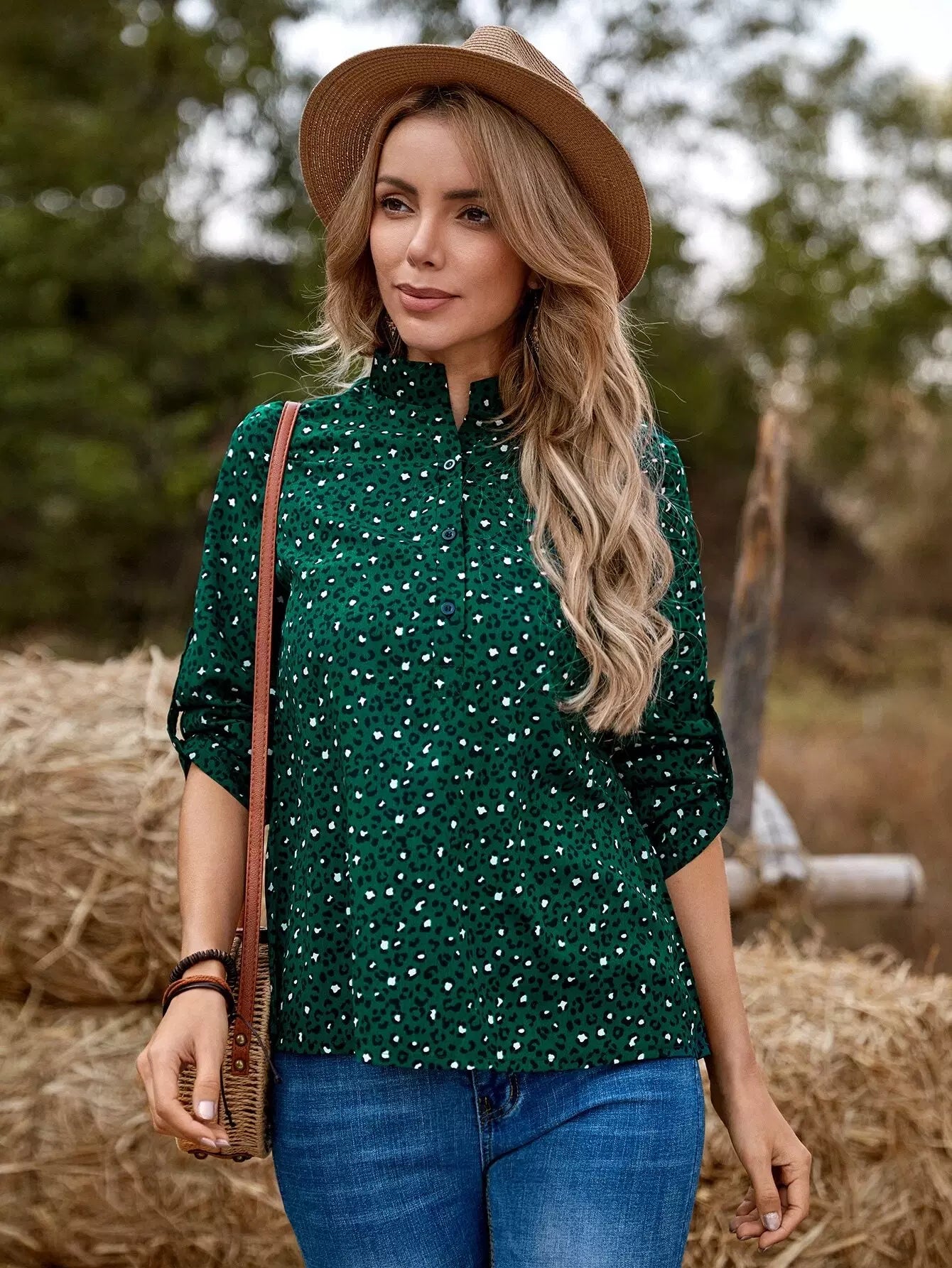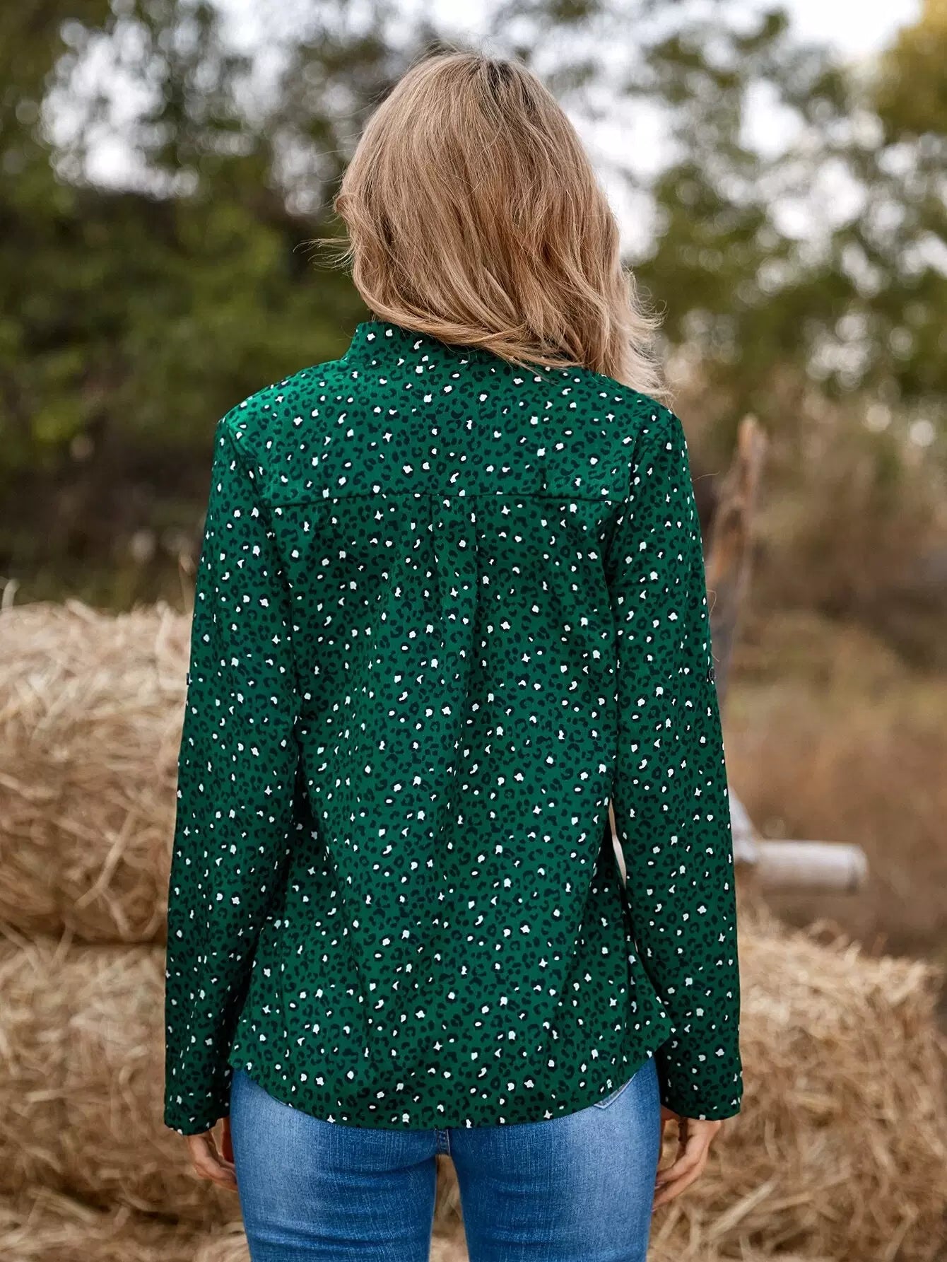 Leopard Print Roll-up Sleeve Blouse