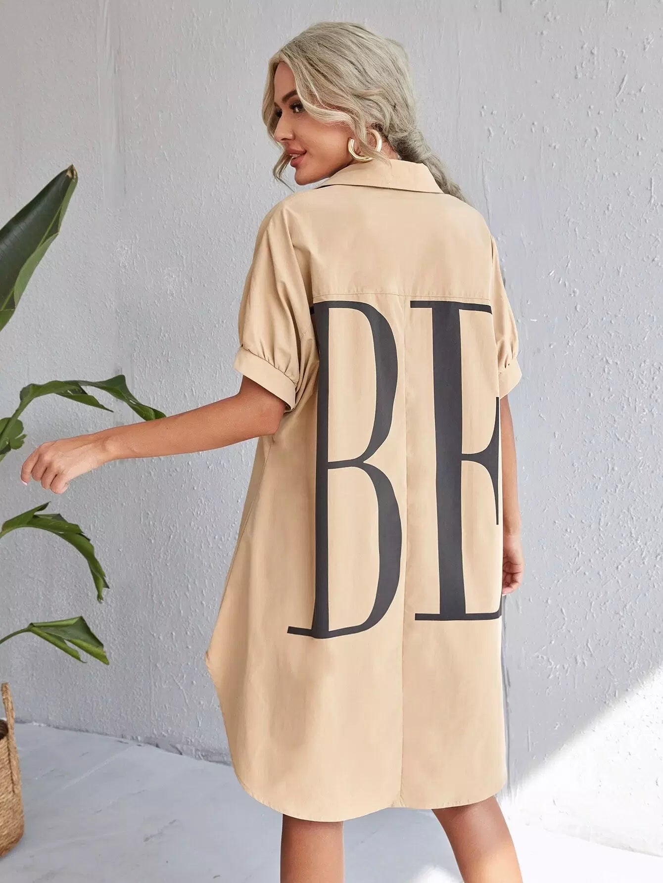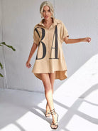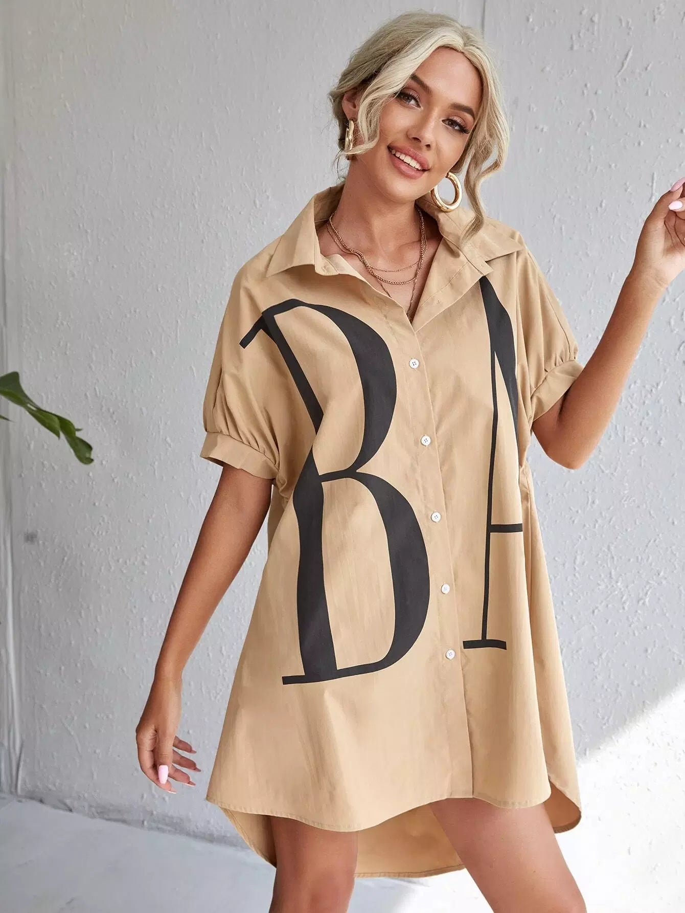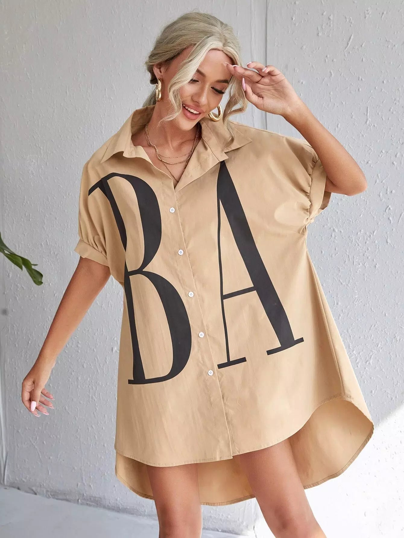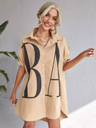 Letter Graphic Button Front Dip Hem Shirt