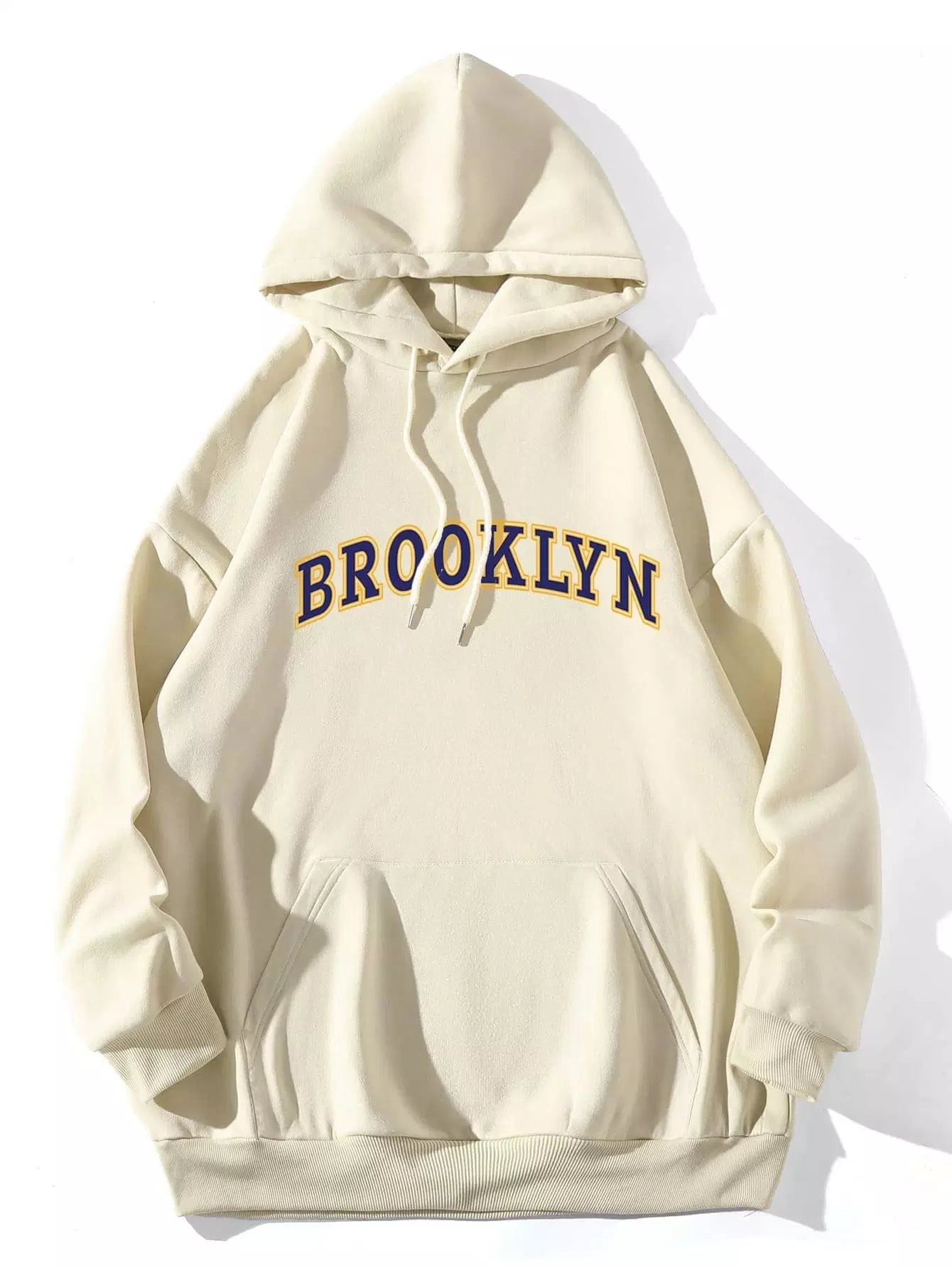Letter Graphic Drop Shoulder Drawstring Hoodie