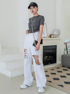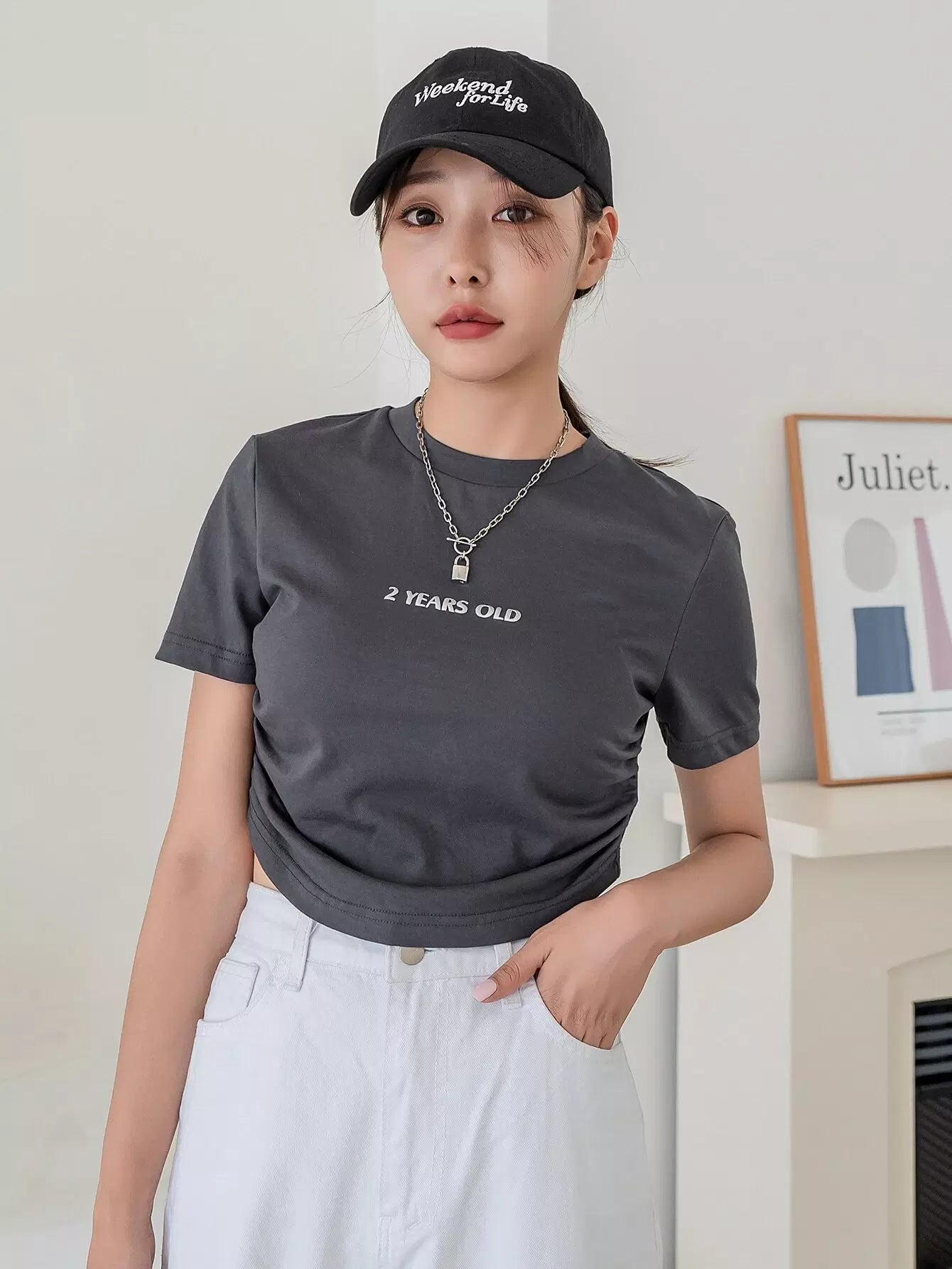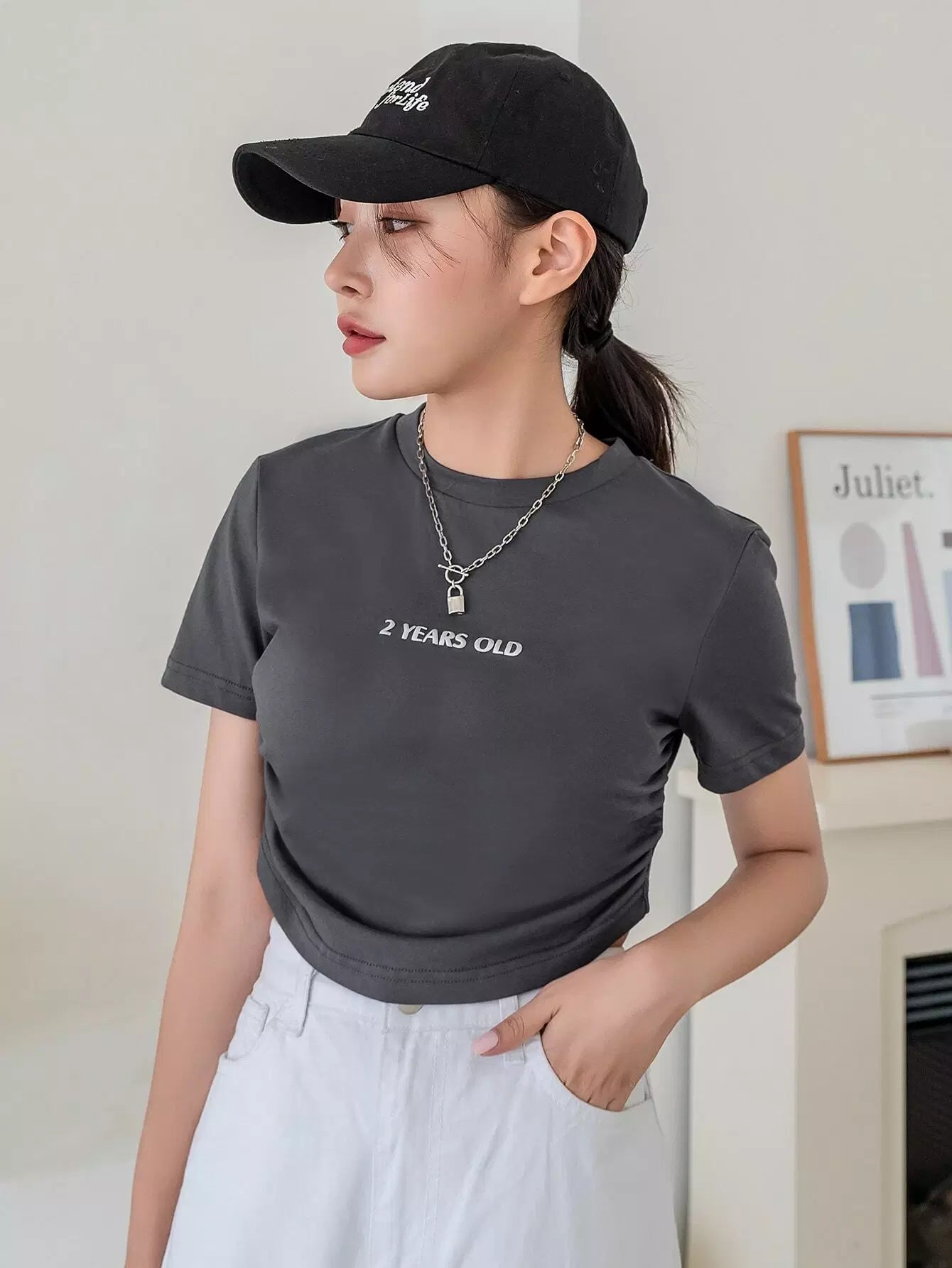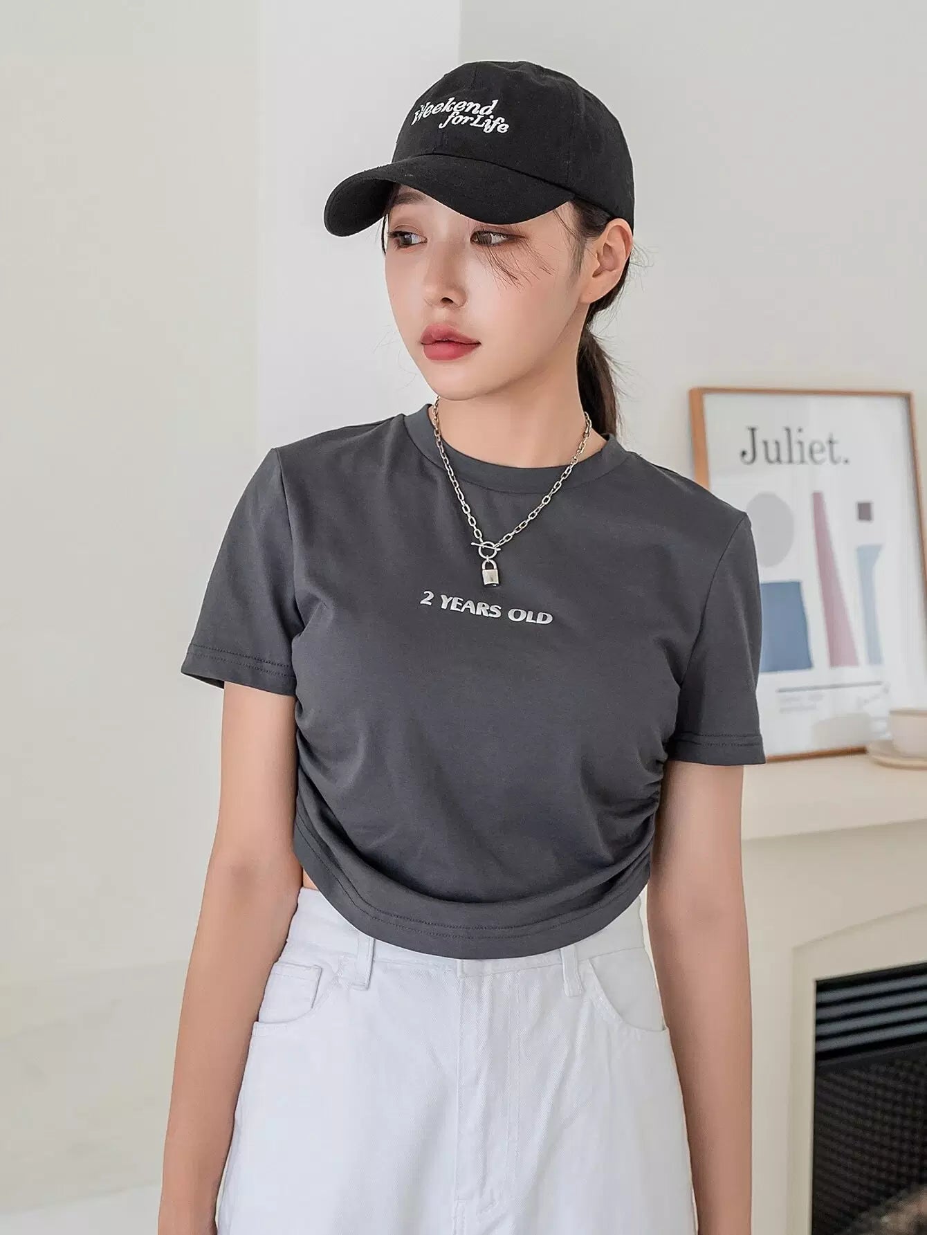 Letter Graphic Ruched Crop Tee