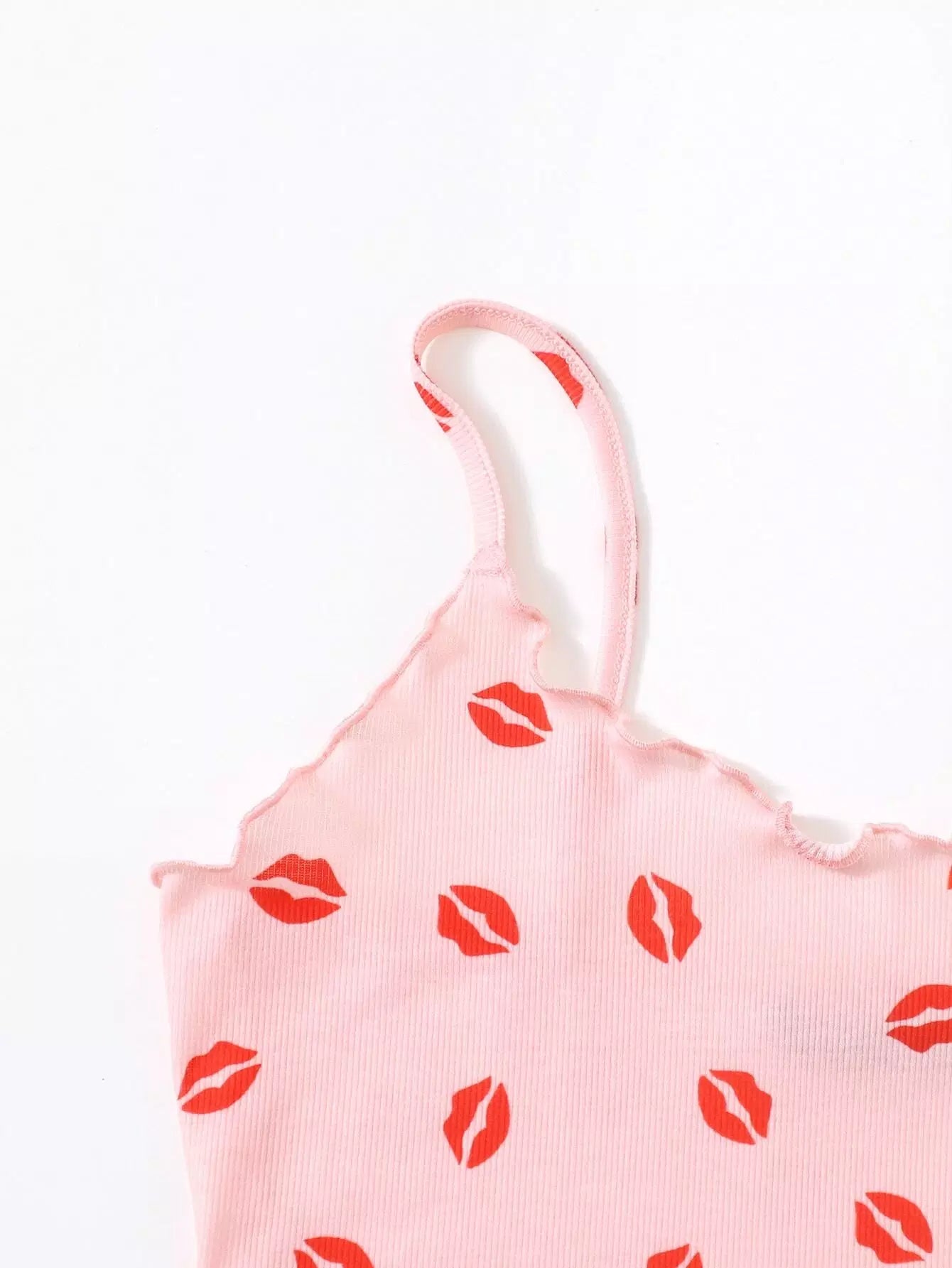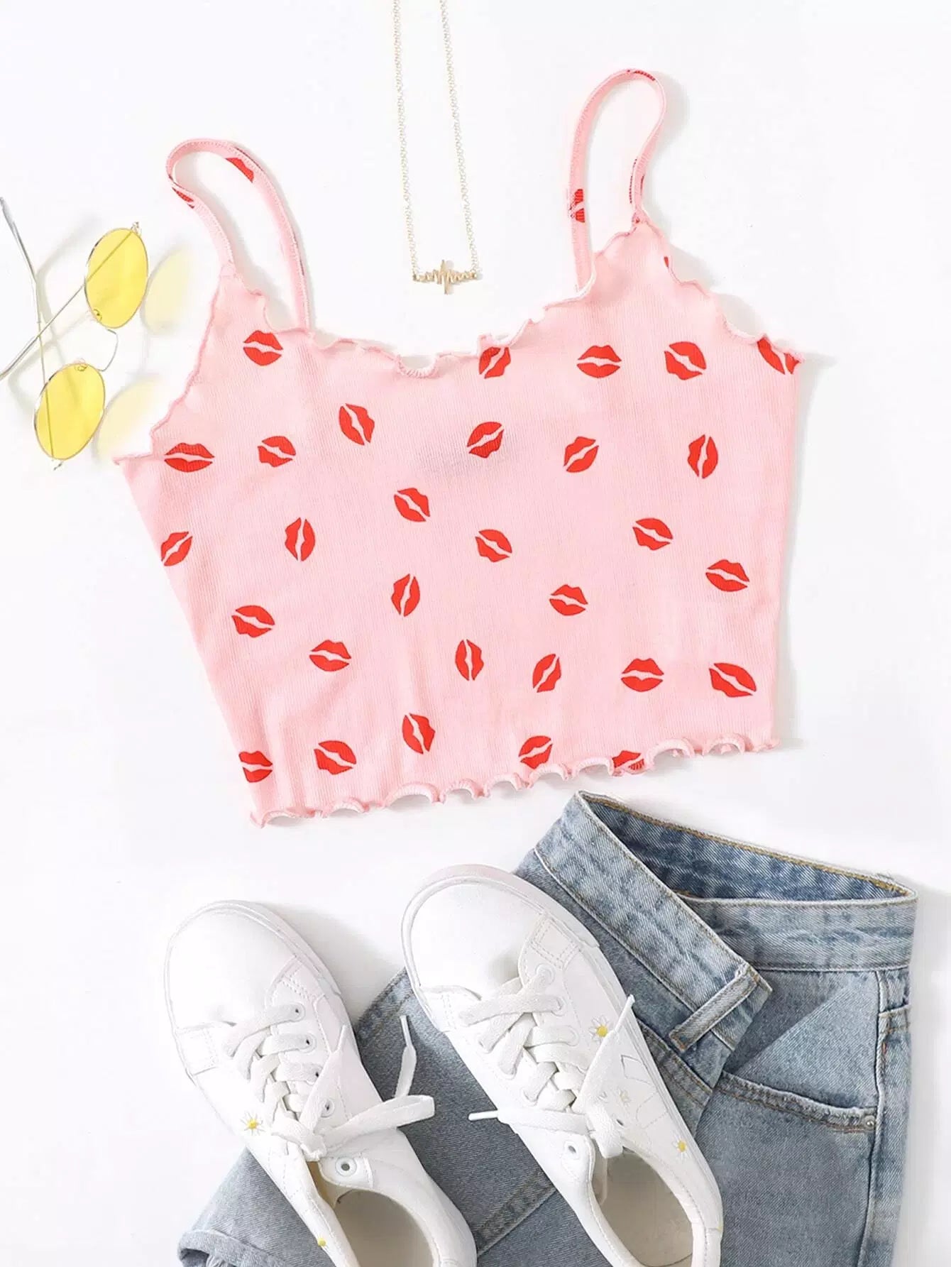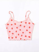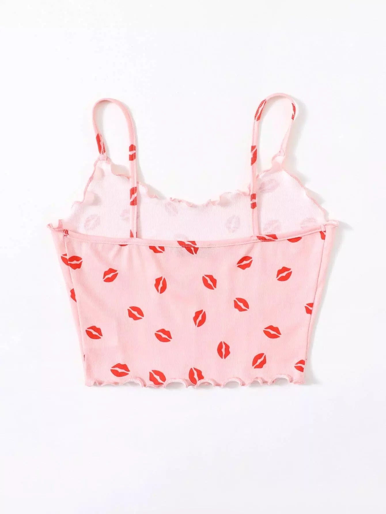 Lettuce Trim Allover Lip Print Crop Cami Top