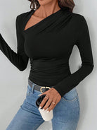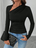 LUNE Asymmetrical Neck Ruched Slim Fit Casual Commute Elegant Outdoor Winter Women Long Sleeve T-Shirt