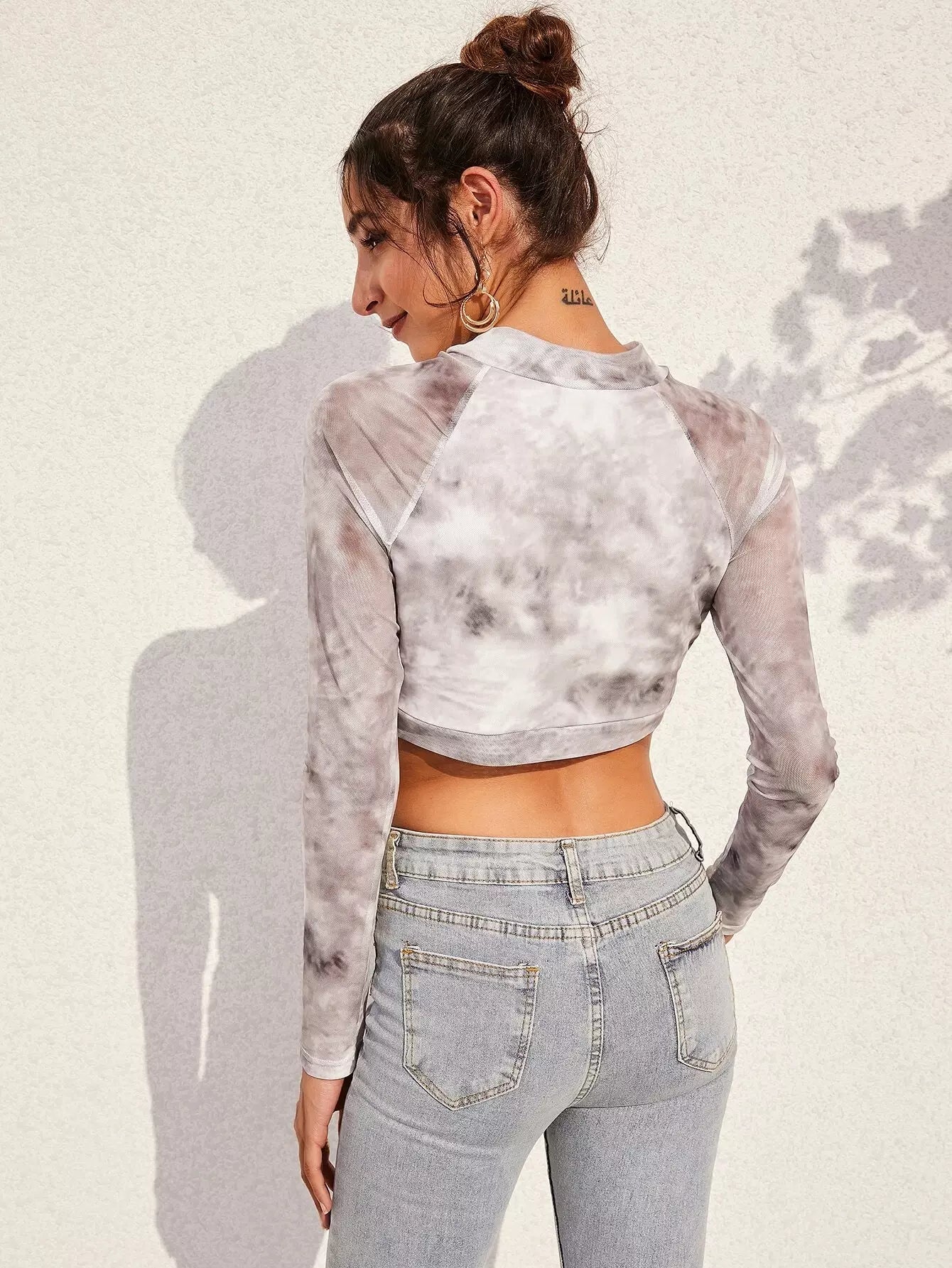 Mock Neck Tie Dye Raglan Sleeve Tee