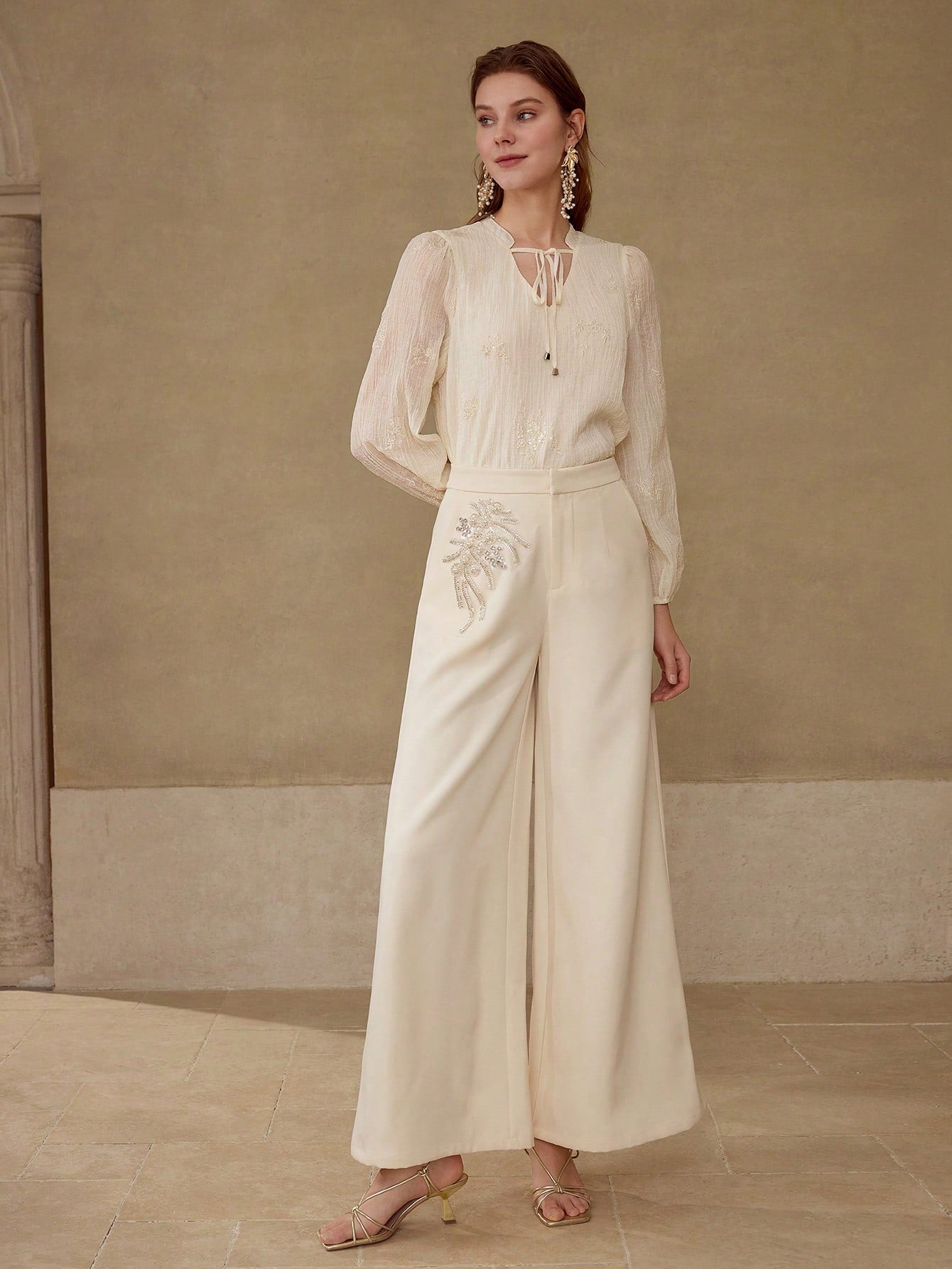 MOTF PREMIUM EMBROIDERY TIE NECK TOP