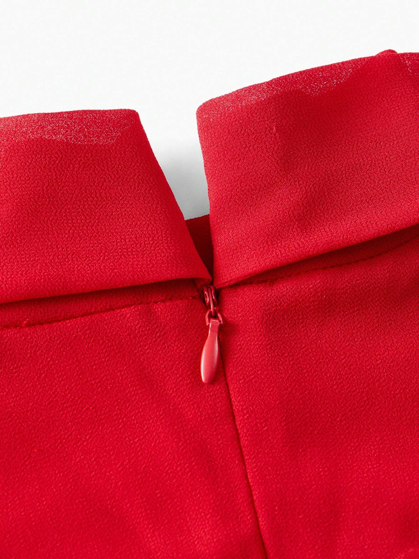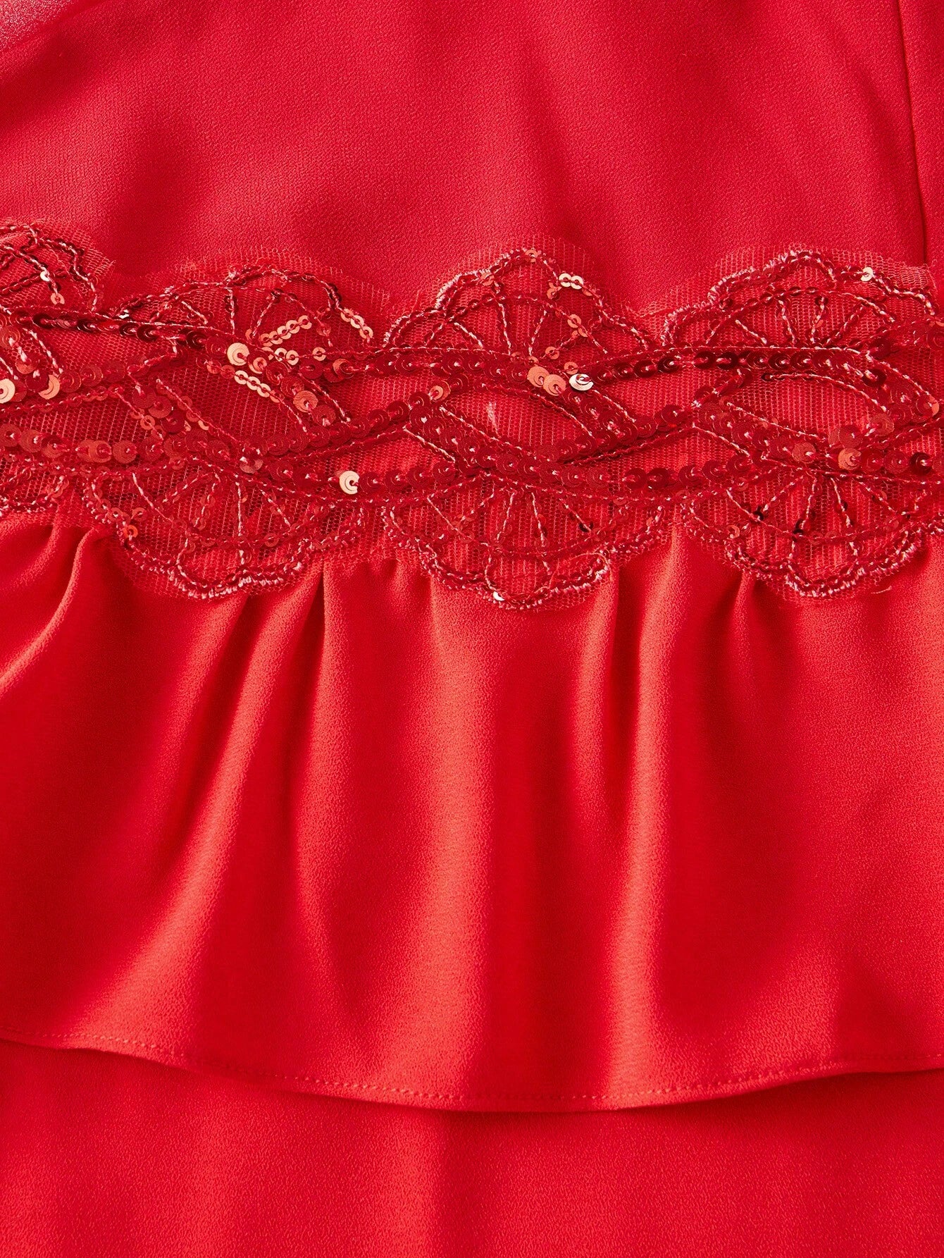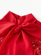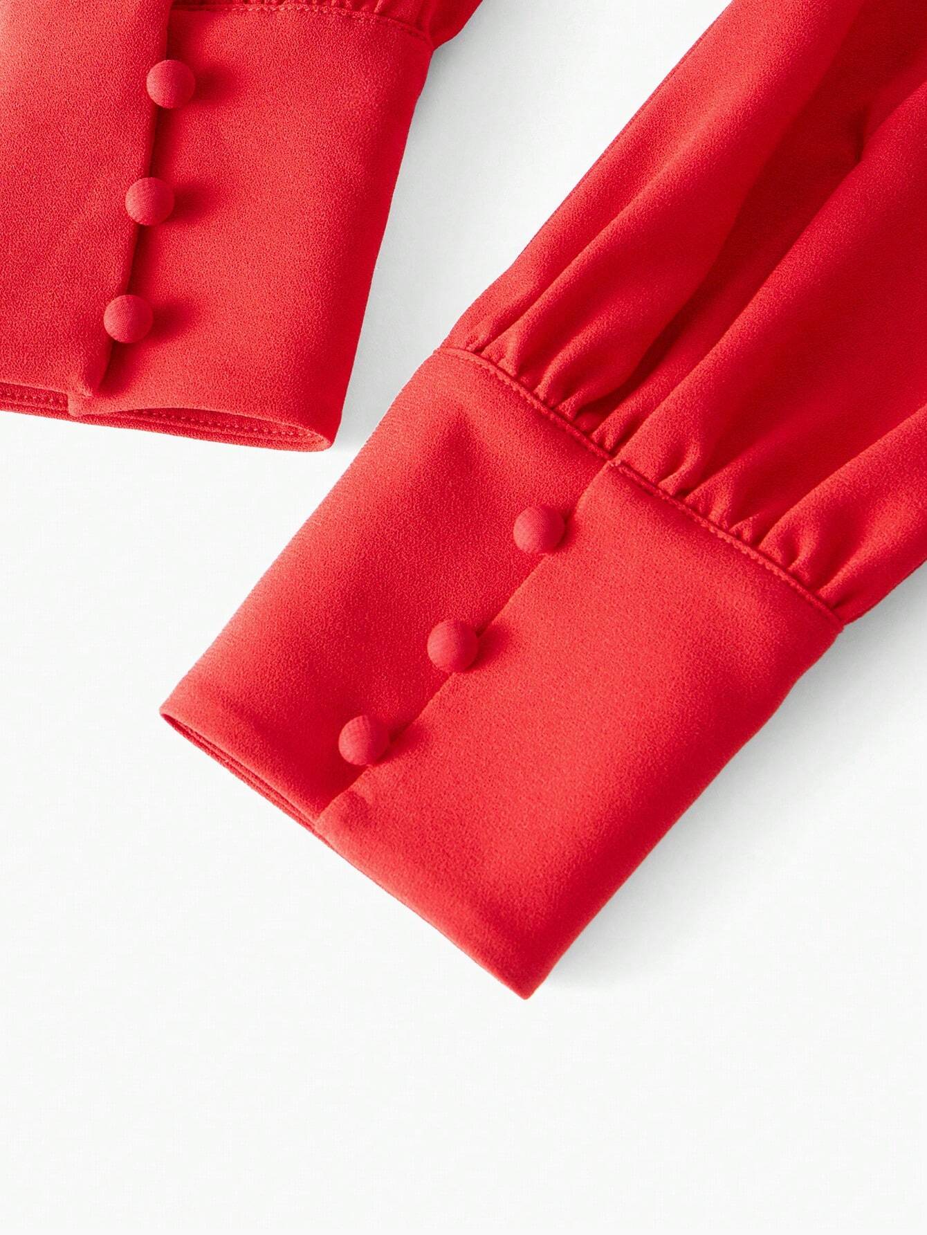 MOTF PREMIUM TIE NECK SEQUIN DETAIL RUFFLE TRIM LANTERN SLEEVE BLOUSE