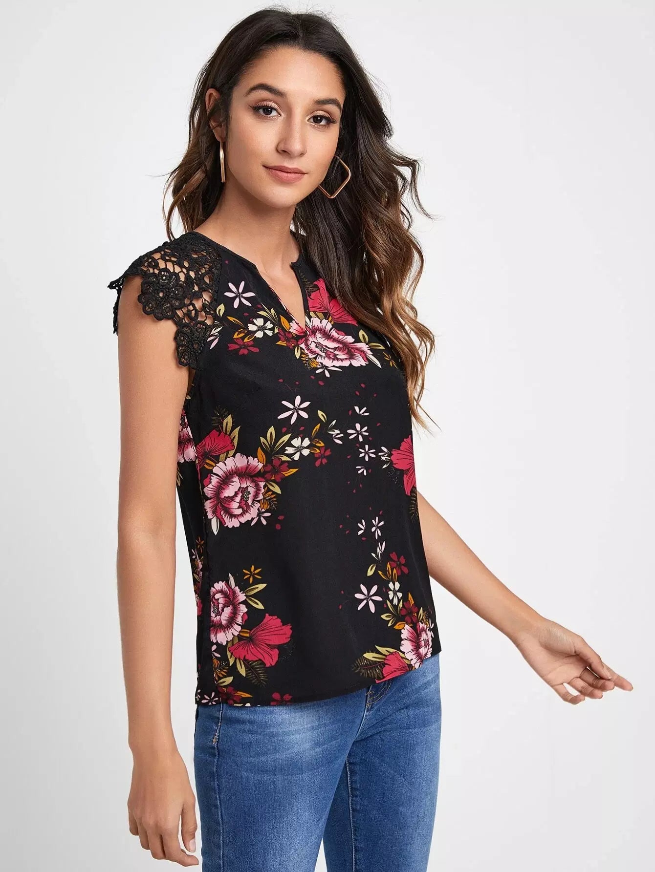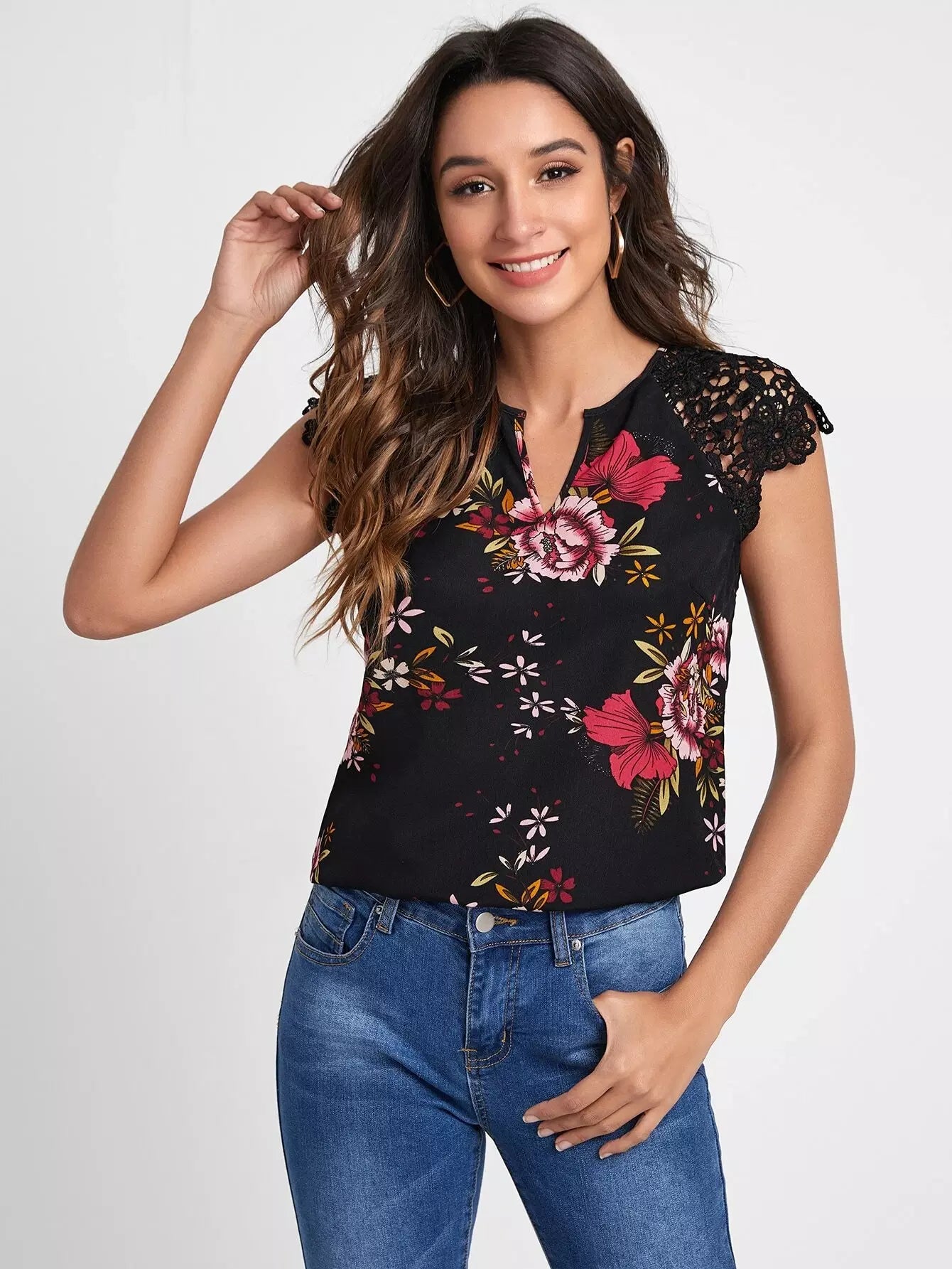 Notched Neck Floral Top