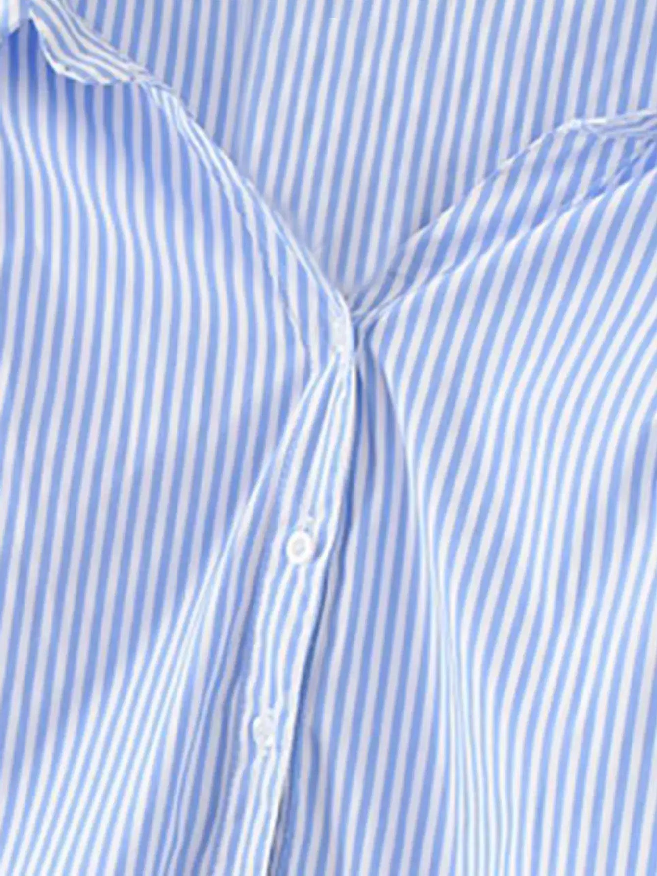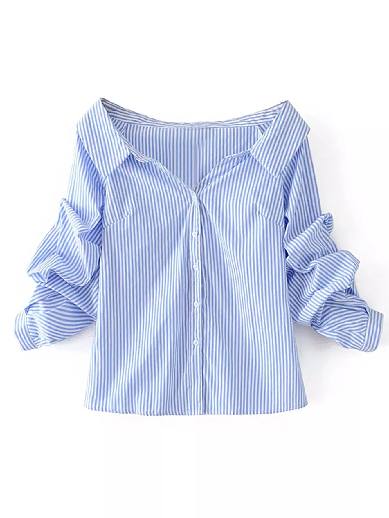 Off-the-Shoulder Striped Buttoned Shirt