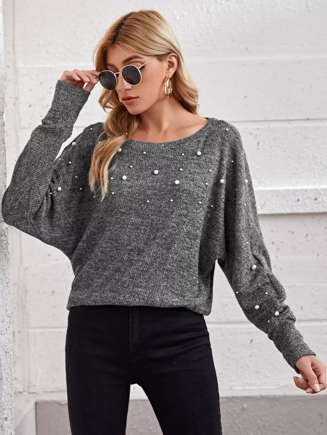 Pearl Beaded Batwing Sleeve Top