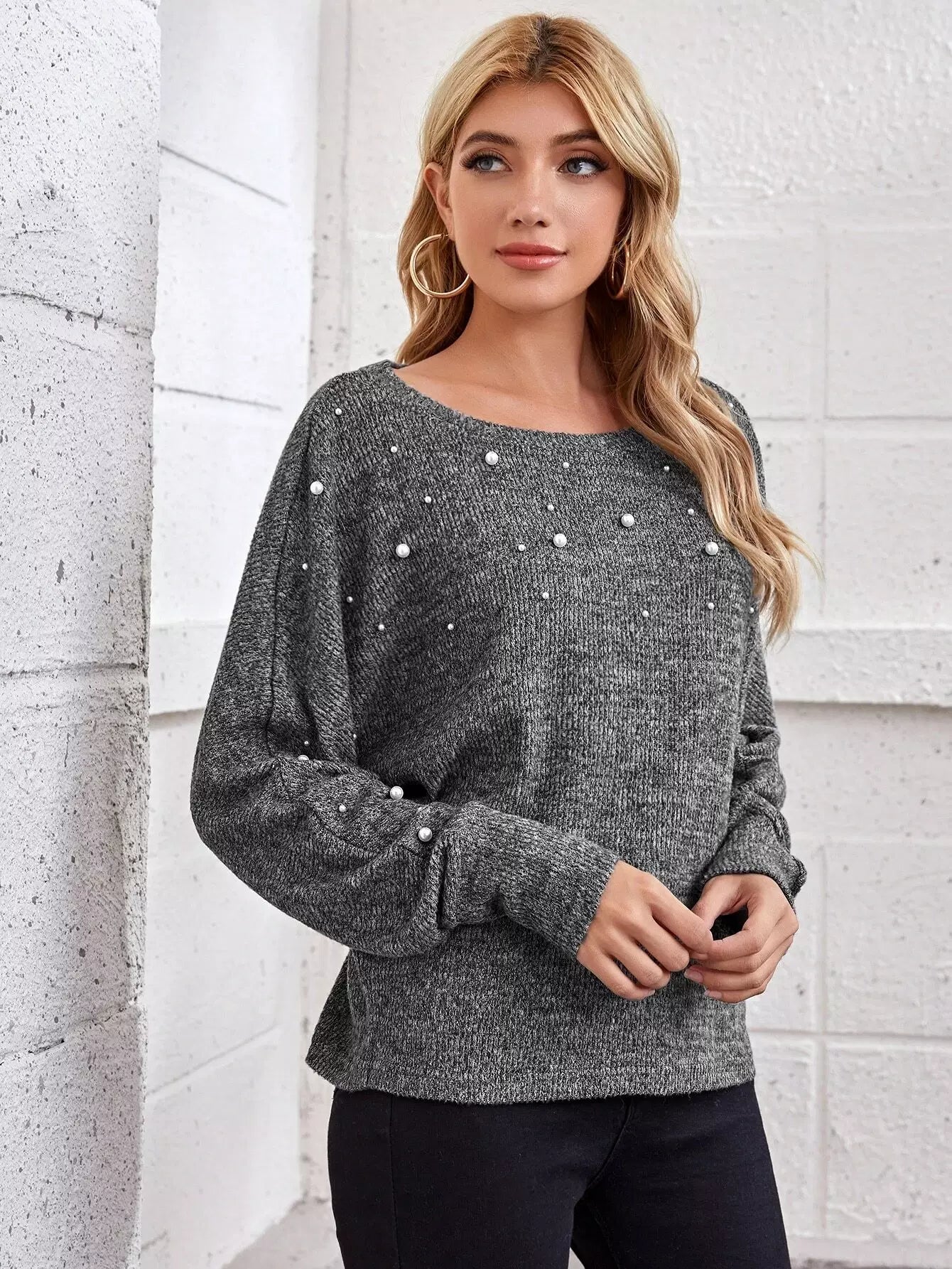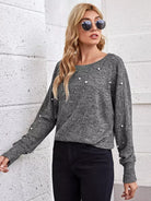 Women - Pearl Beaded Batwing Sleeve Top