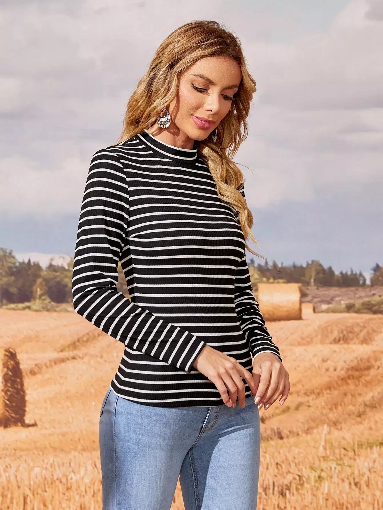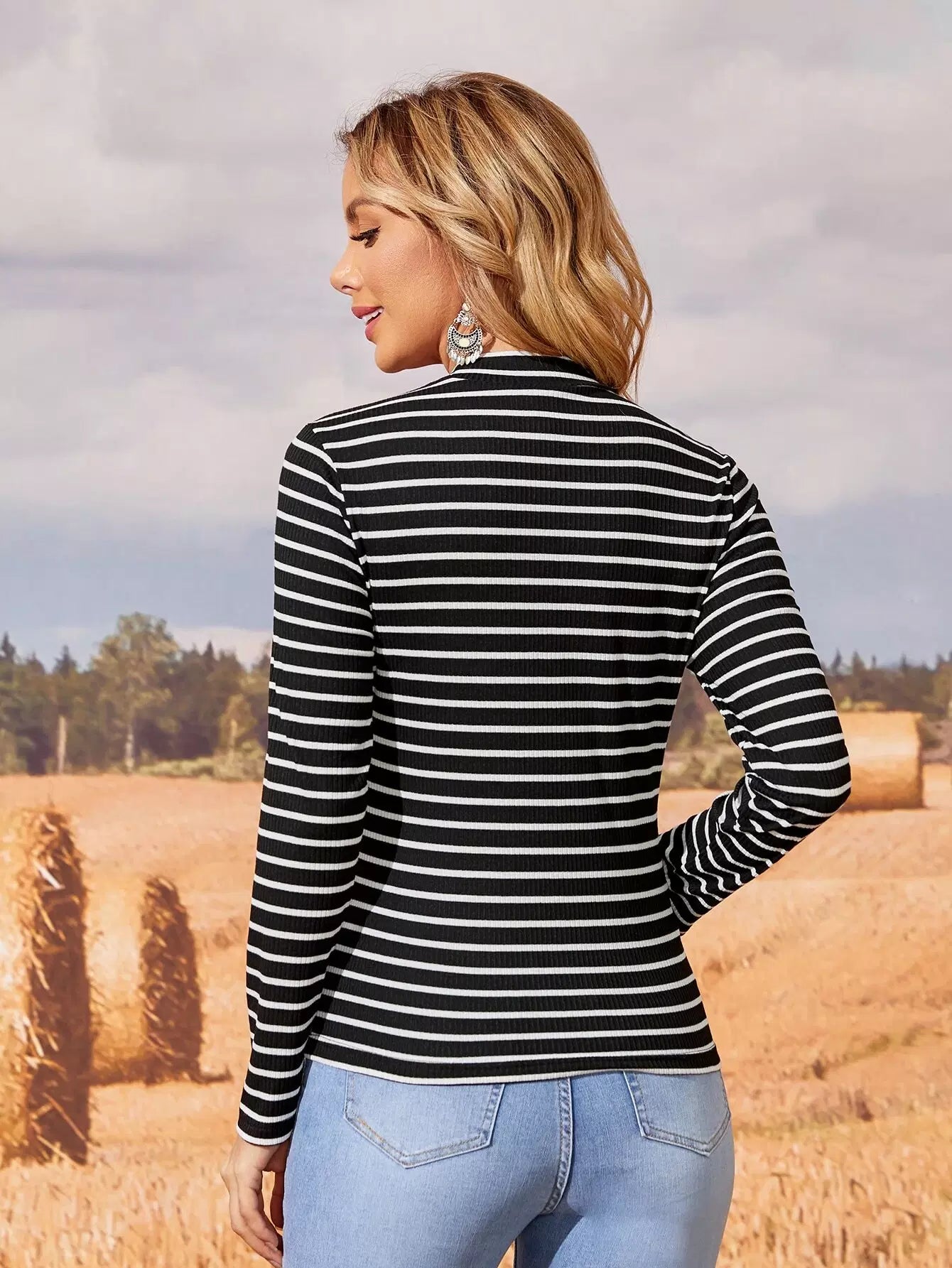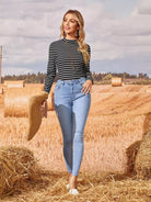 Pinstripe Stand Collar Tee
