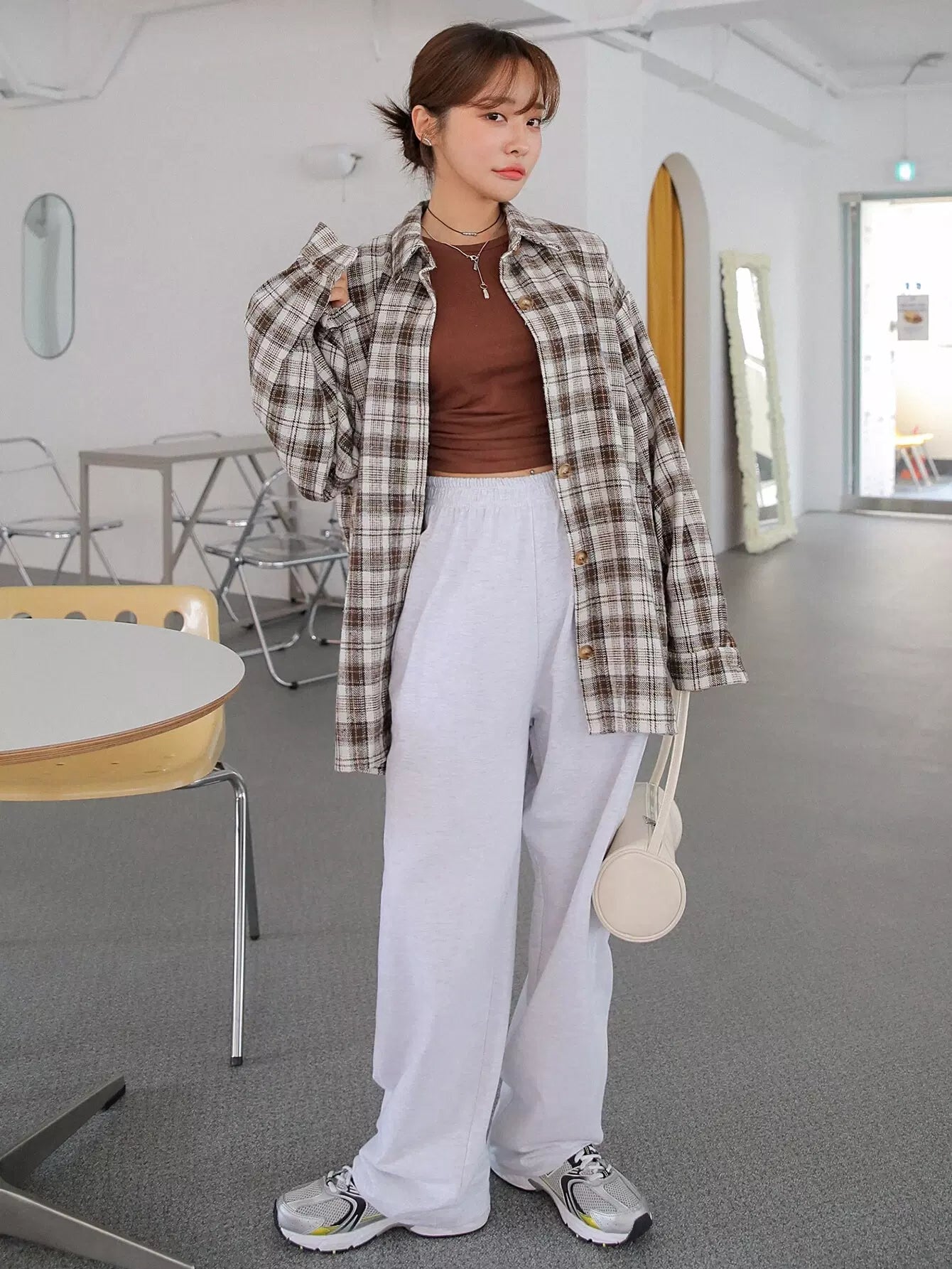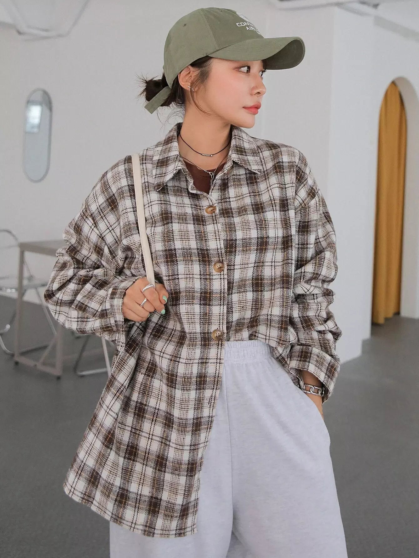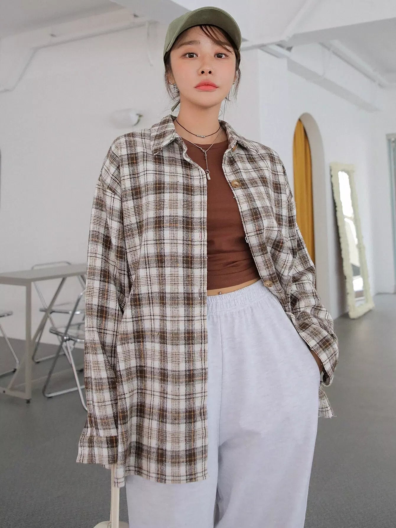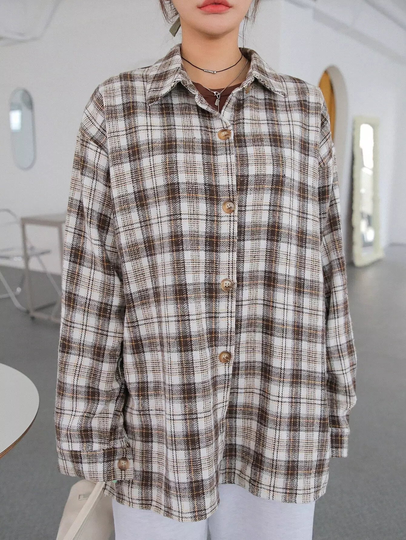 Plaid Drop Shoulder Blouse