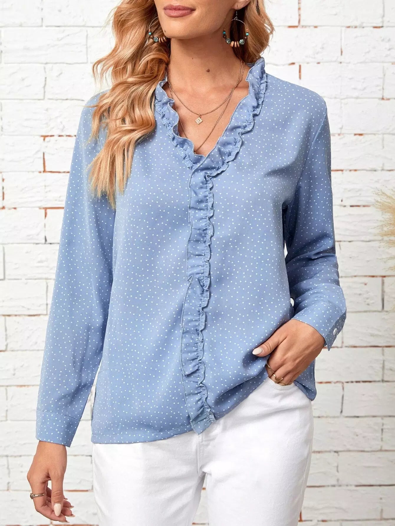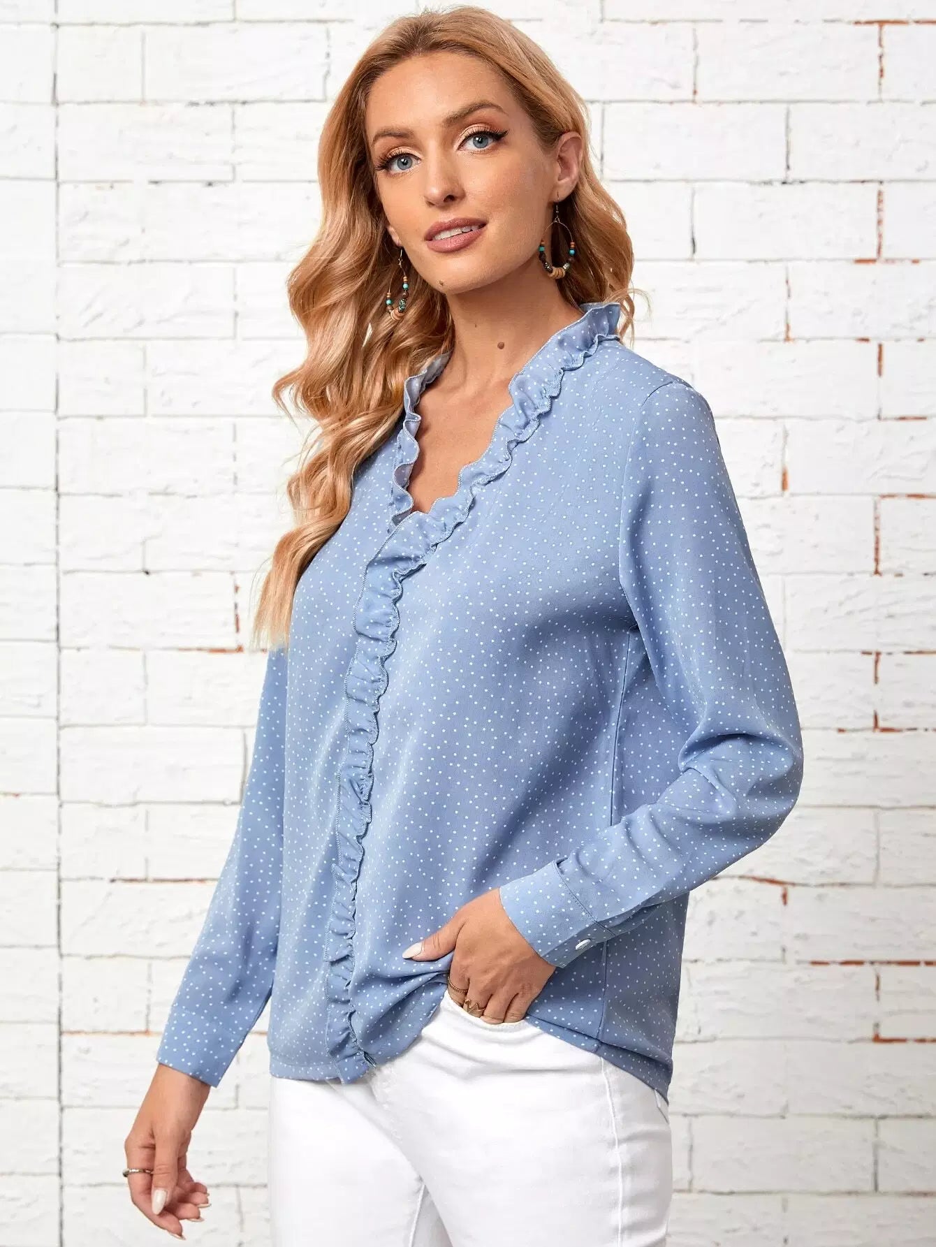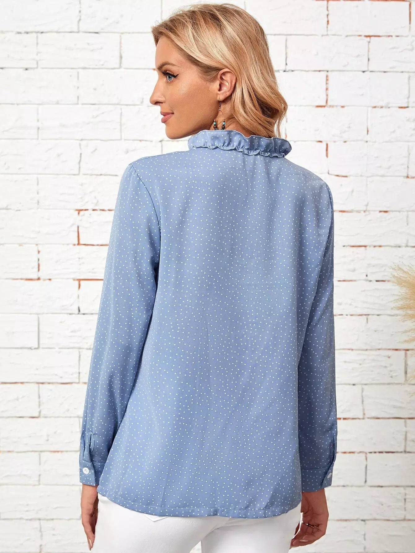 Polka Dot Frill Trim Blouse