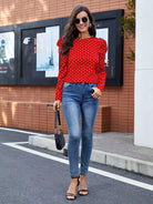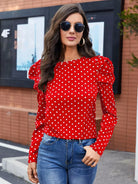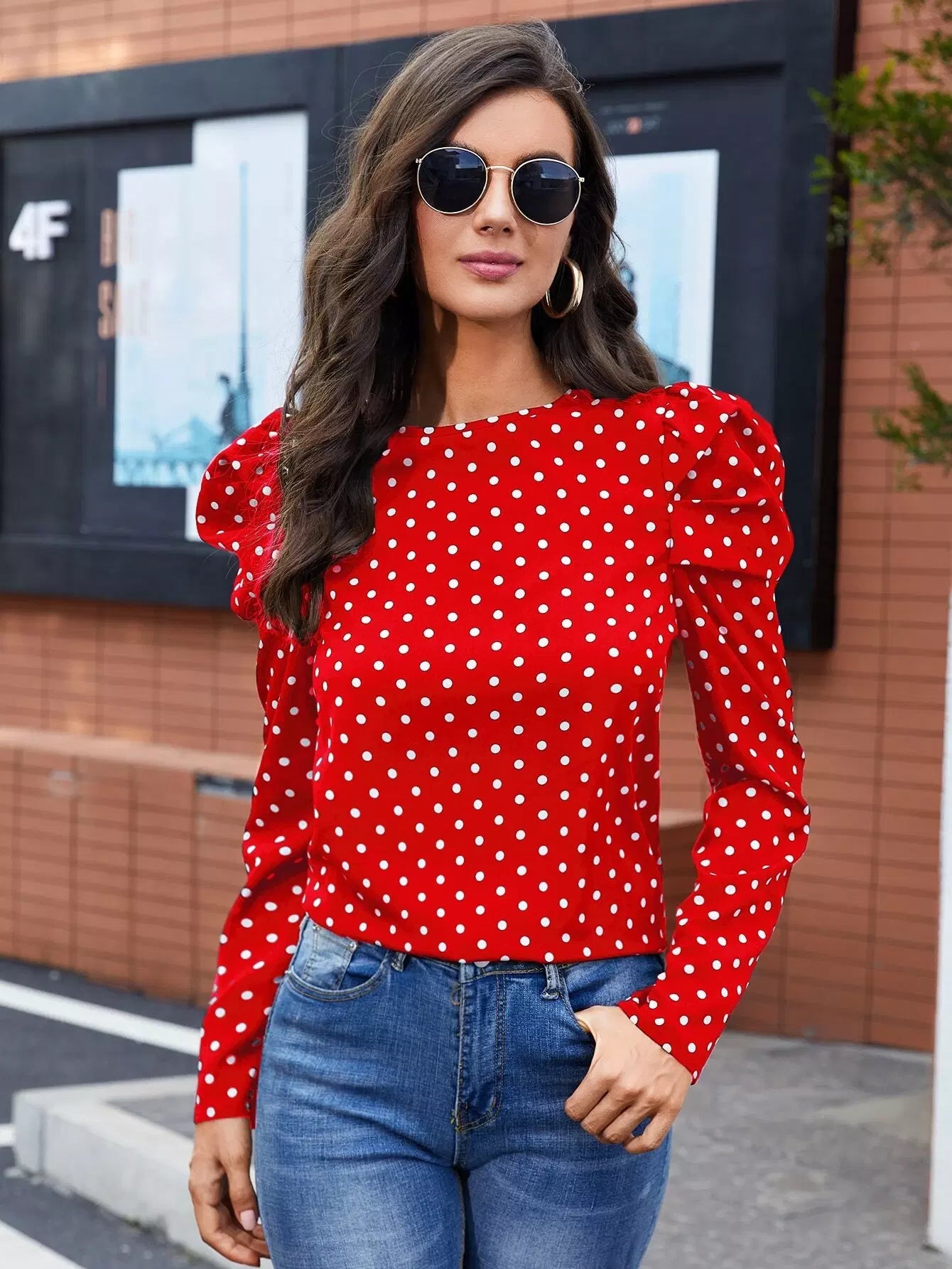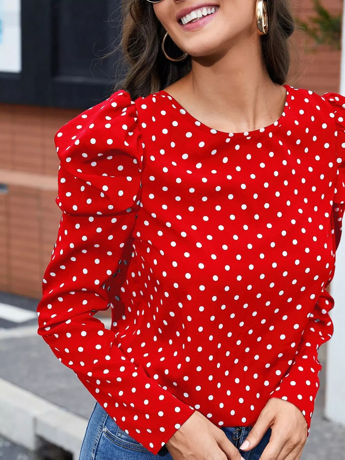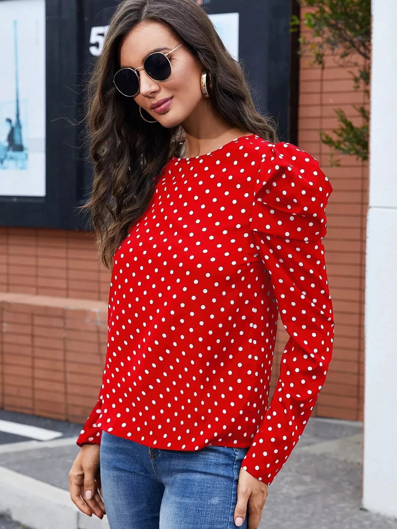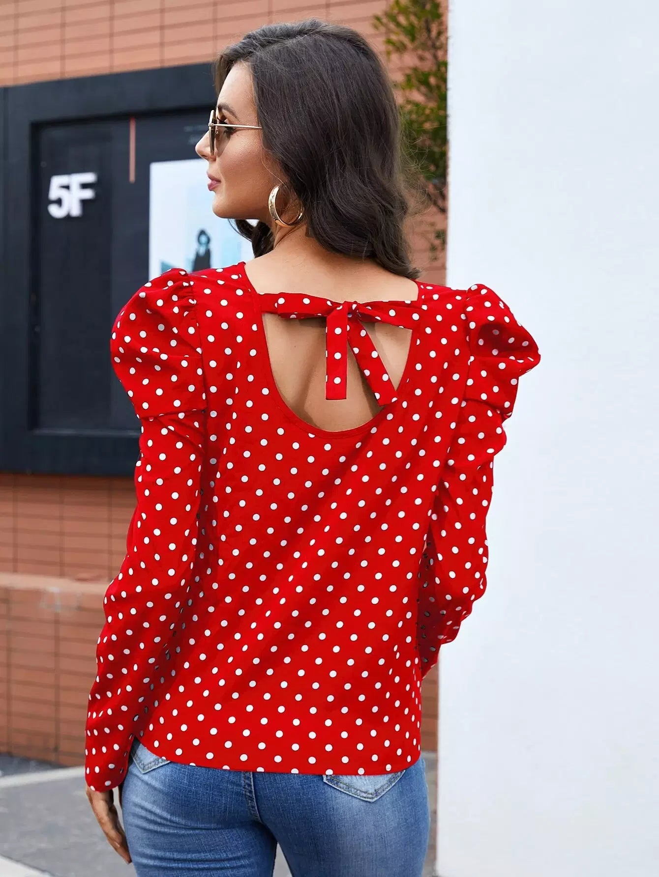 Polka Dot Tie Back Gigot Sleeve Blouse