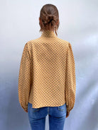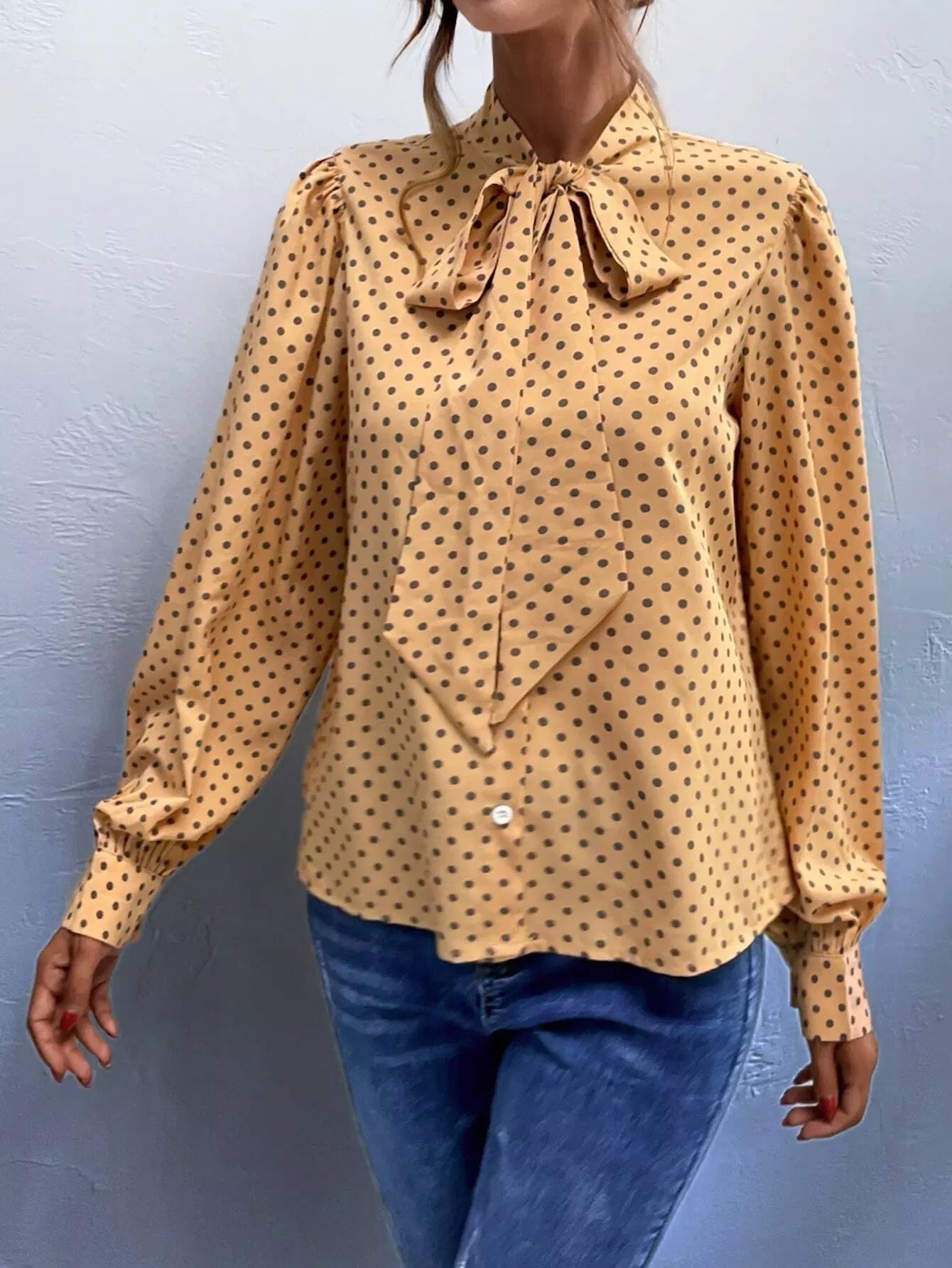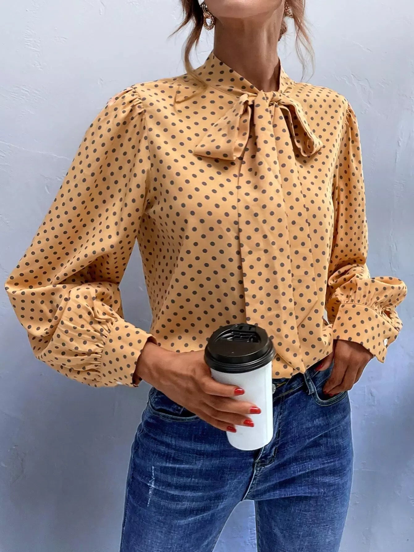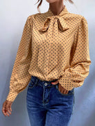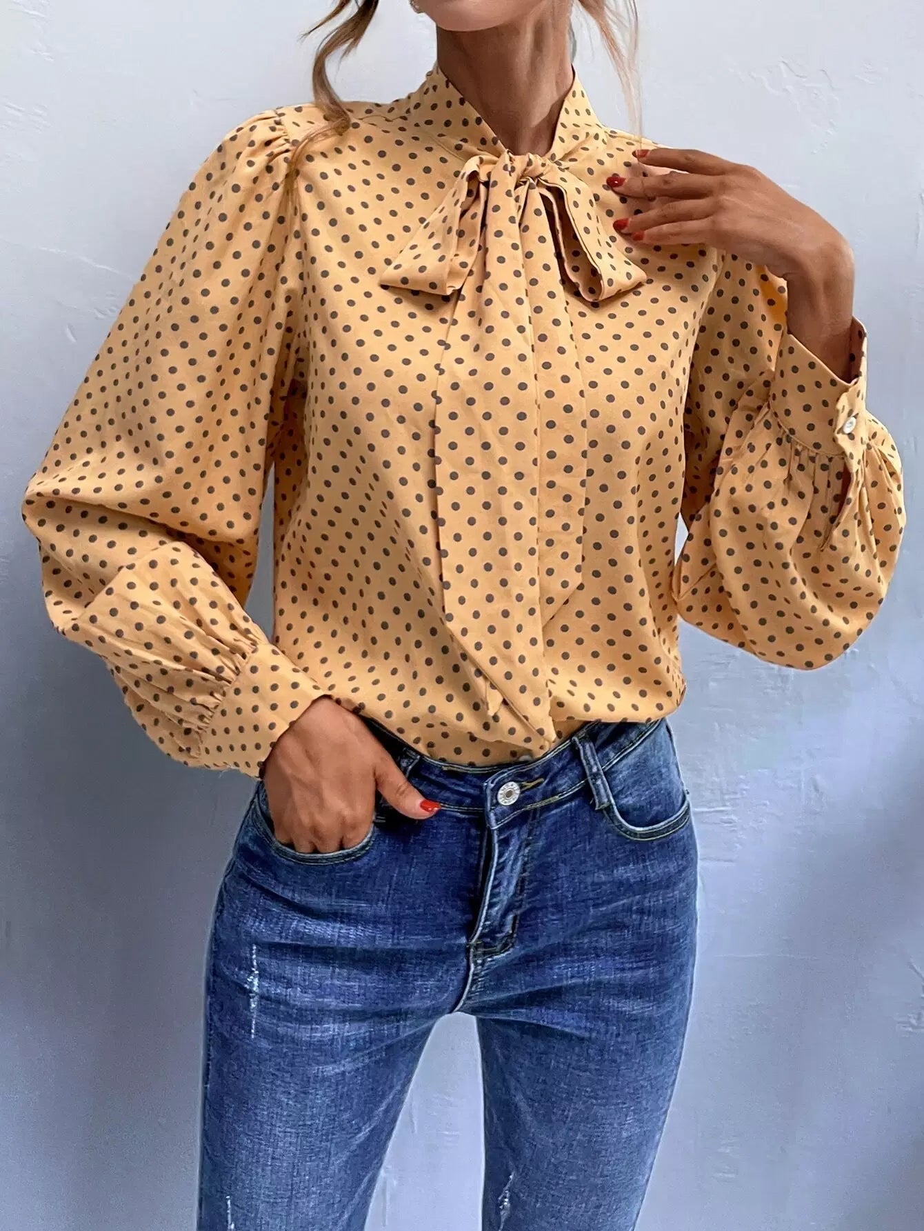 Polka Dot Tie Neck Bishop Sleeve Blouse