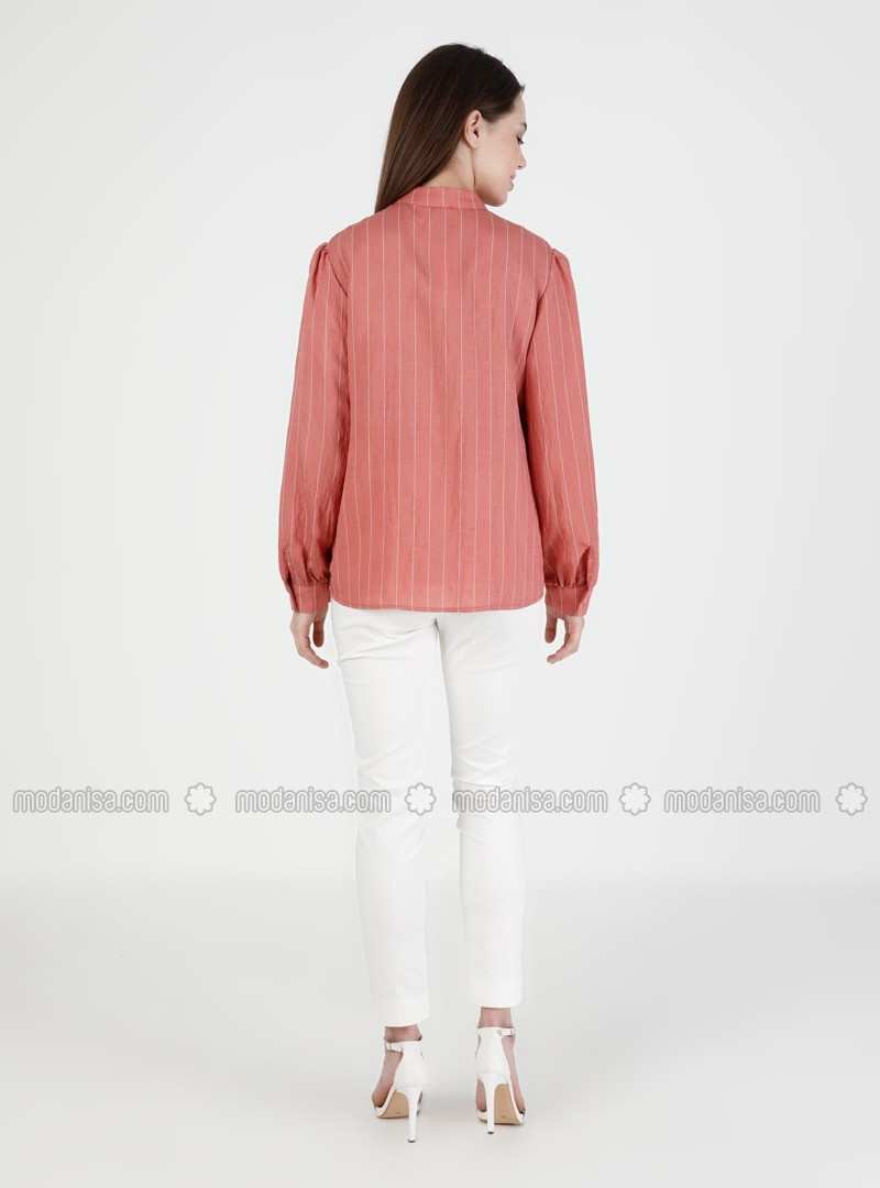 Powder Stripe Point Collar Blouses