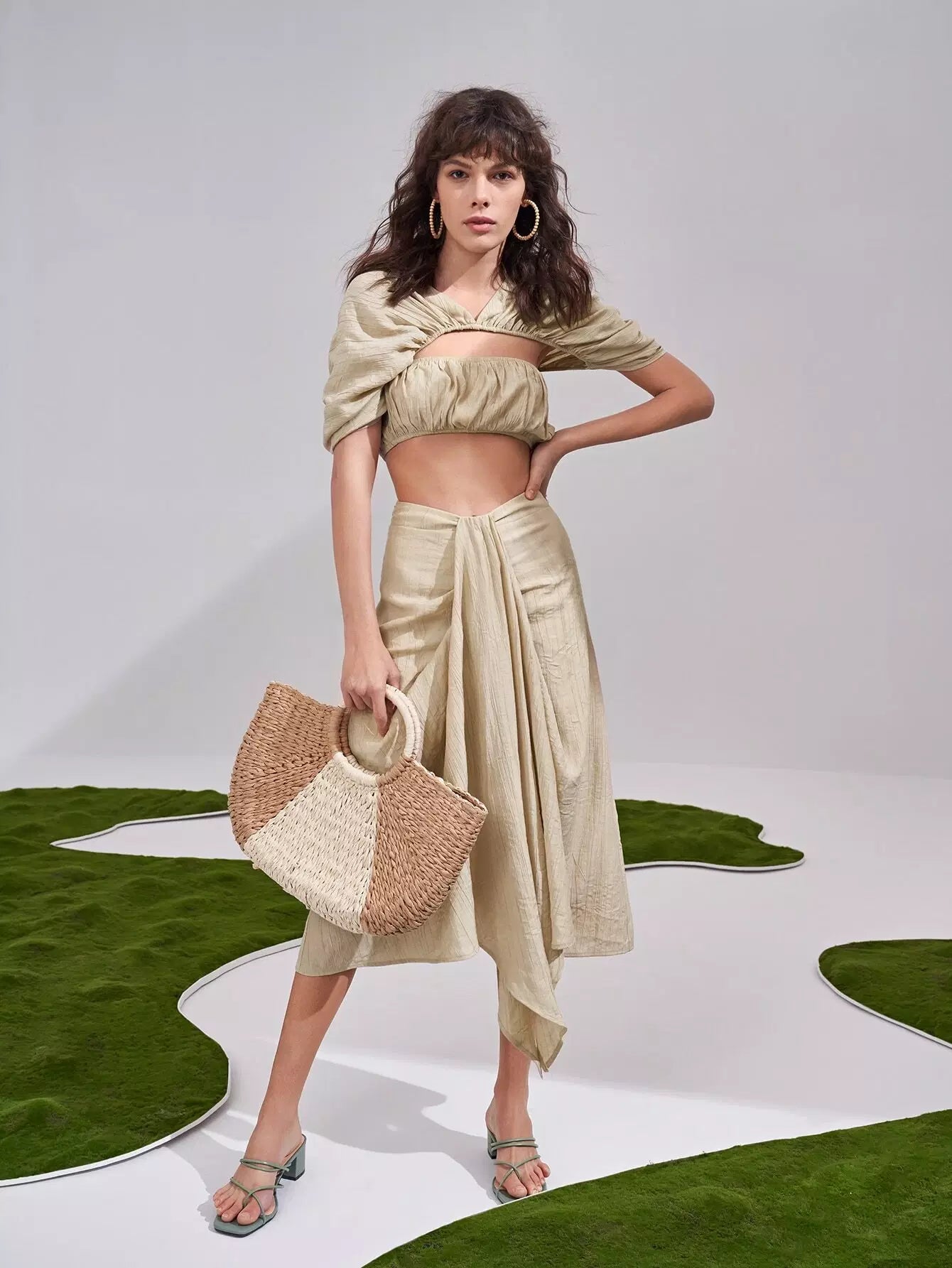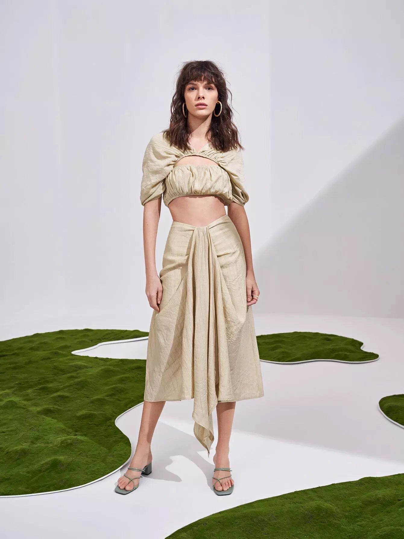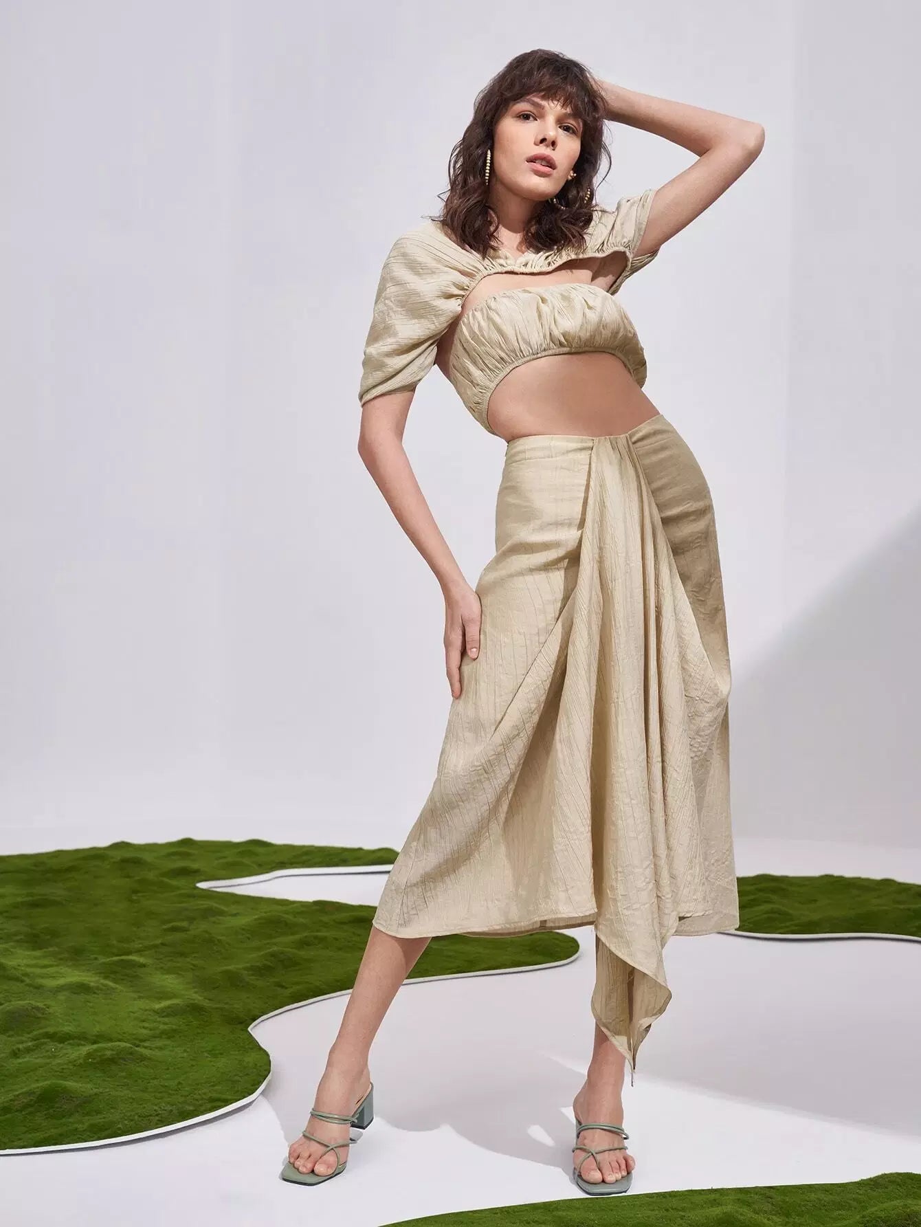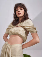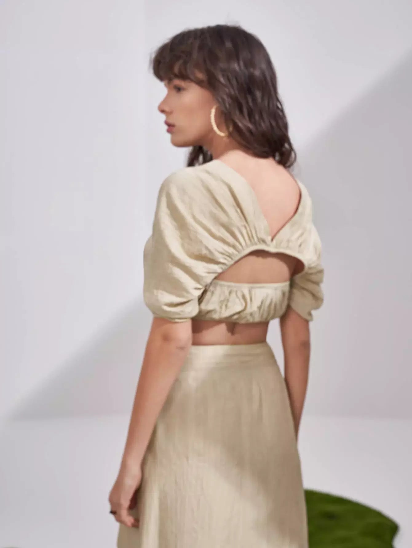 Puff Sleeve Cutout Ruched Crop Top