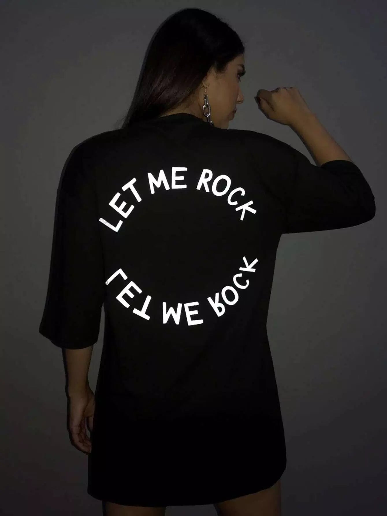 Reflective Slogan Graphic Drop Shoulder Tee