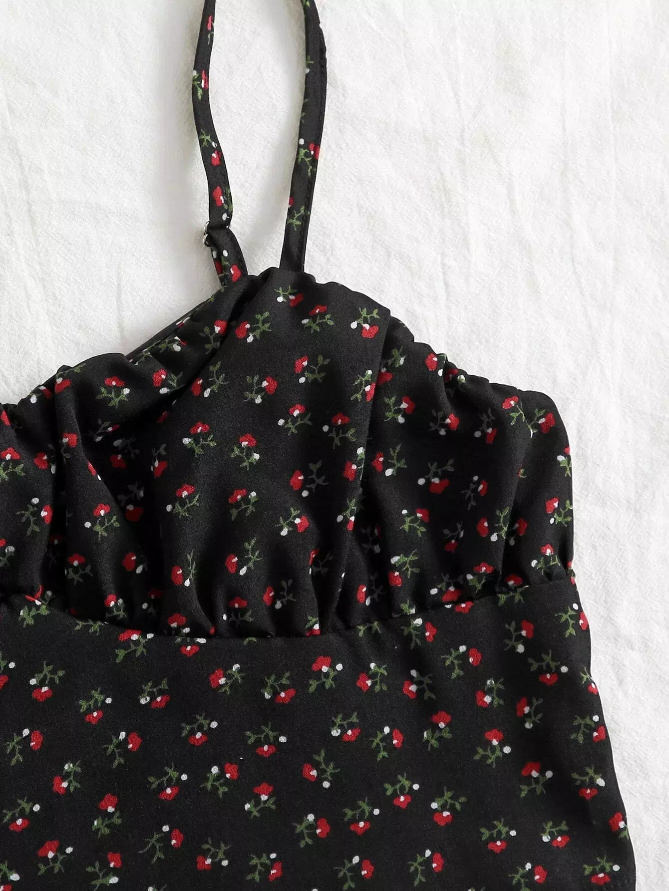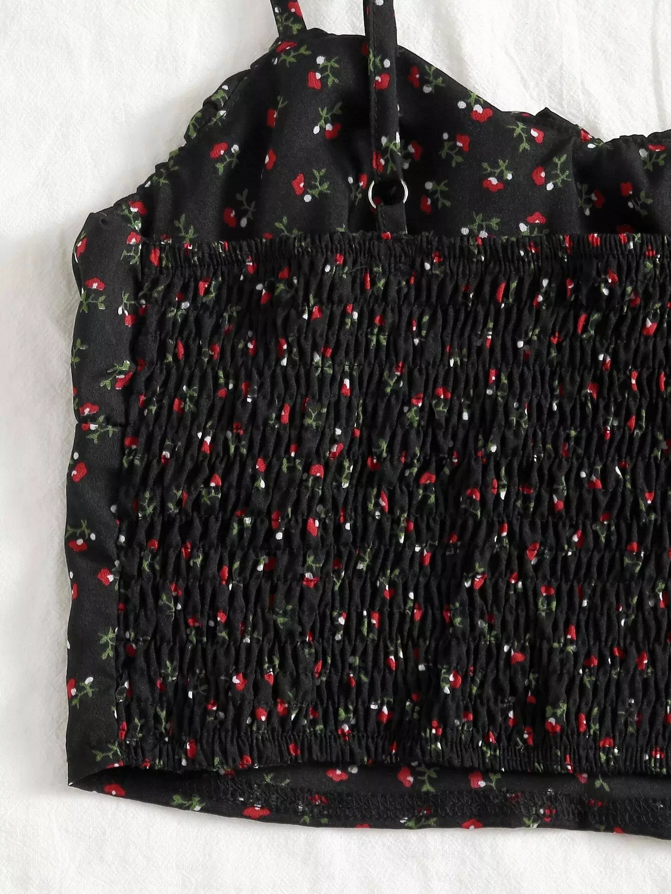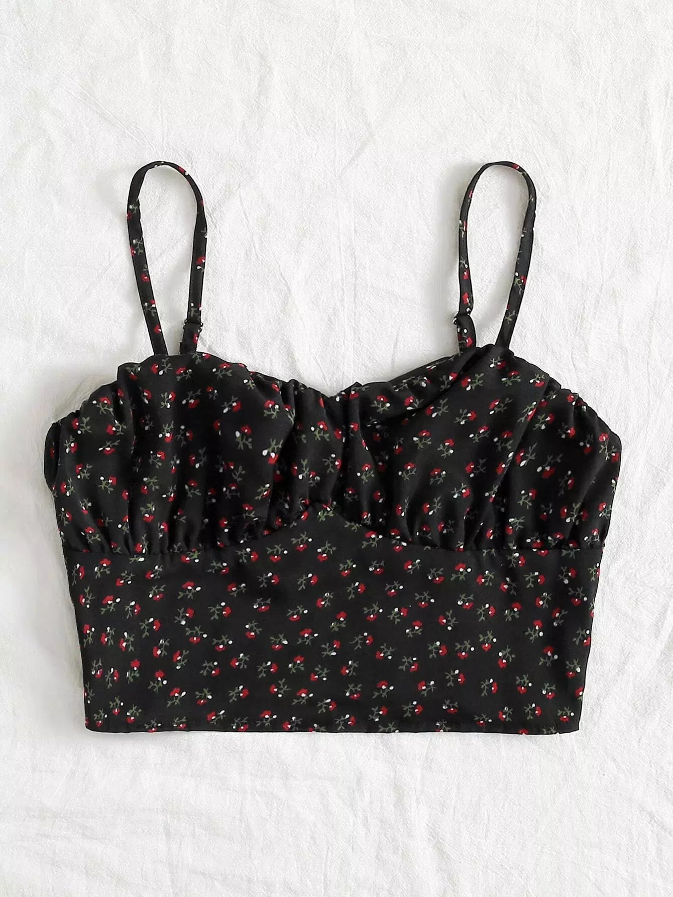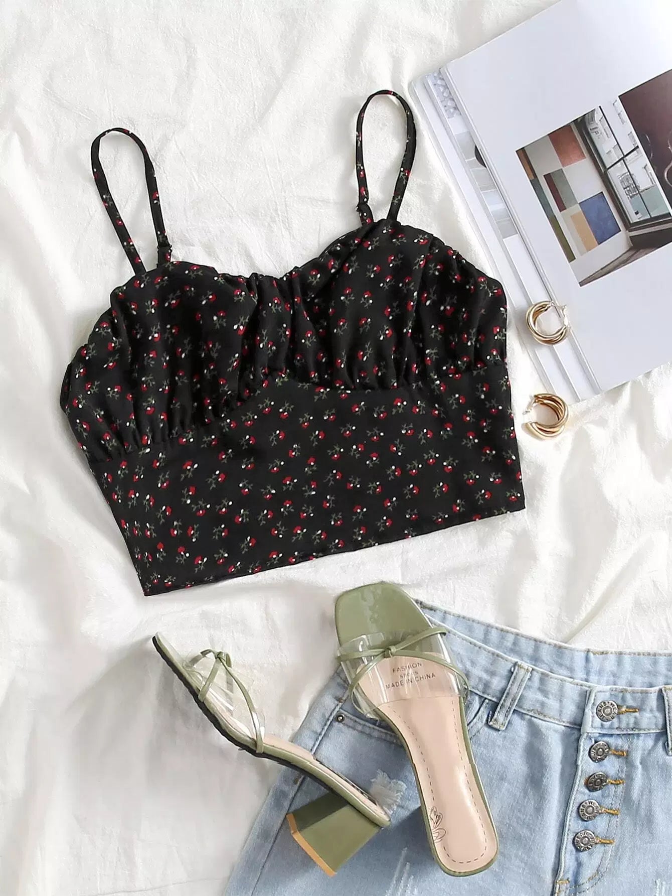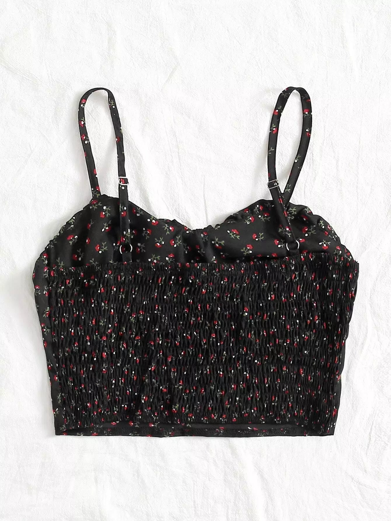 Ruched Bust Shirred Back Ditsy Floral Cami Top