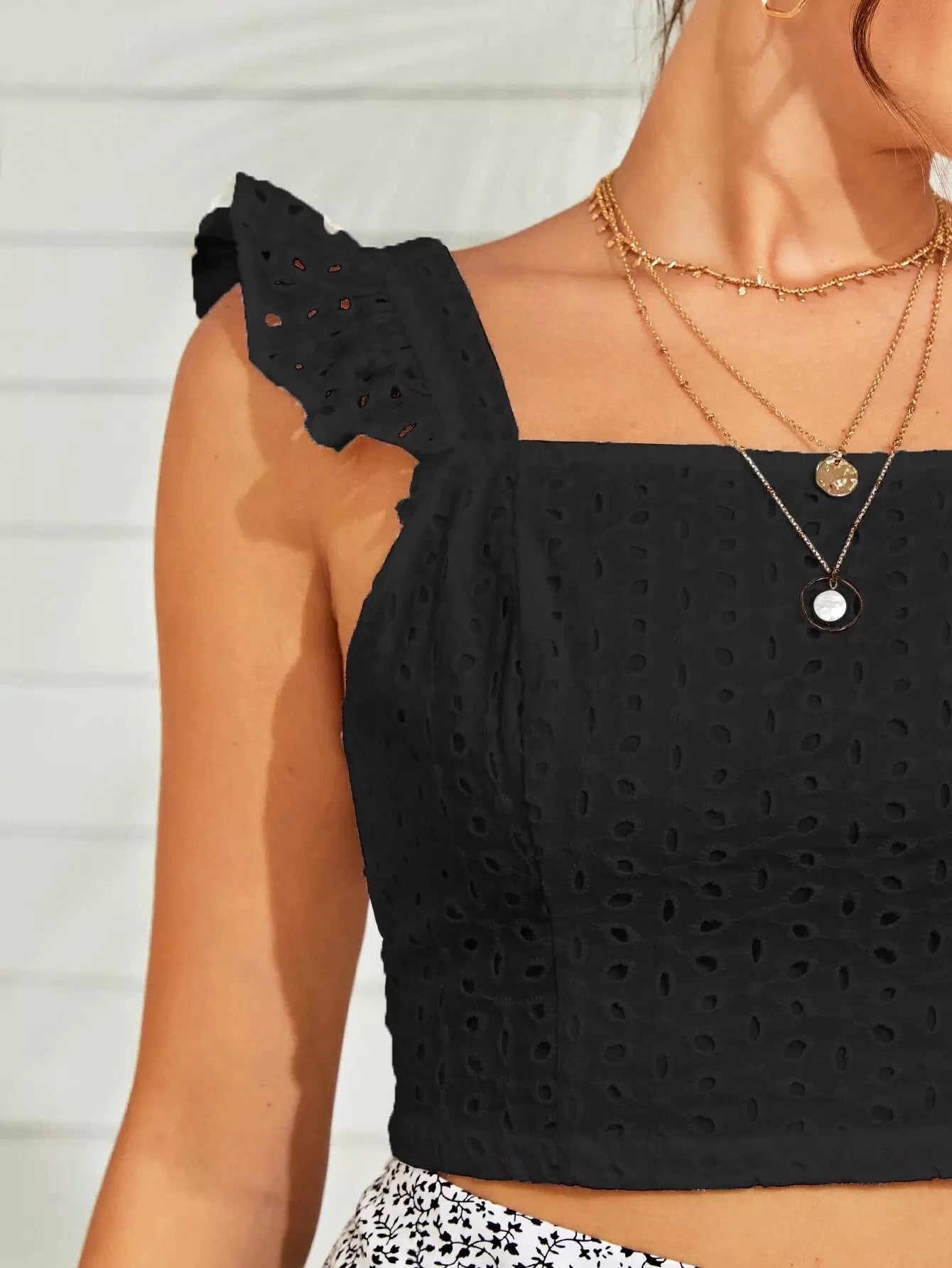 Ruffle Trim Tied Open Back Schiffy Crop Top