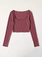 Women - Scoop Neck Lettuce Trim Waffle Knit Top