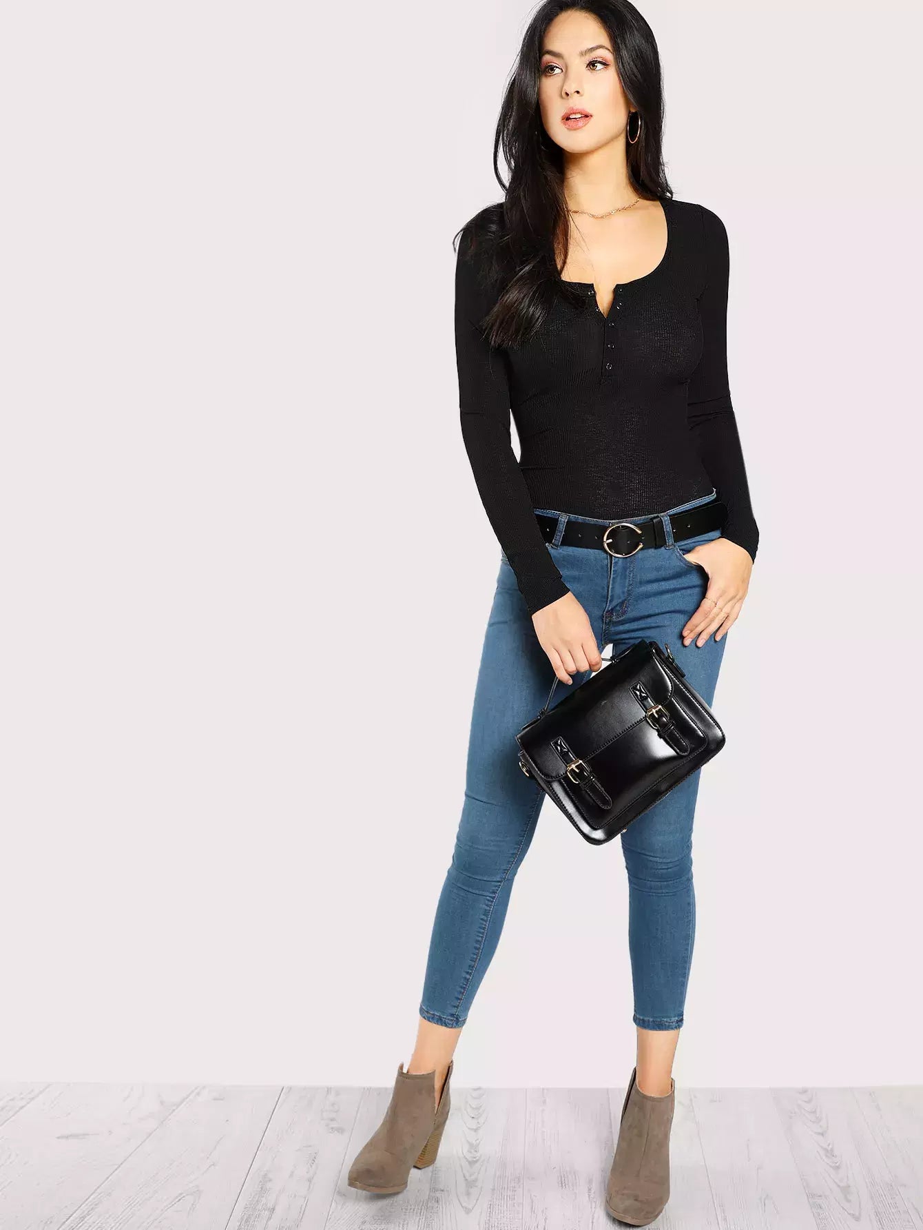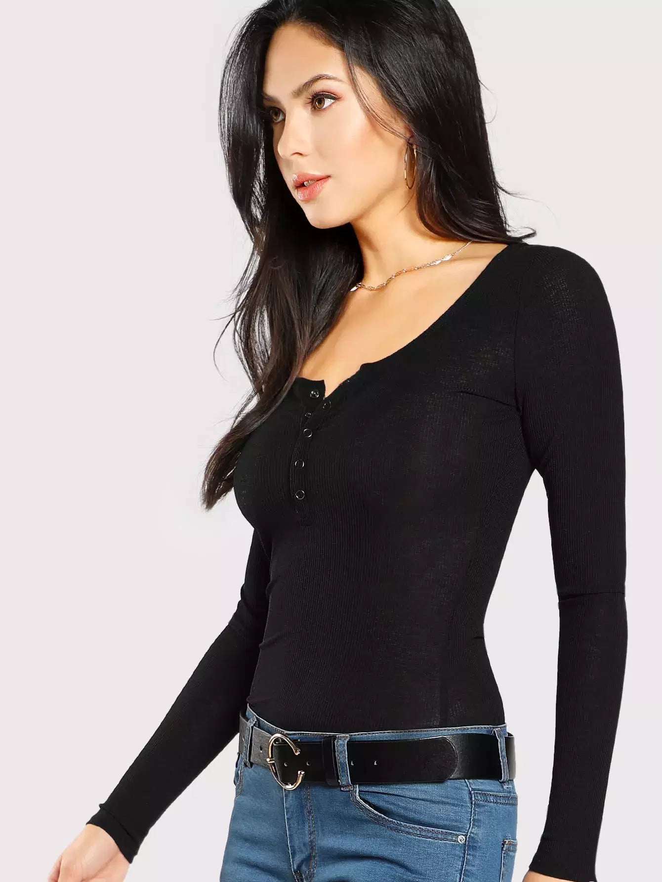 Scoop Neck Rib Henley Shirt