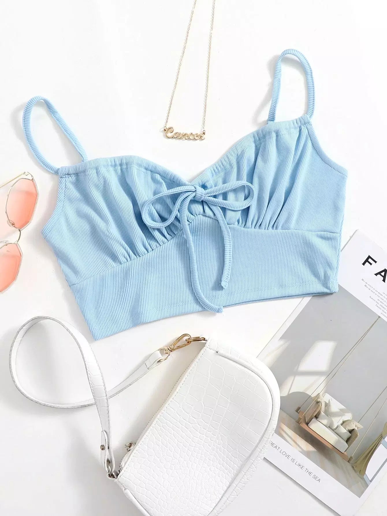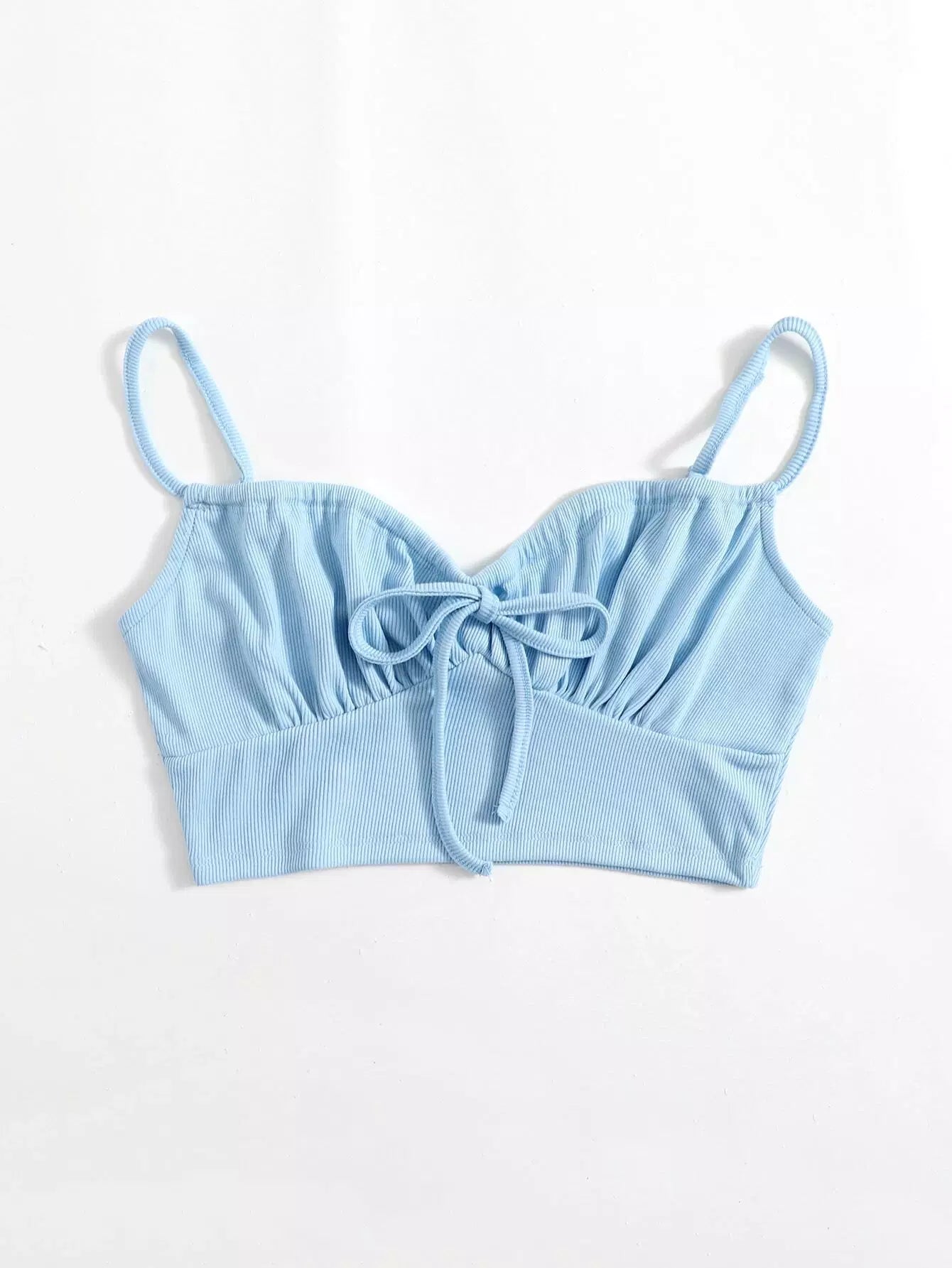 Shirred Self-Tie Cropped Cami Top