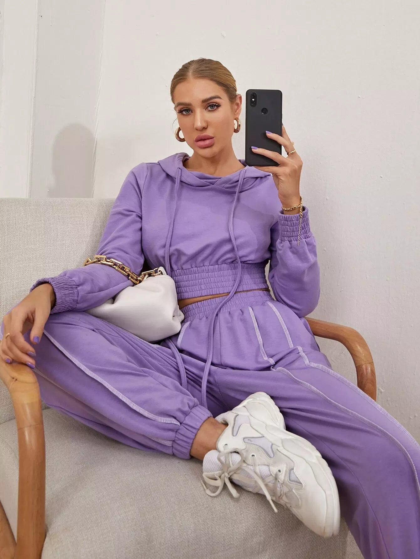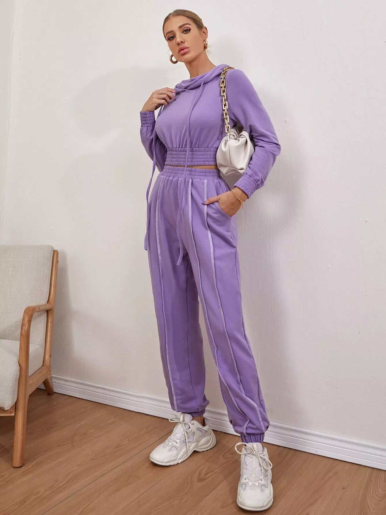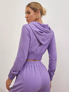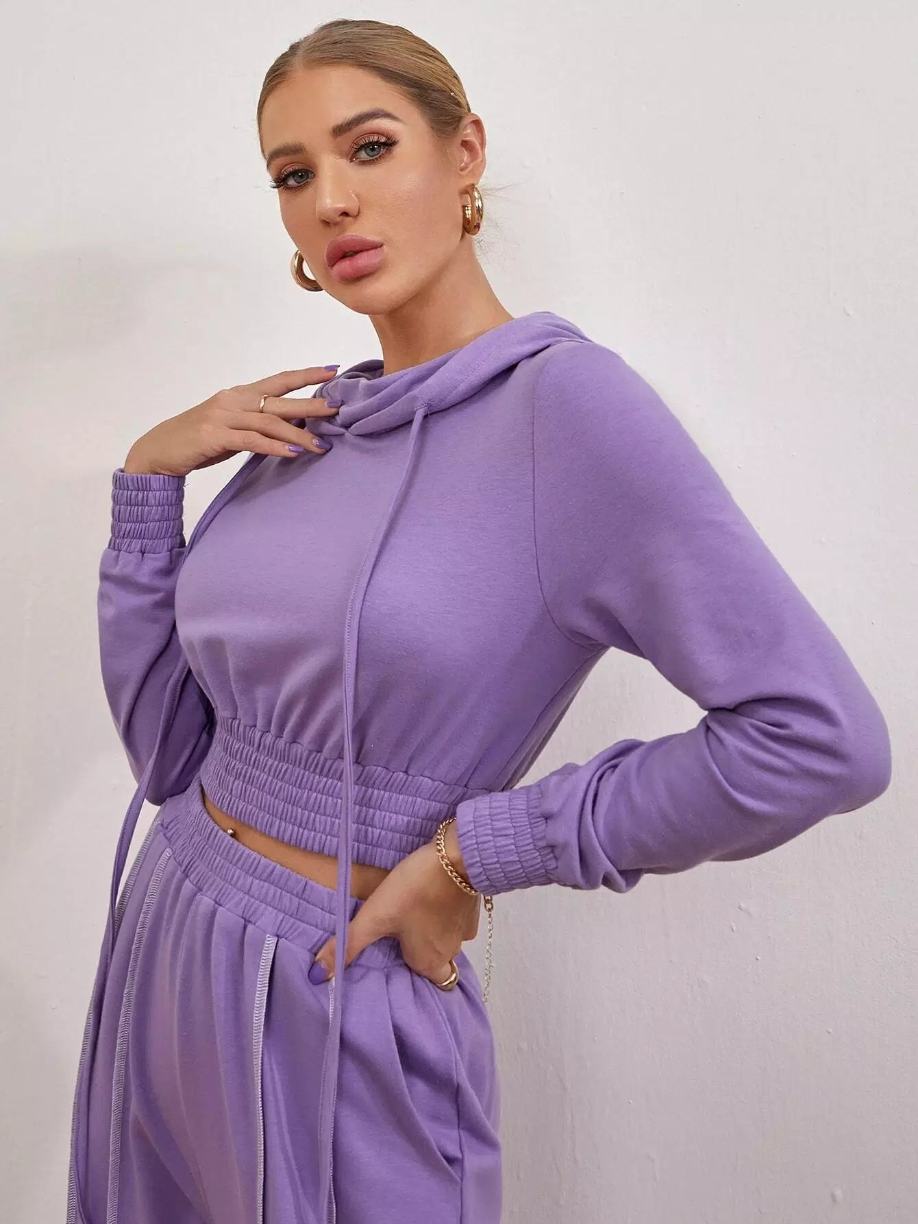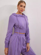 Shirred Waist Drawstring Crop Hoodie