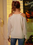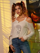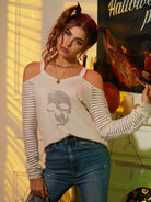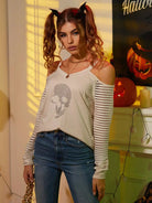 Skull Print Contrast Mesh Cold Shoulder Tee
