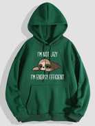 Slogan & Cartoon Print Drawstring Kangaroo Pocket Thermal Hoodie